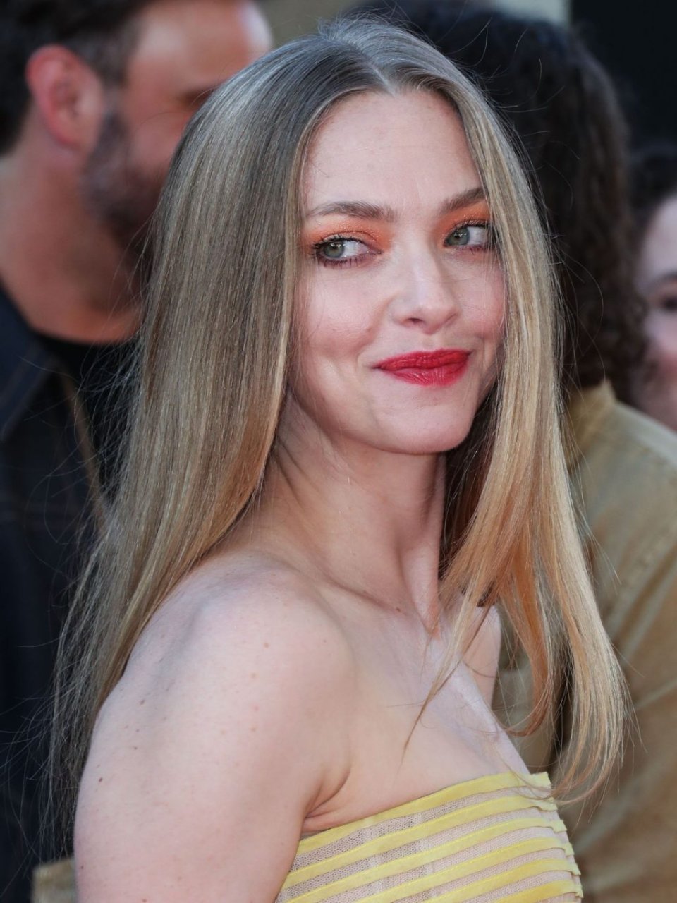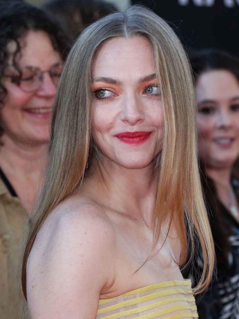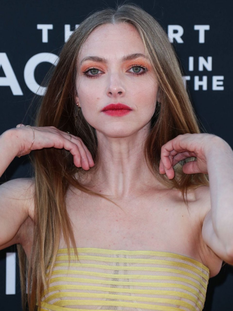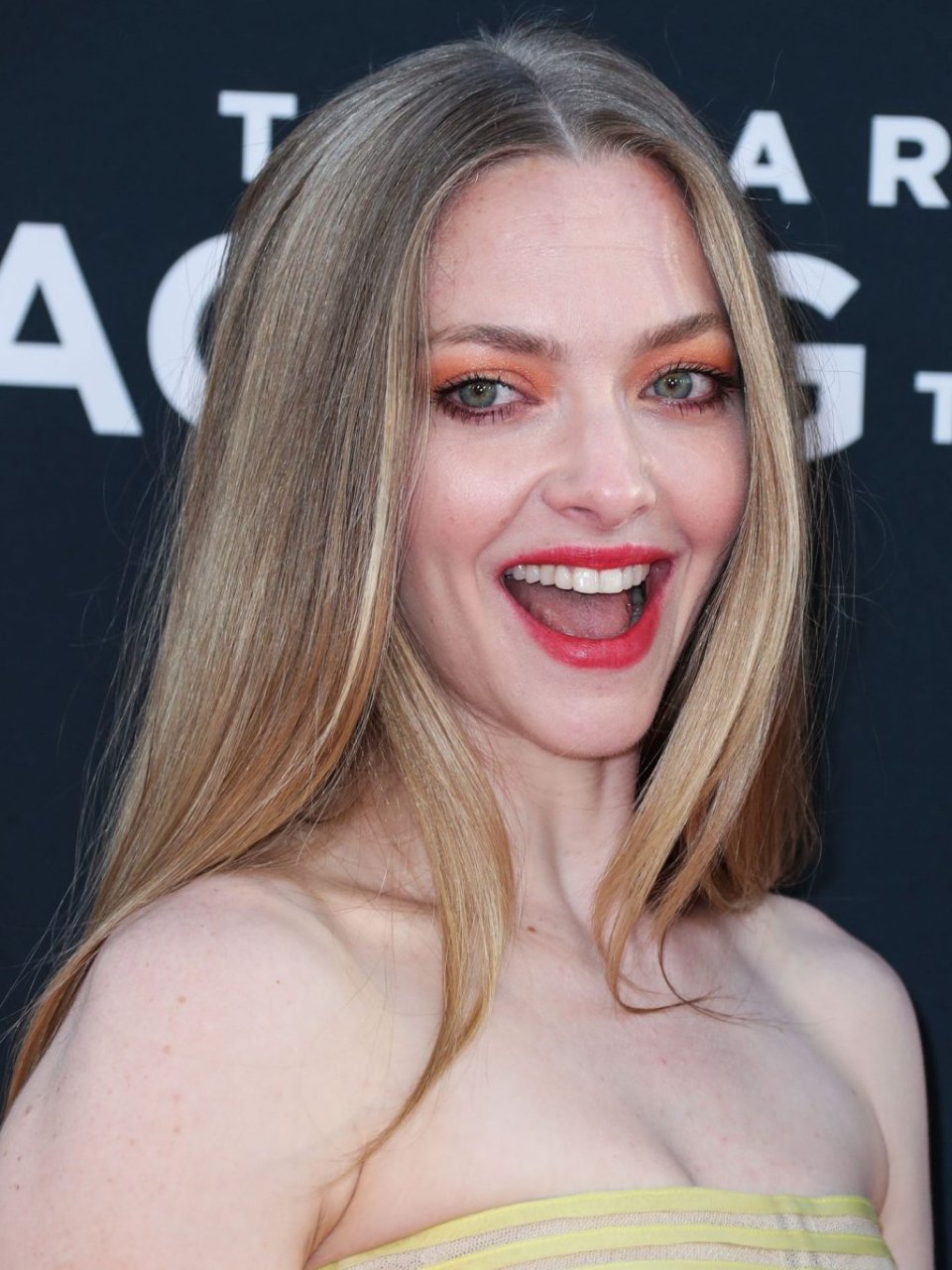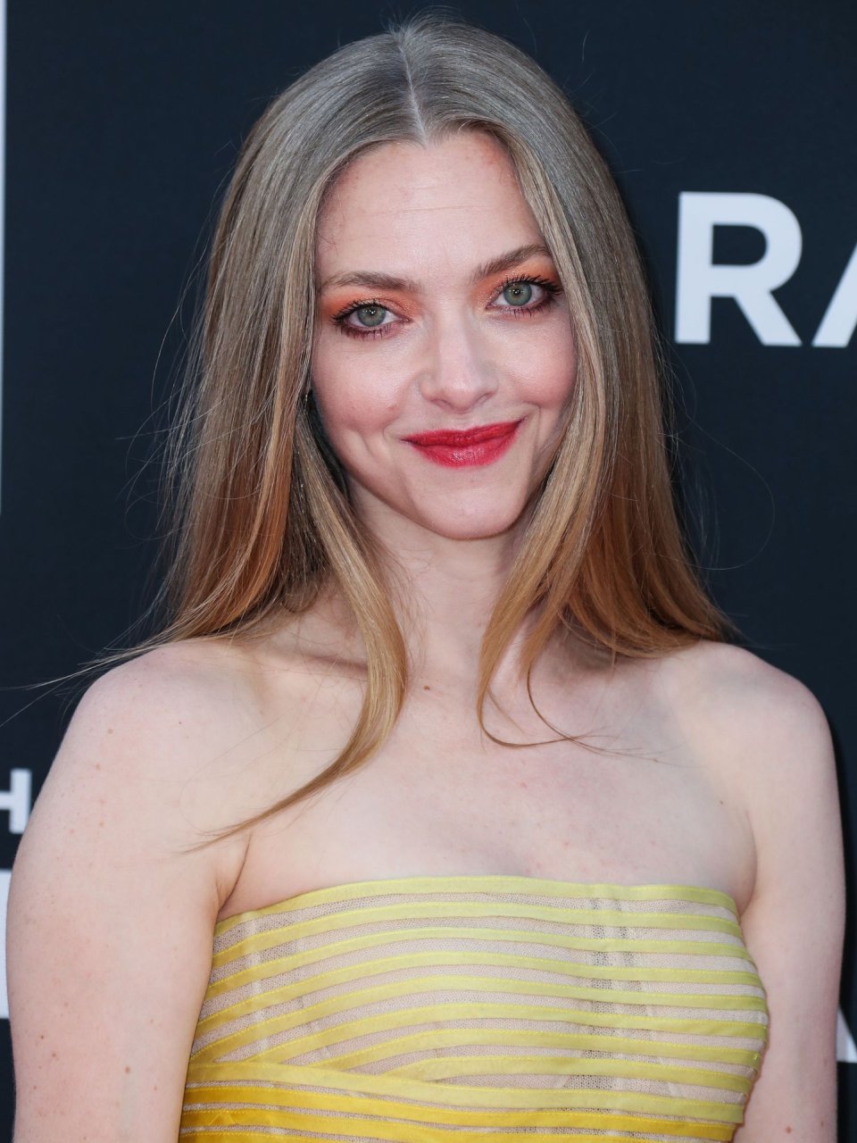 L’attrice Amanda Seyfried indossa un abito Oscar de la Renta, tacchi Stuart Weitzman e orecchini Jennifer Meyer mentre arriva alla prima di Los Angeles del film di 20th Century Fox ‘The Art Of Racing In The Rain’ tenutasi al El Capitan Theatre a Hollywood, Los Angeles, 01/08/2019.