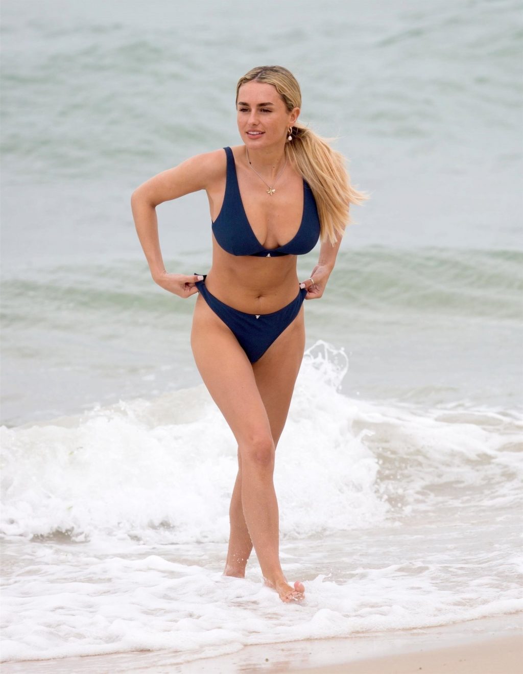 Amber, ben nota per la sua partecipazione al reality show britannico “Love Island”, si è concessa la spiaggia per l’estate australiana indossando un caldo bikini a due pezzi blu Beija London che metteva in mostra il suo corpo incredibile.