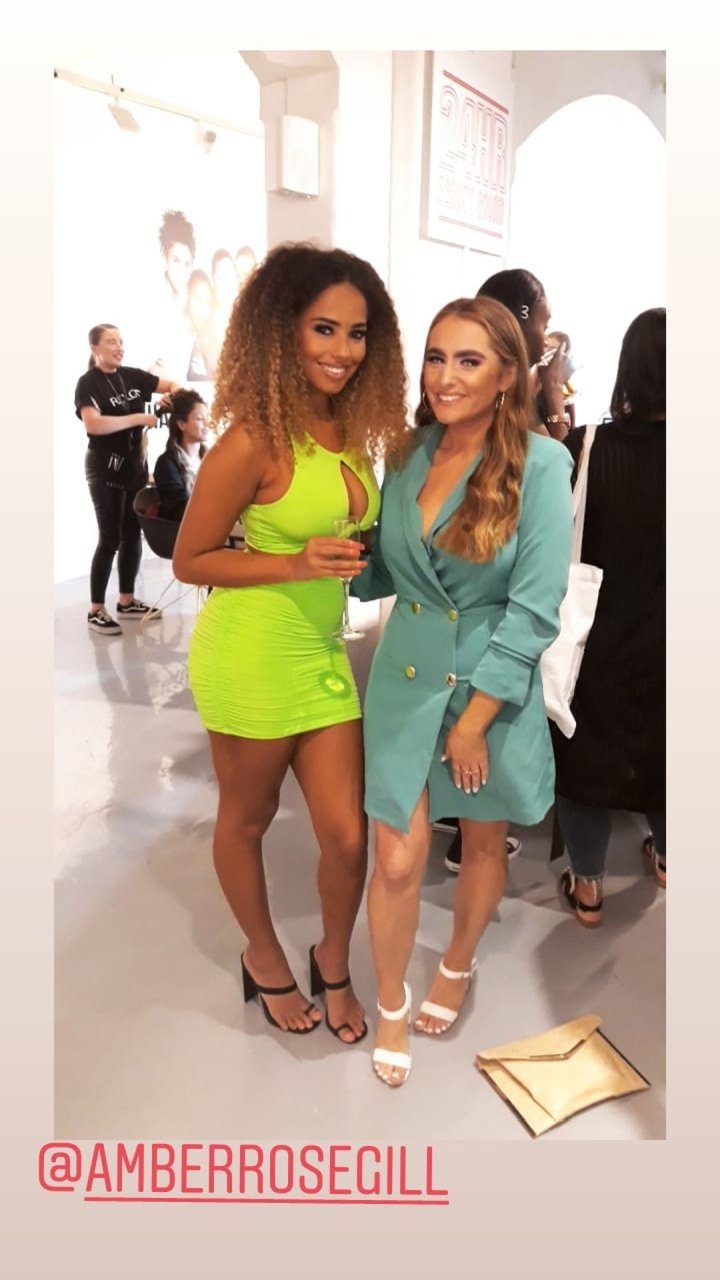 “Love Island” star Amber Rose Gill è stata vista qui indossare un audace outfit verde neon che mostrava molto décolleté e gambe mentre usciva dal salone di bellezza Revlon 24hr con Harley Brash – Londra, 19/09/2019.