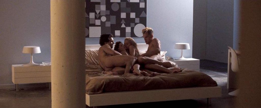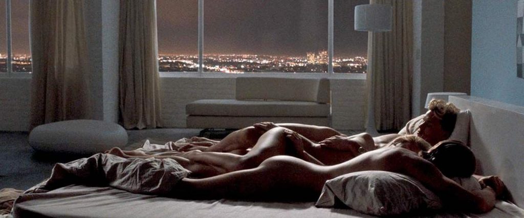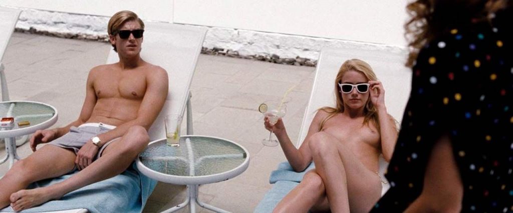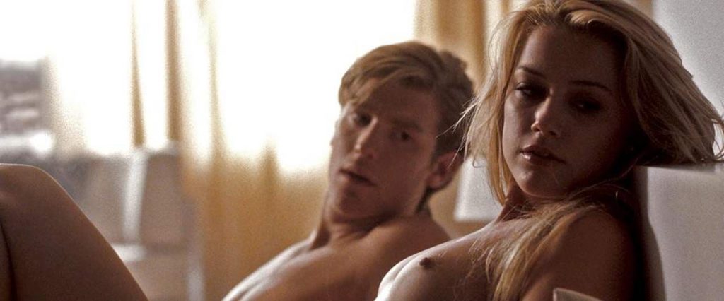 Amber Heard and less known actress Valentina Garcia showed tits in a scene, where both of them are naked by the pool and then two of them and two guys are leaving for having sex on a bed and kissing each other, while the third guy spotted them.