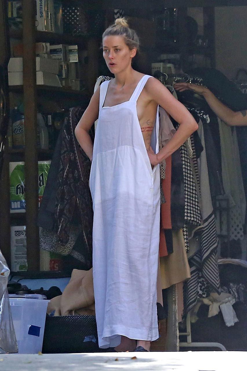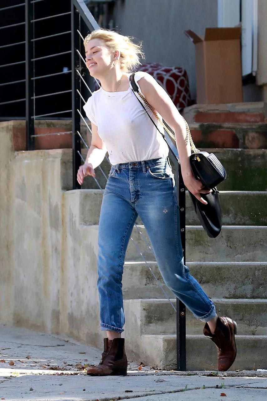 Check out one more free the nipple appearance, where Amber Heard was seen while she was leaving her friend’s house in Los Angeles today! Well, we need to admit, she’s trashy again; her hair is disgusting, but at least she’s not having acnes and hairy armpits like she had recently! She is a woman of my life, but I don’t like this dirty way of behaving men, she can put on some makeup from time to time!