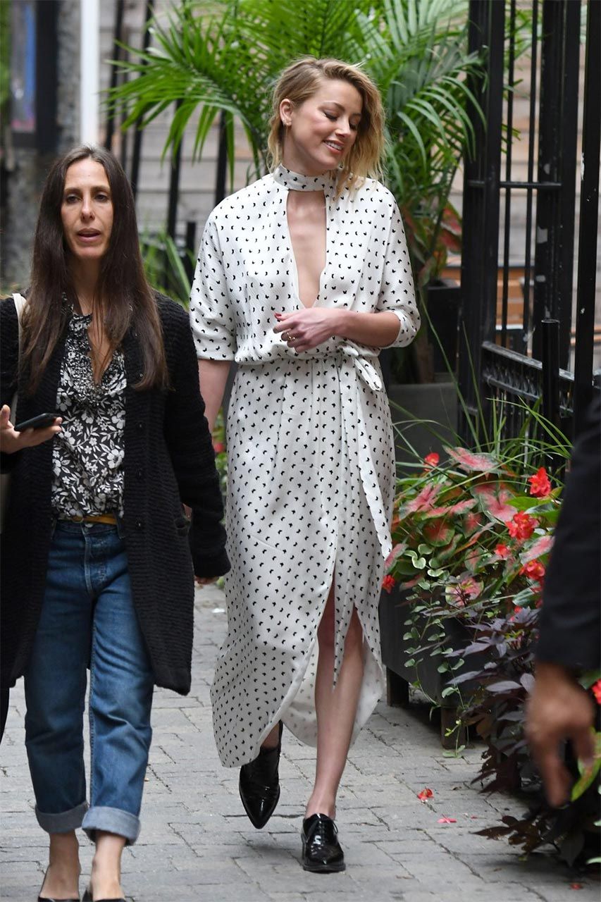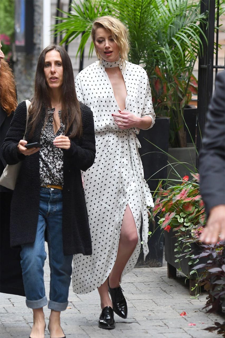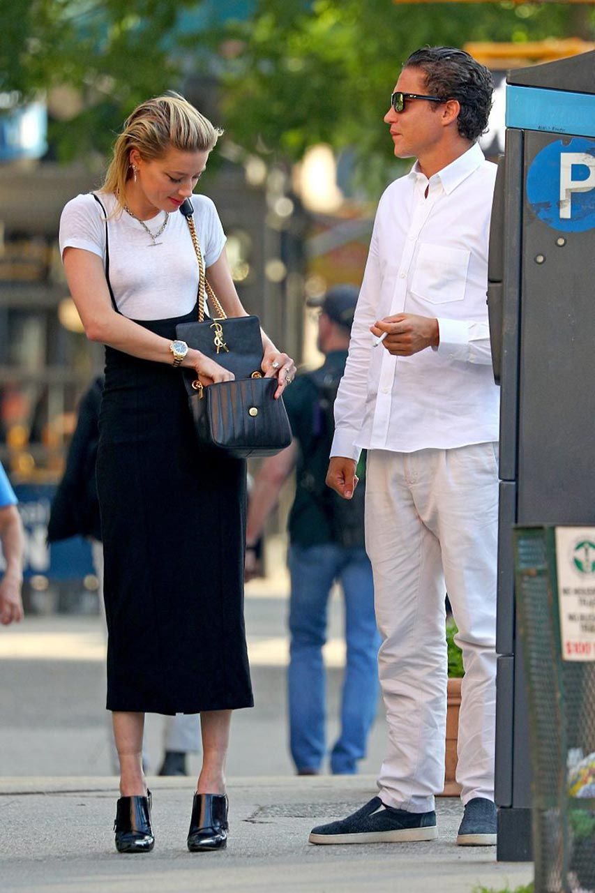 Hot actress and ex-wife Amber Heard hard nipples are free! The sexy blonde actress was seen braless while holding hands with her partner Vito Schnabel as they grab dinner together at Bar Pitti in New York City! Amber dressed in some white top and something beige below it; we can’t see what’s this, but her nipples say this is not a bra!