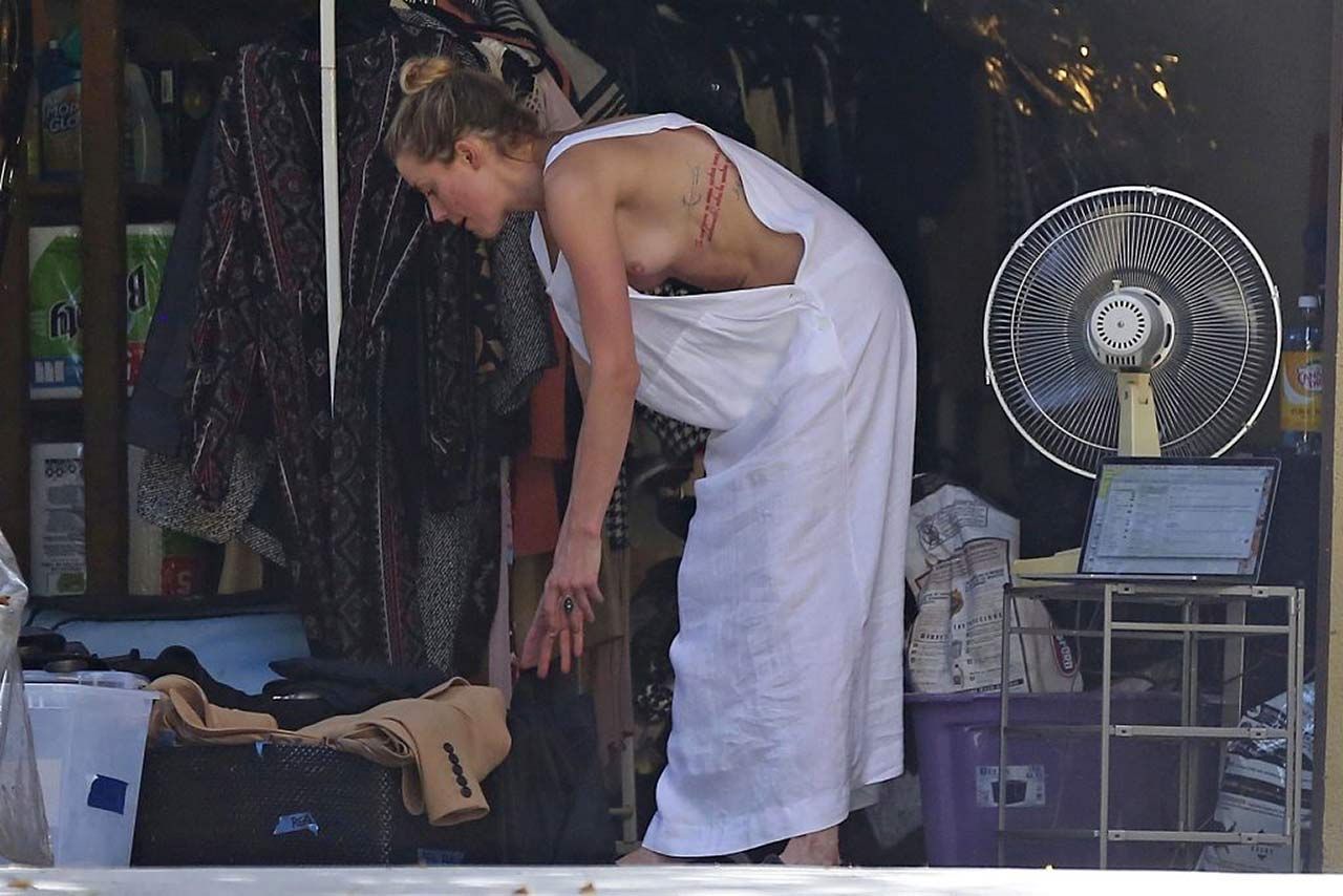 Elon Musk’s and Johnny Depp’s ex, Amber Heard’s nip slip, happened while cleaning her garage in Los Angeles! You used to see Amber Heard pretty and nude, but this time she was seen at her home, doing some cleaning and looking very dirty and unhappy, hope she has a dick to fuck and a pussy to give! Amber’s face is full of acne and red pimples, so she needs some cum over her face; we heard it’s suitable for face cleaning! LMAO