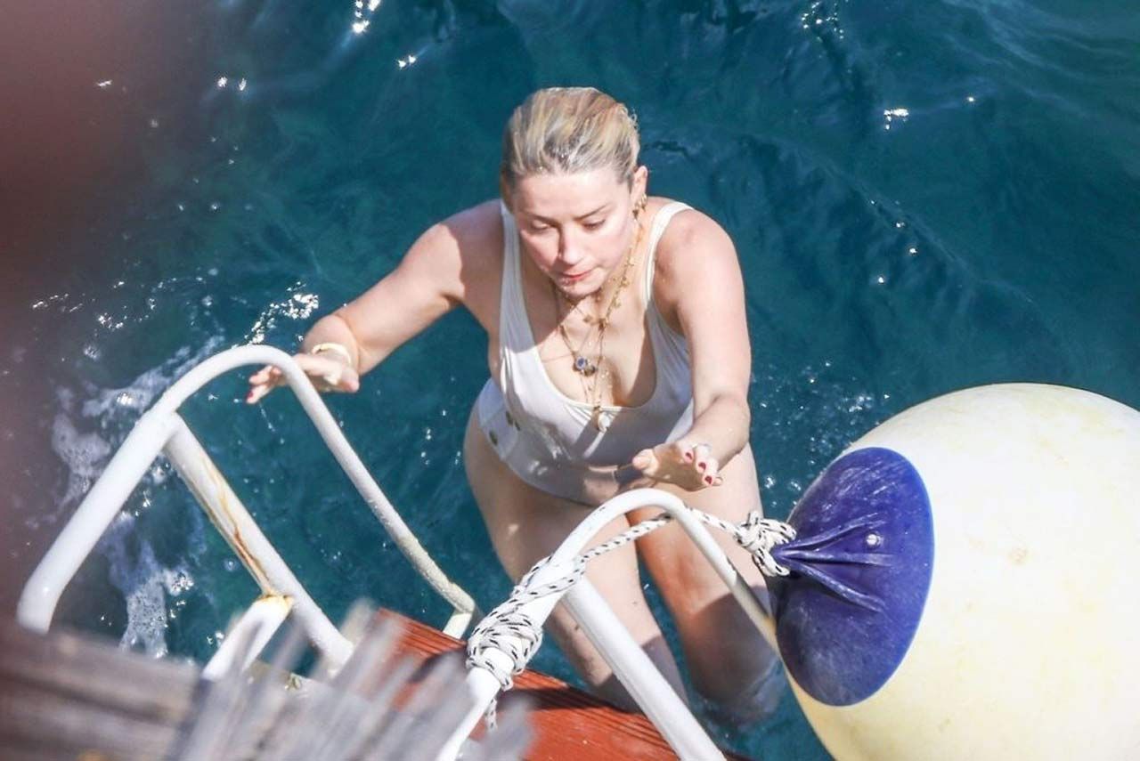Amber Heard Bikini Pics – Sexy in White Swimsuit