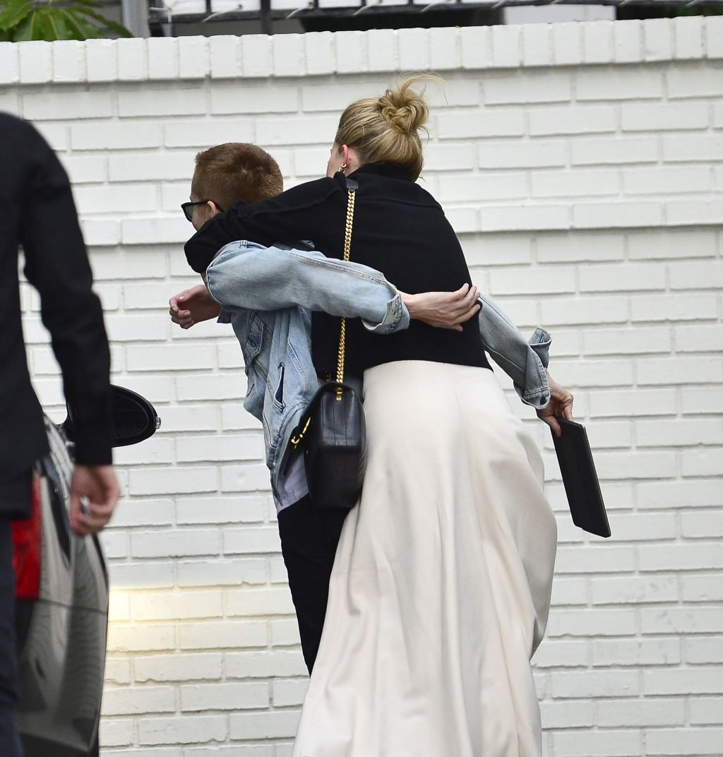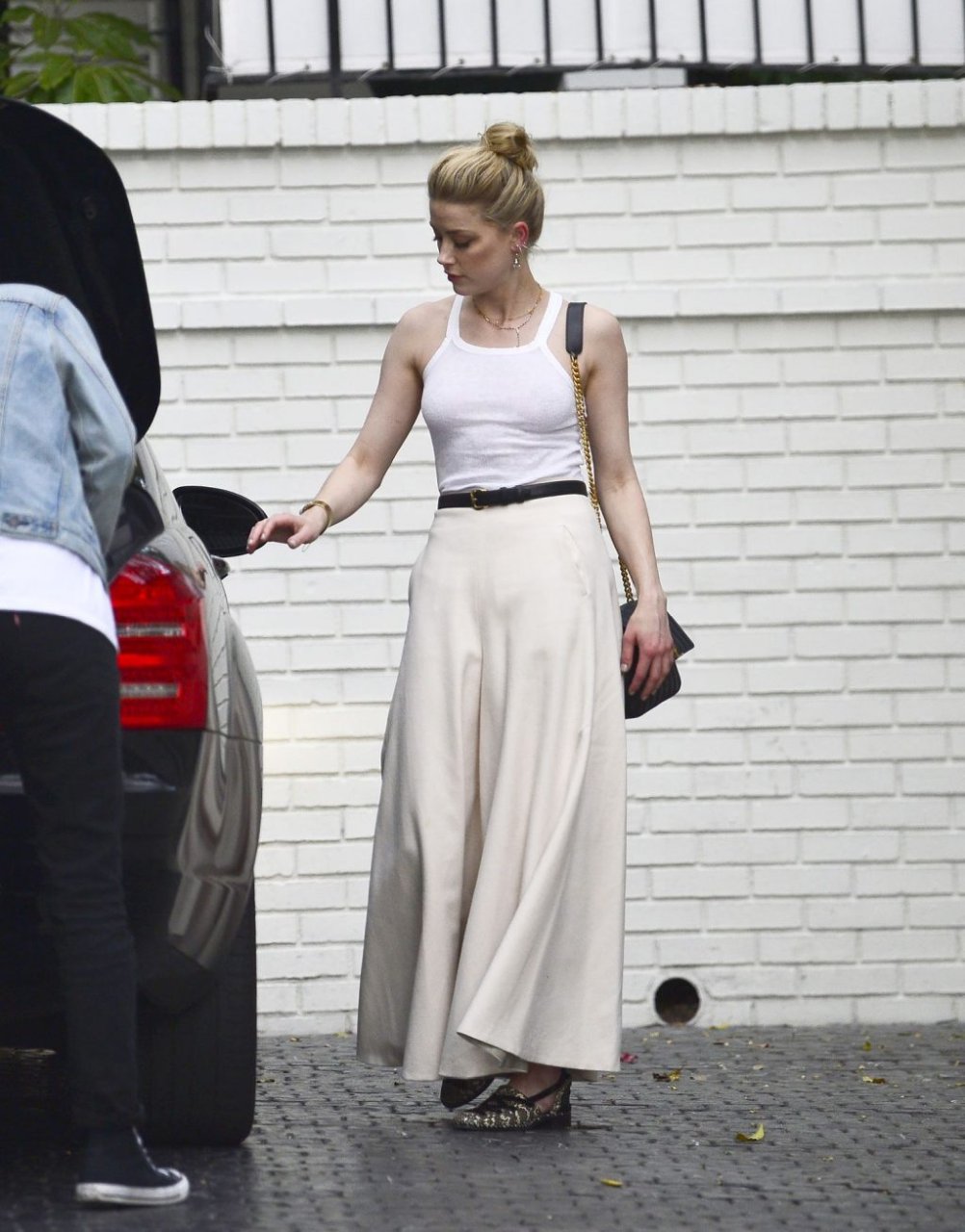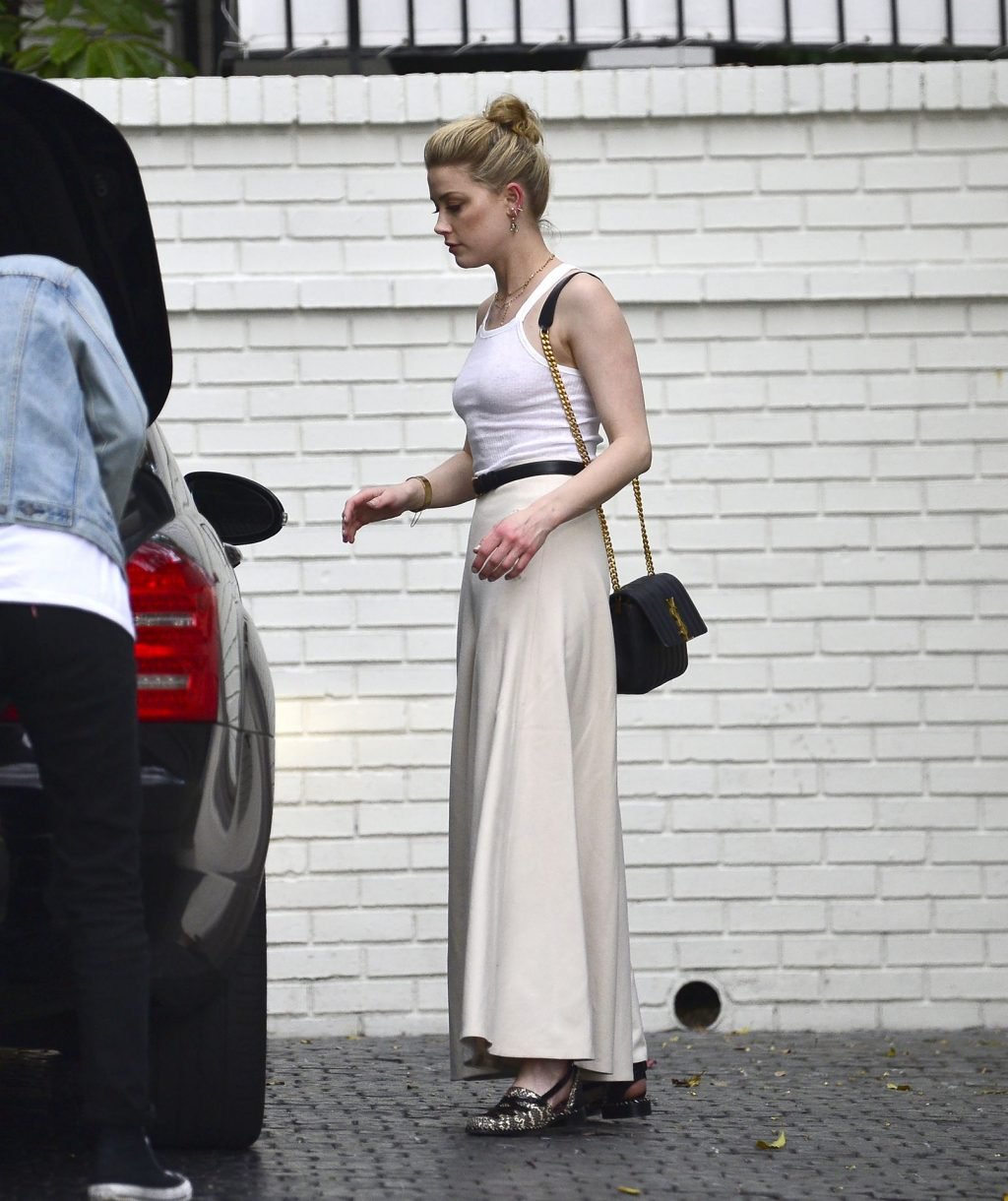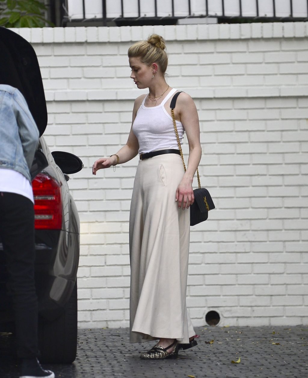 Attrice e star di The Fappening Amber Heard cerca di farsi dare un passaggio sulla schiena di un’amica mentre arriva all’Hotel Chateau Marmont a Los Angeles, 01/04/2019. L’attrice di 32 anni indossava una canotta bianca, giacca nera, pantaloni larghi e scarpe in pelle di serpente.