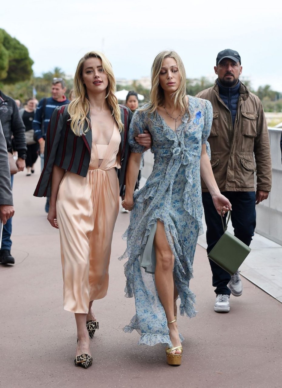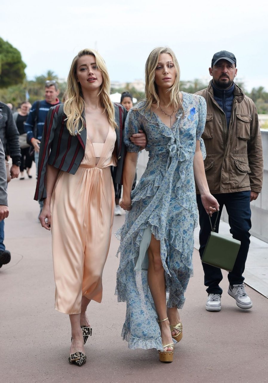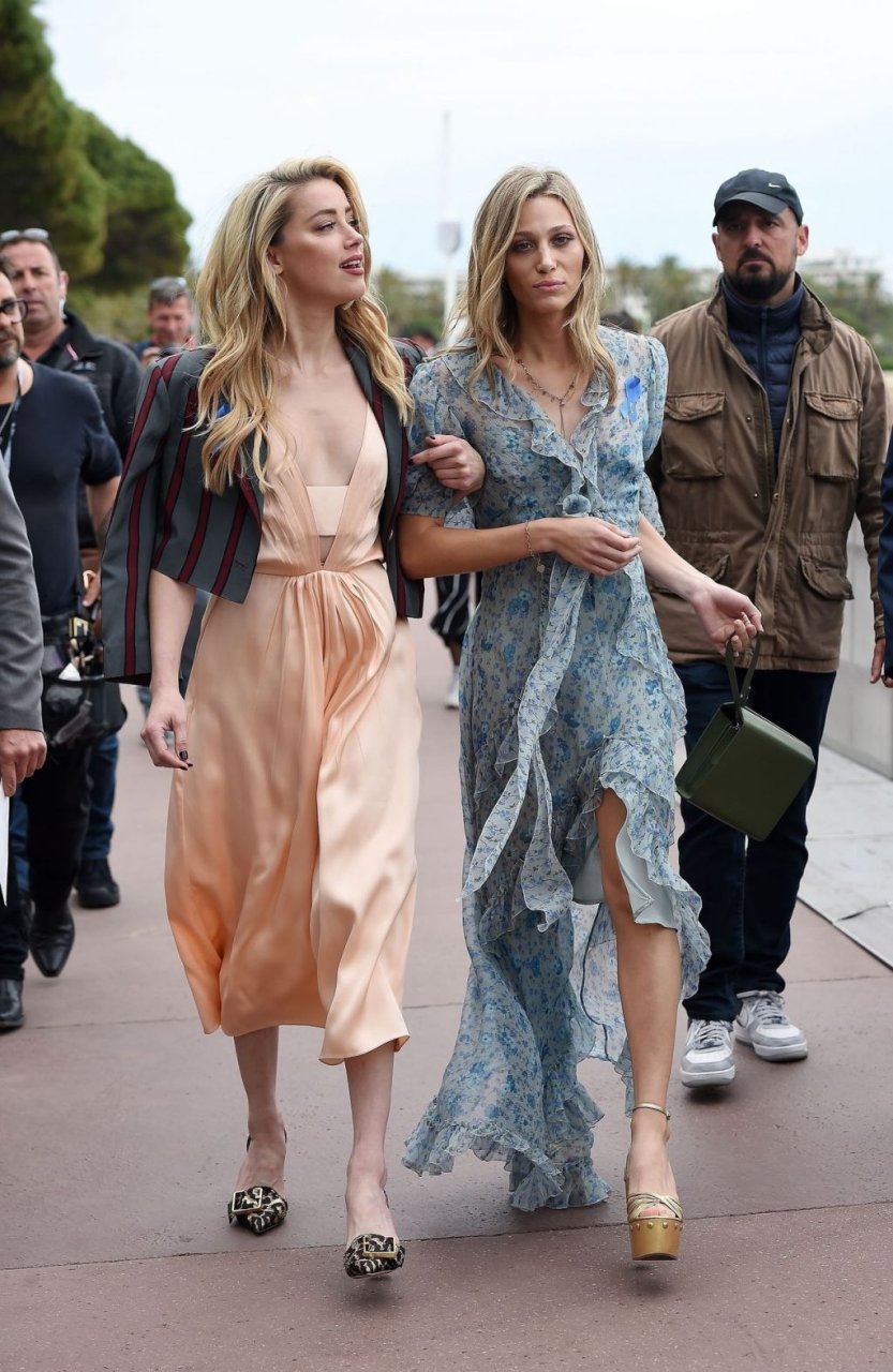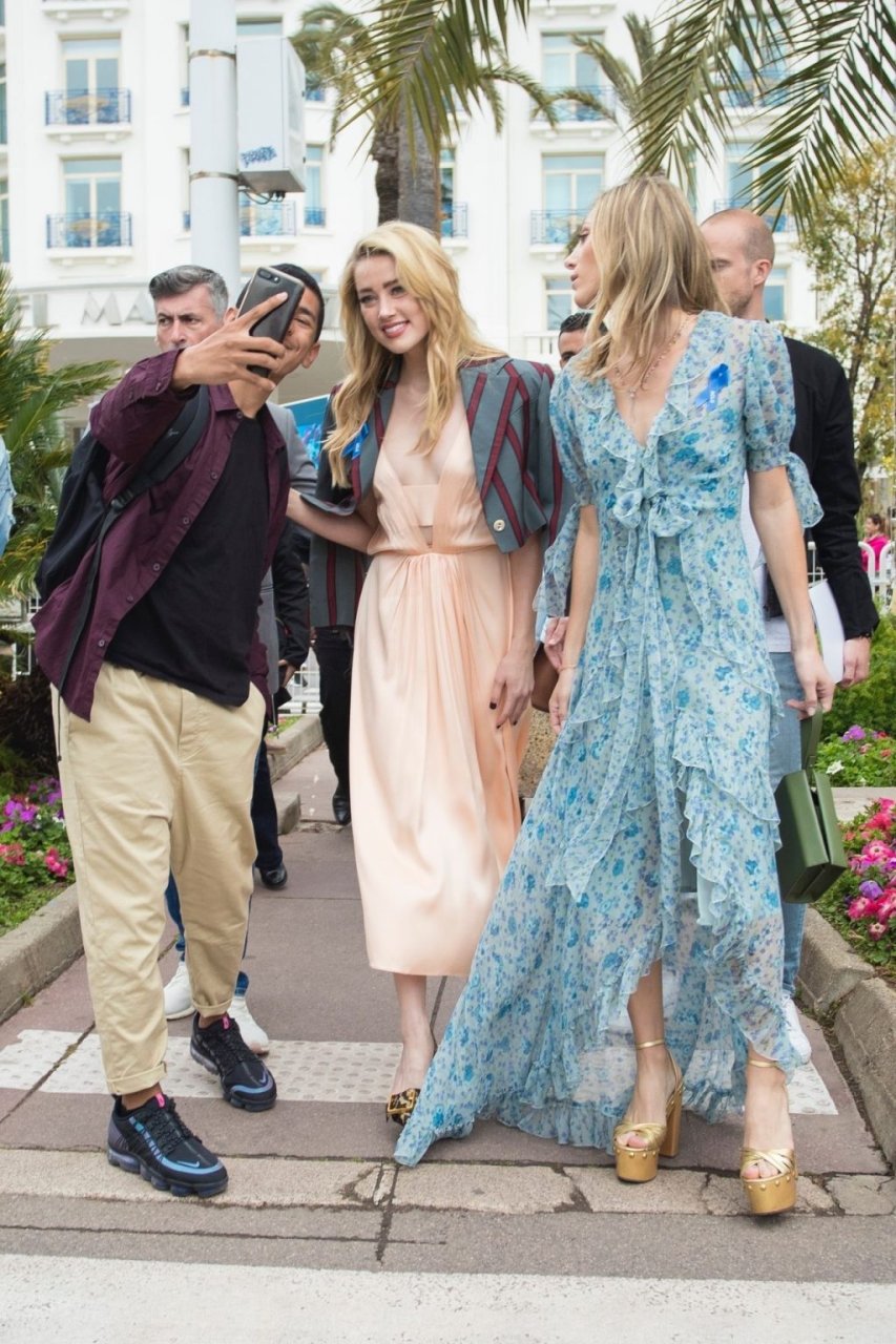 Attrice e star di The Fappening Amber Heard appare alla moda in un abito di raso e giacca corta mentre viene fotografata sulla Promenade de la Croisette durante il 72° Festival Internazionale del Cinema di Cannes, 17/05/2019.