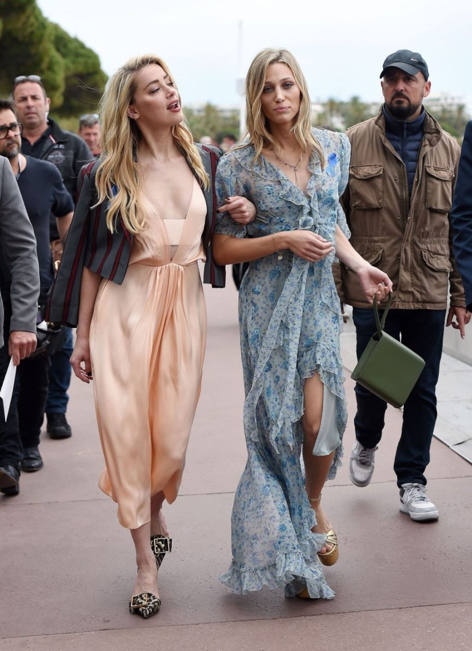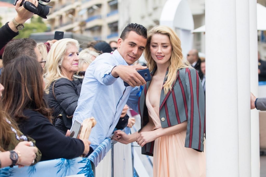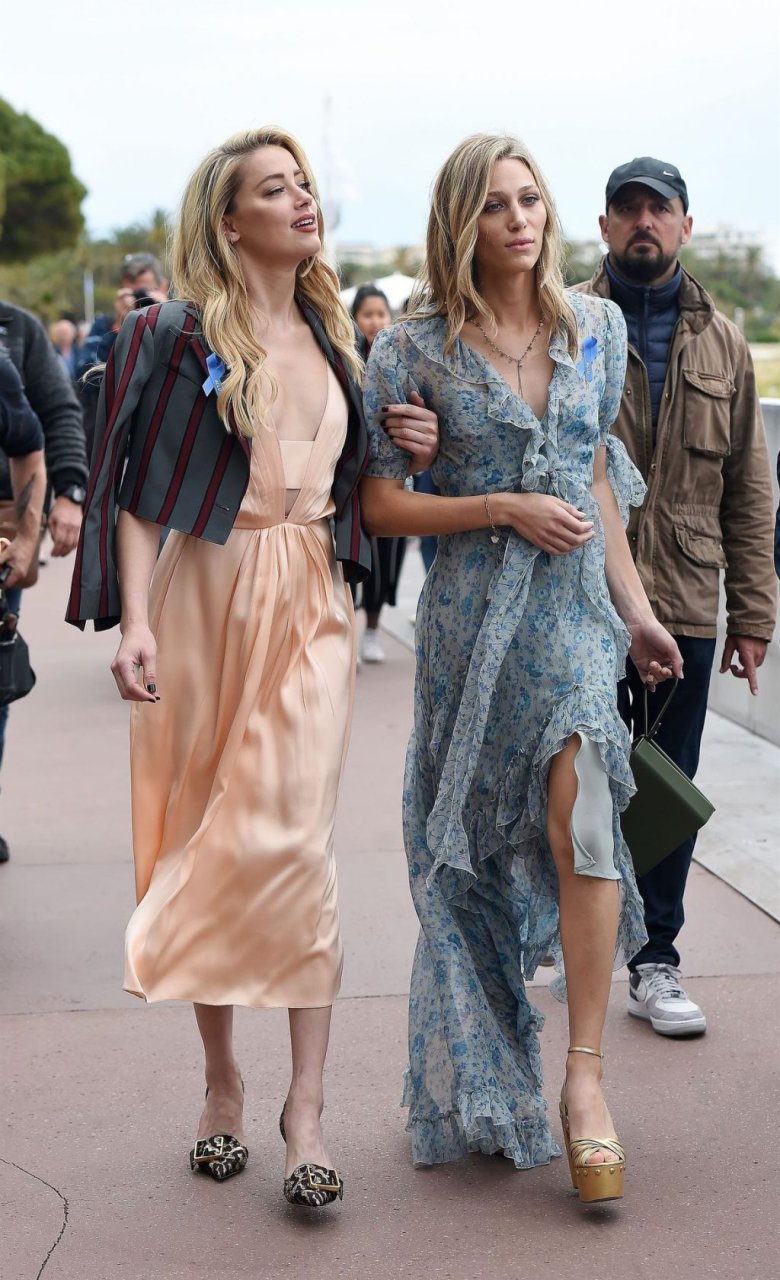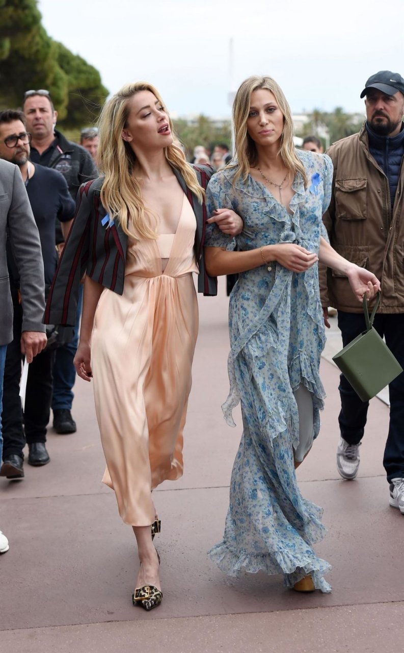 Attrice e star di The Fappening Amber Heard appare alla moda in un abito di raso e giacca corta mentre viene fotografata sulla Promenade de la Croisette durante il 72° Festival Internazionale del Cinema di Cannes, 17/05/2019.