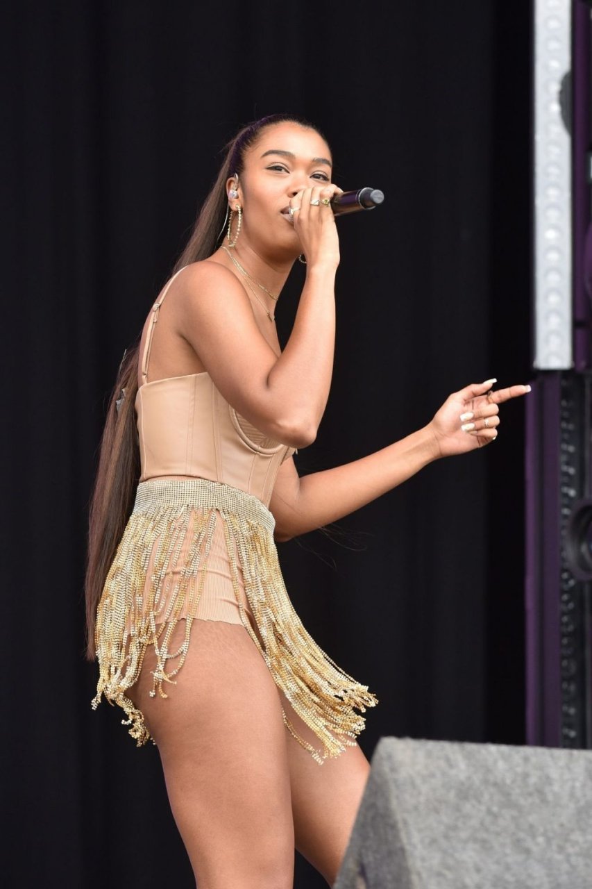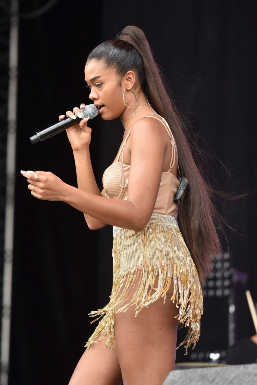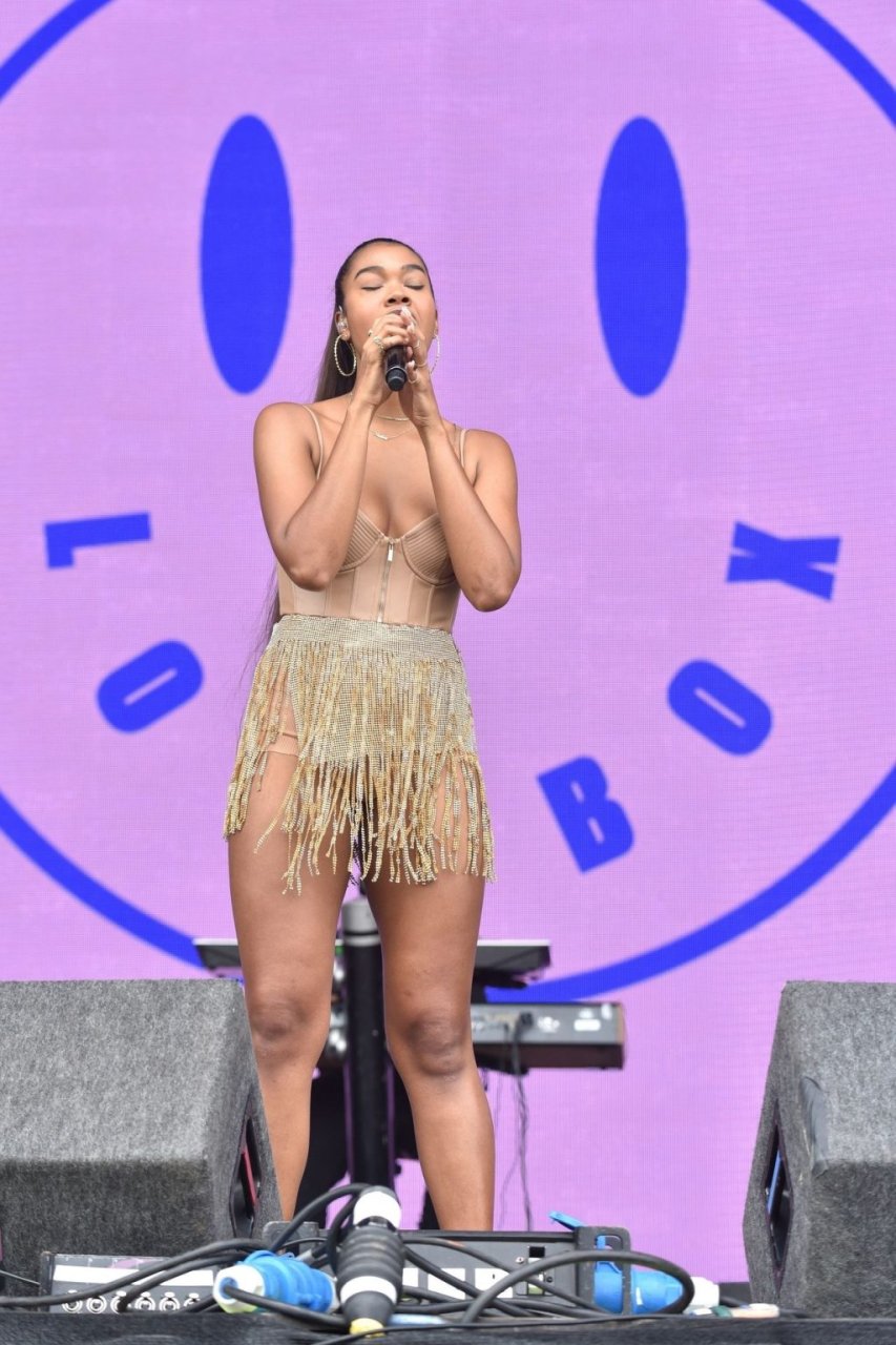 Singer Amber Mark (25) è stata fotografata sul palco principale nel Giorno 2 del Lovebox Festival, 13/07/2019.