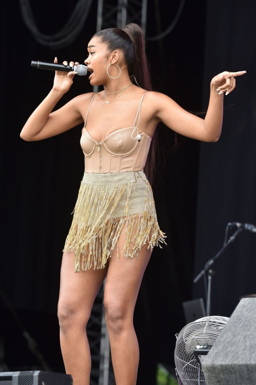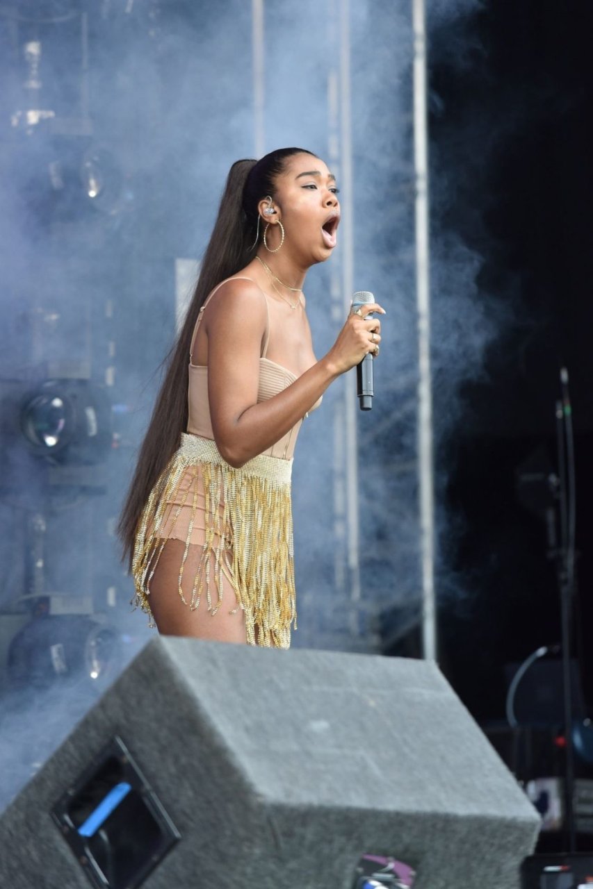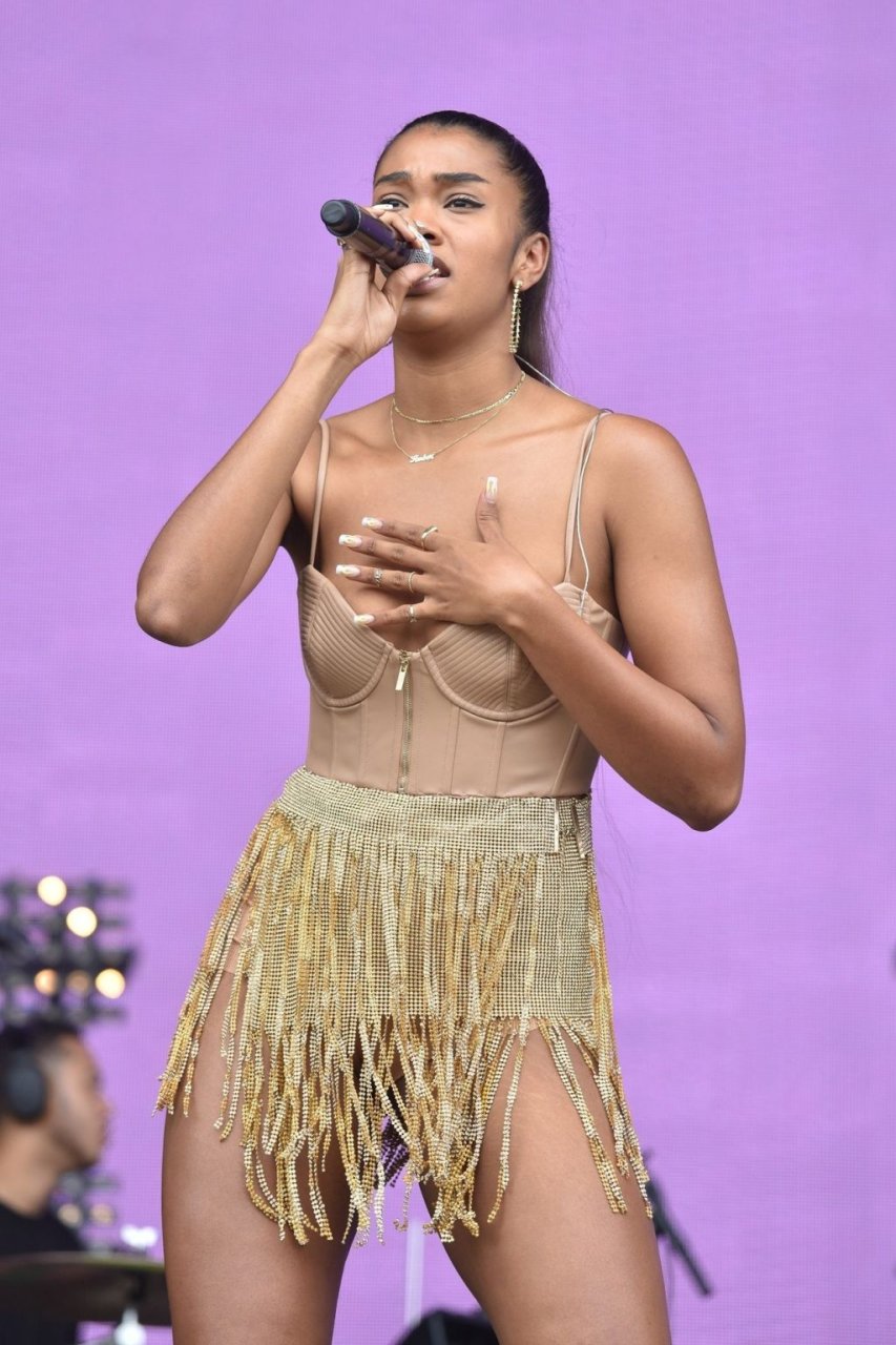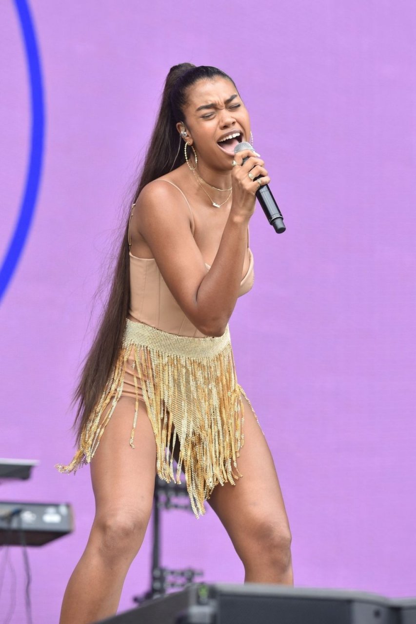 Singer Amber Mark (25) è stata fotografata sul palco principale nel Giorno 2 del Lovebox Festival, 13/07/2019.