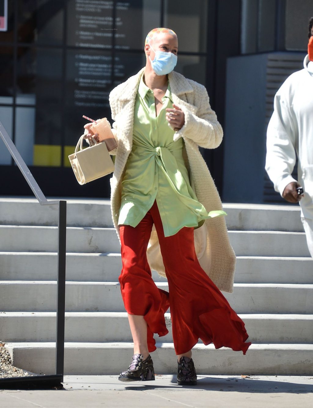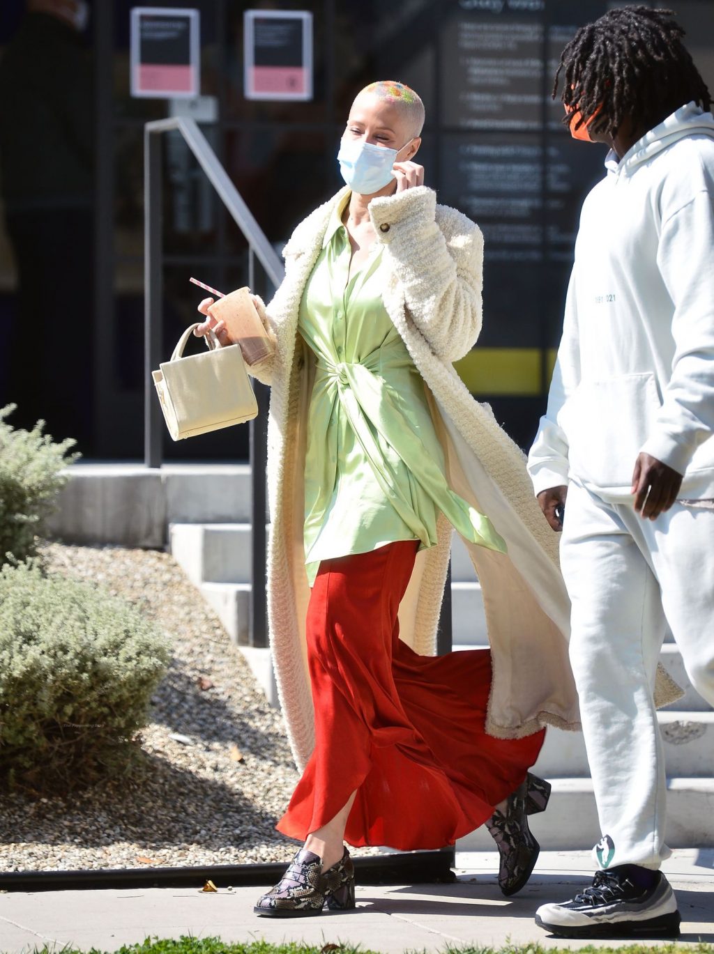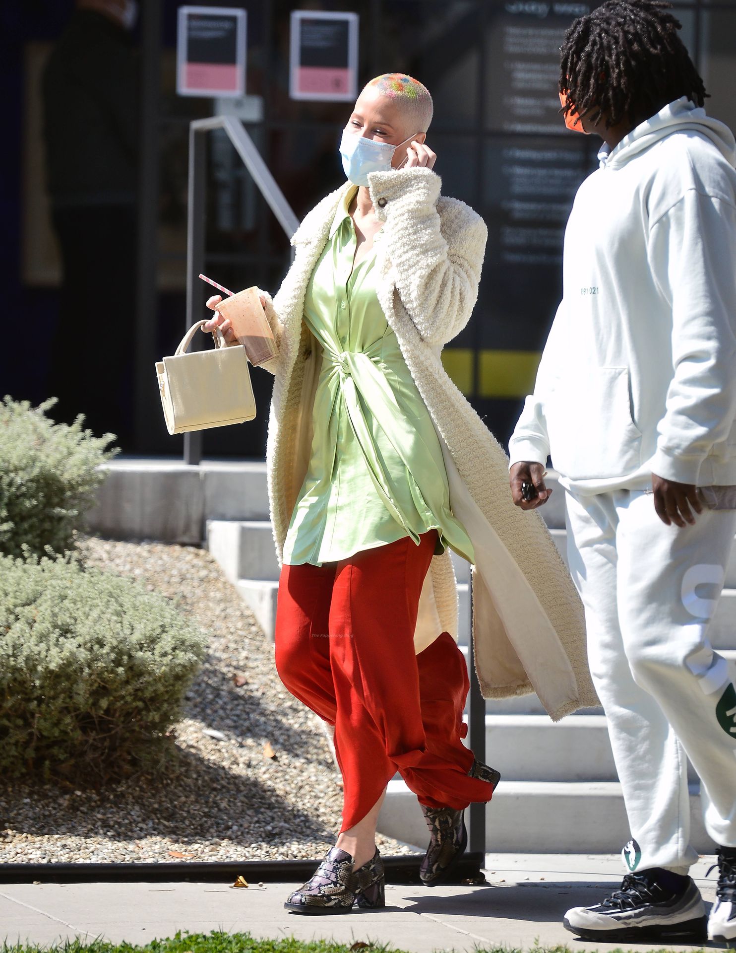 Amber Rose sfoggia la sua nuova e stravagante acconciatura multicolore mentre viene vista con un uomo misterioso uscire dall’UTA Artist Space a Beverly Hills, 14/03/2021.