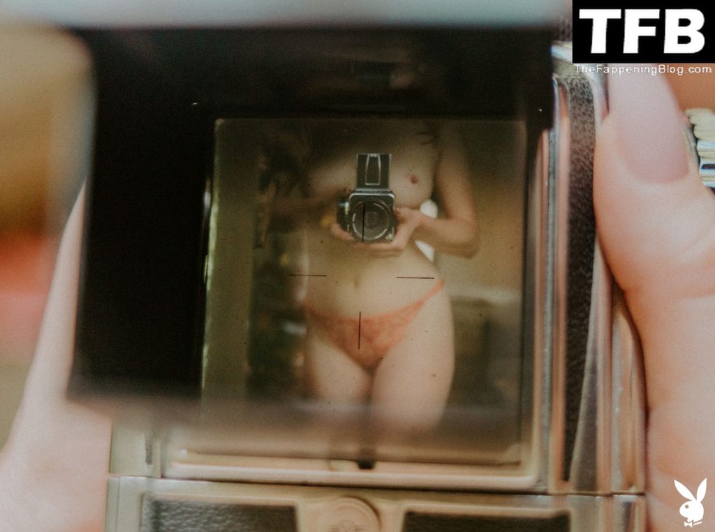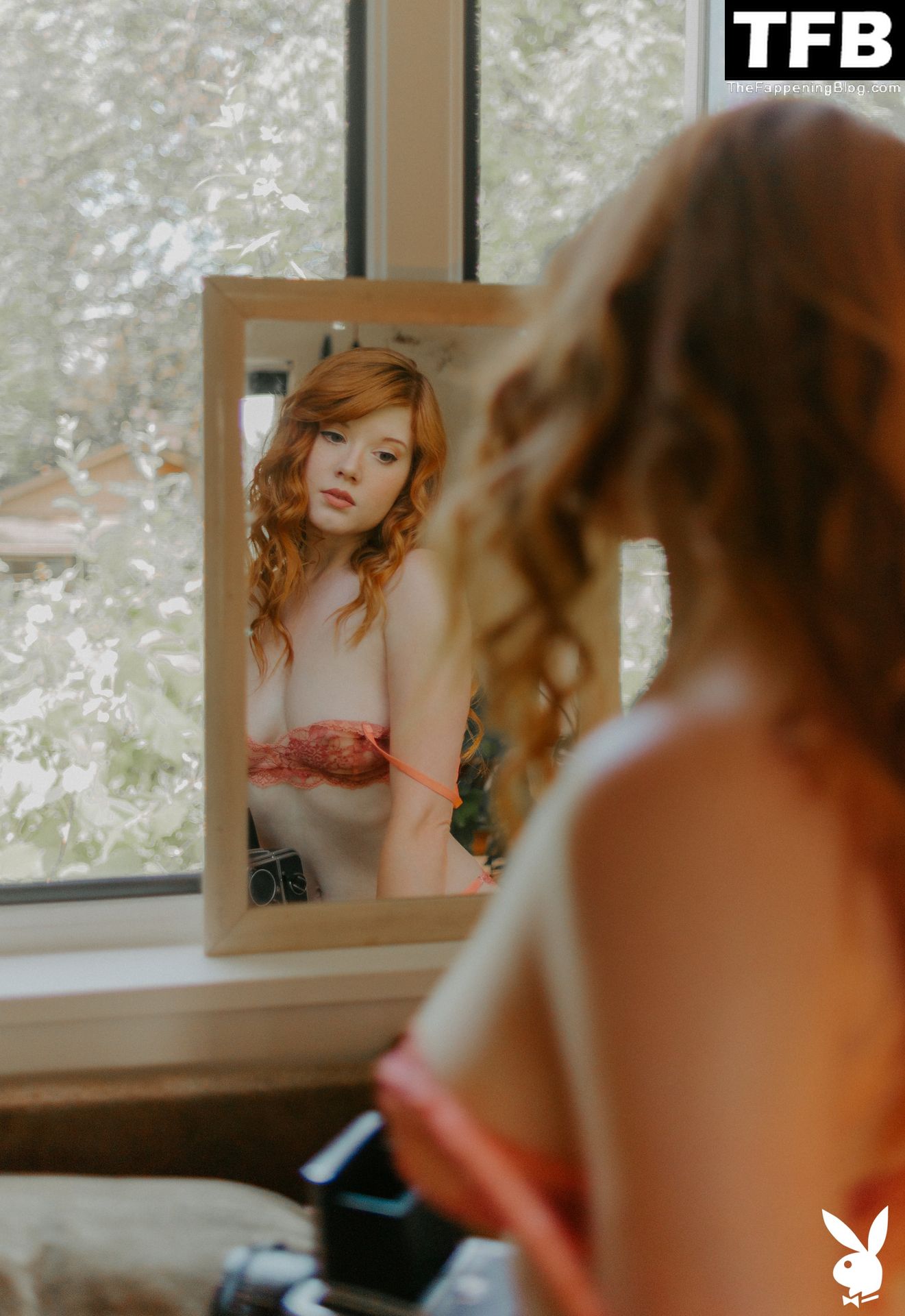 Modella/fotografa dai capelli rossi Amber Rose McConnell posa in lingerie, si spoglia e mostra le sue qualità in un servizio fotografico per Playboy Plus (2020).