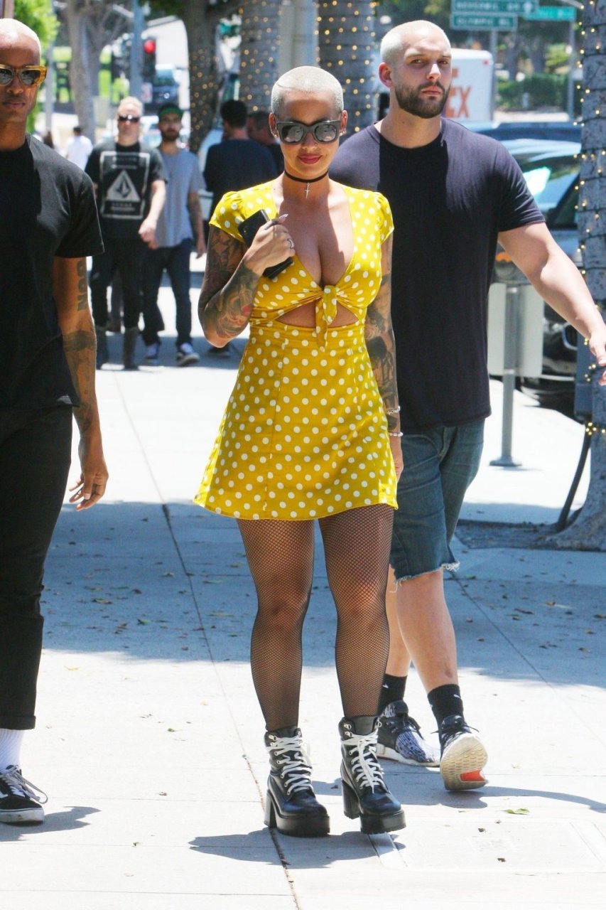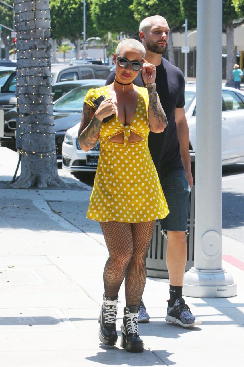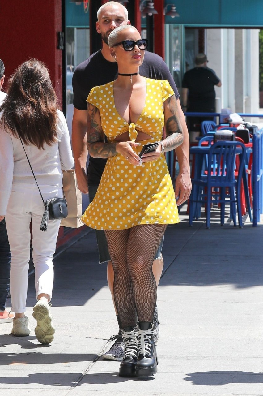 La star di Internet e TV ha passeggiato per Beverly Hills con un vestito corto giallo a pois. Il suo look è stato completato da collant e scarpe giganti. È come se Amber avesse indossato un vestito dall’armadio della fidanzata di suo figlio di 5 anni.