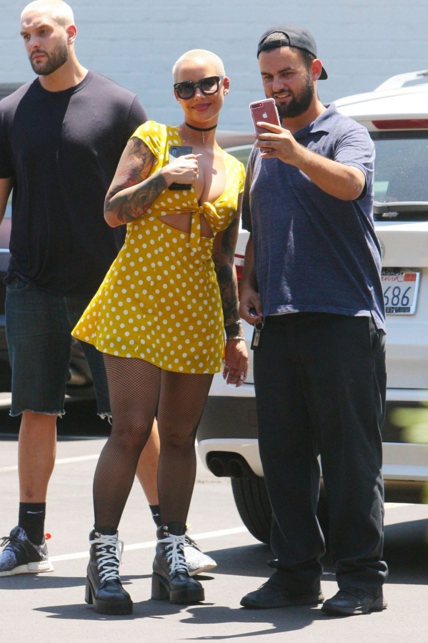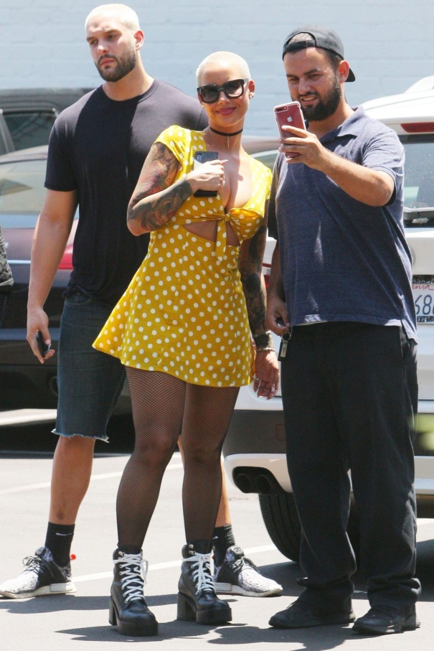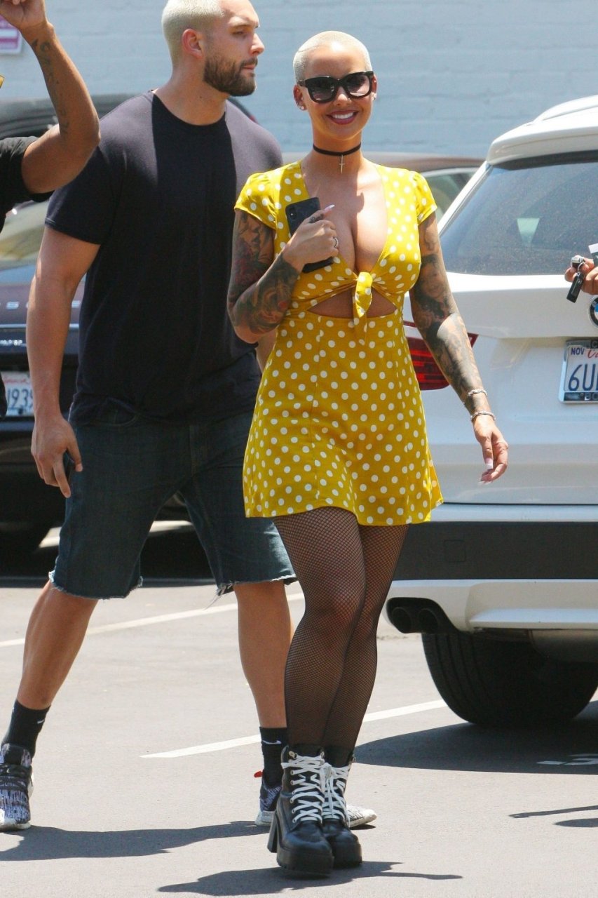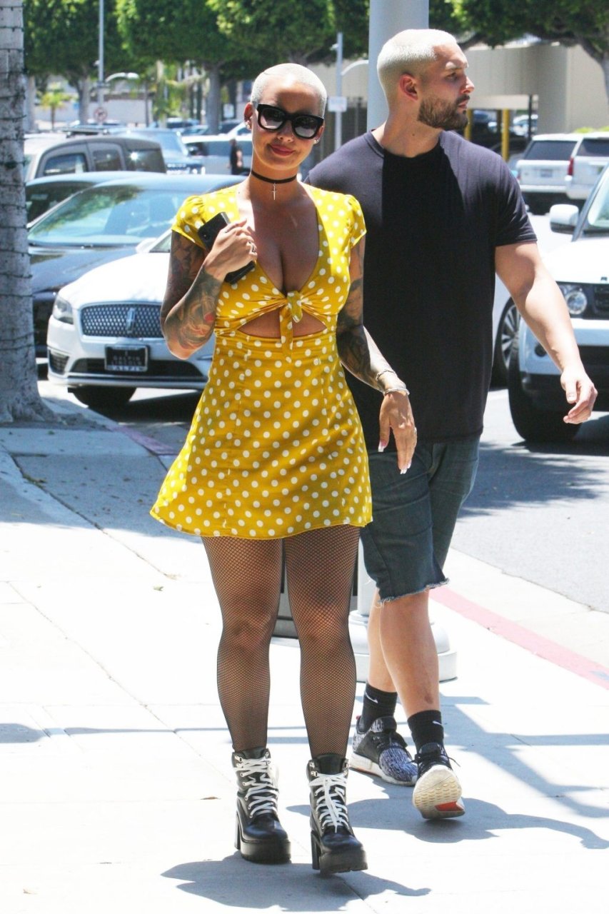 La star di Internet e TV ha passeggiato per Beverly Hills con un vestito corto giallo a pois. Il suo look è stato completato da collant e scarpe giganti. È come se Amber avesse indossato un vestito dall’armadio della fidanzata di suo figlio di 5 anni.