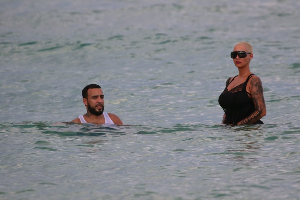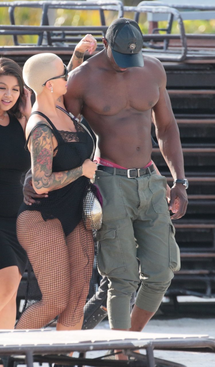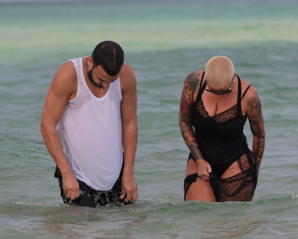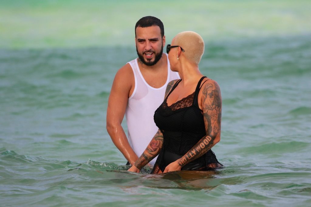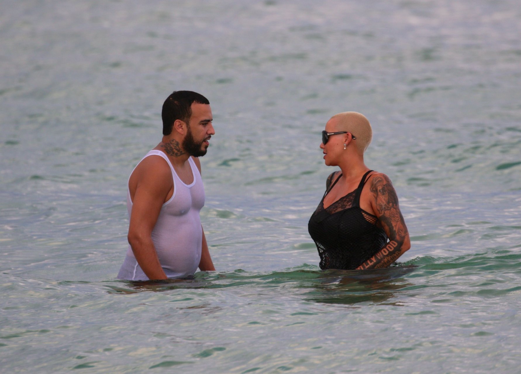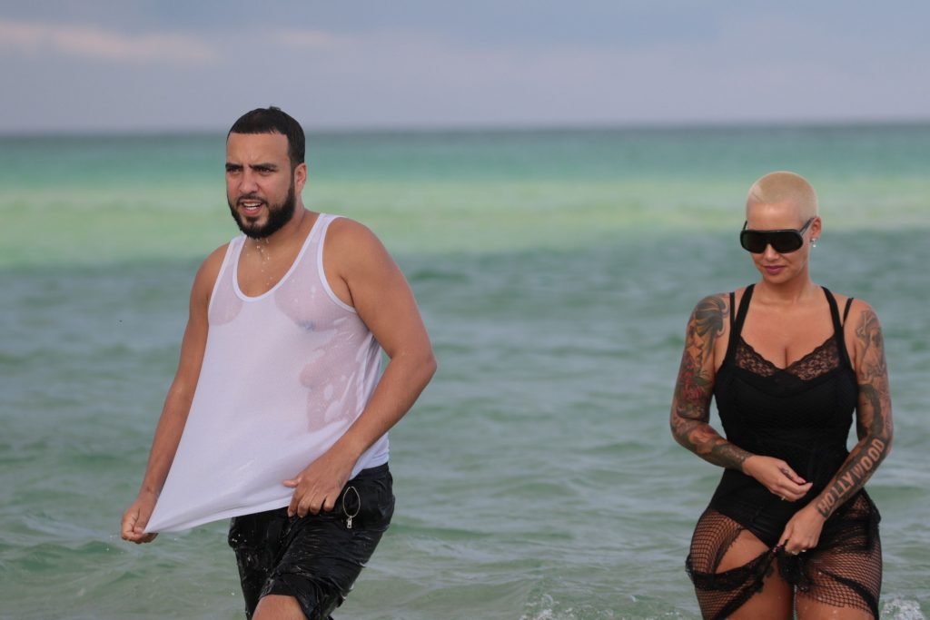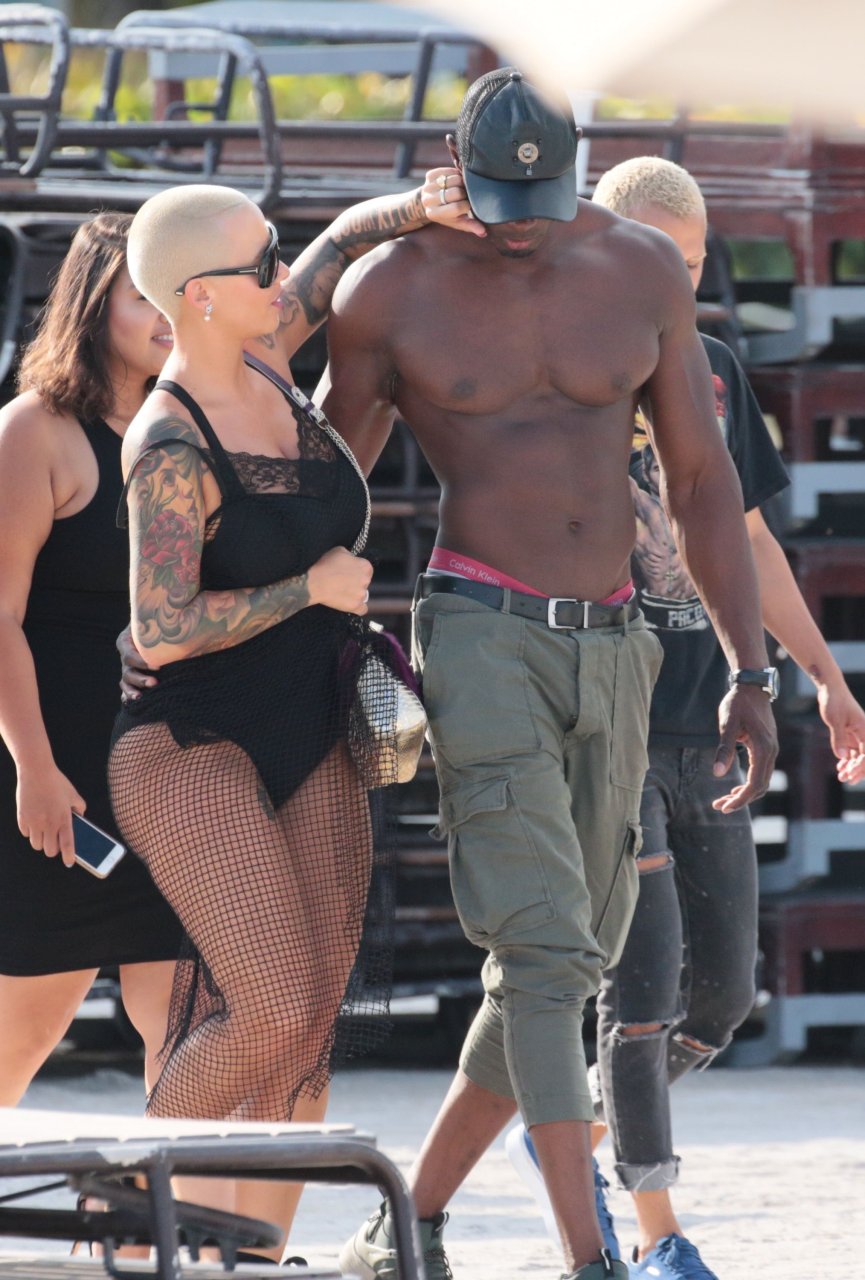 Amber Rose e il suo fidanzato si mostrano affettuosi sulla spiaggia di Miami Beach, 14/05/2017. Amber Levonchuck (Rose) è una modella, rapper e attrice americana (Black-ish (Serie TV), 2015). Età: 33.