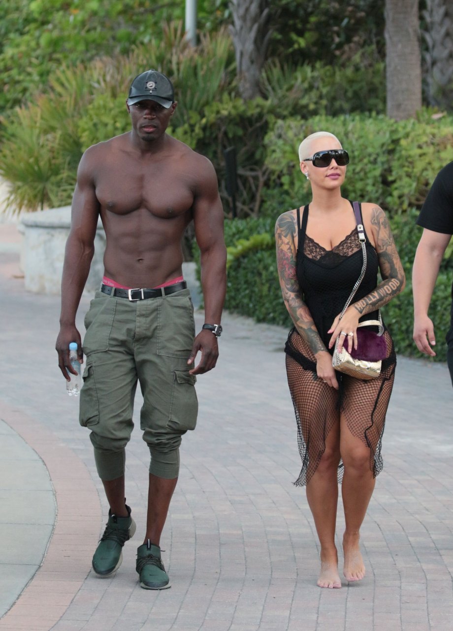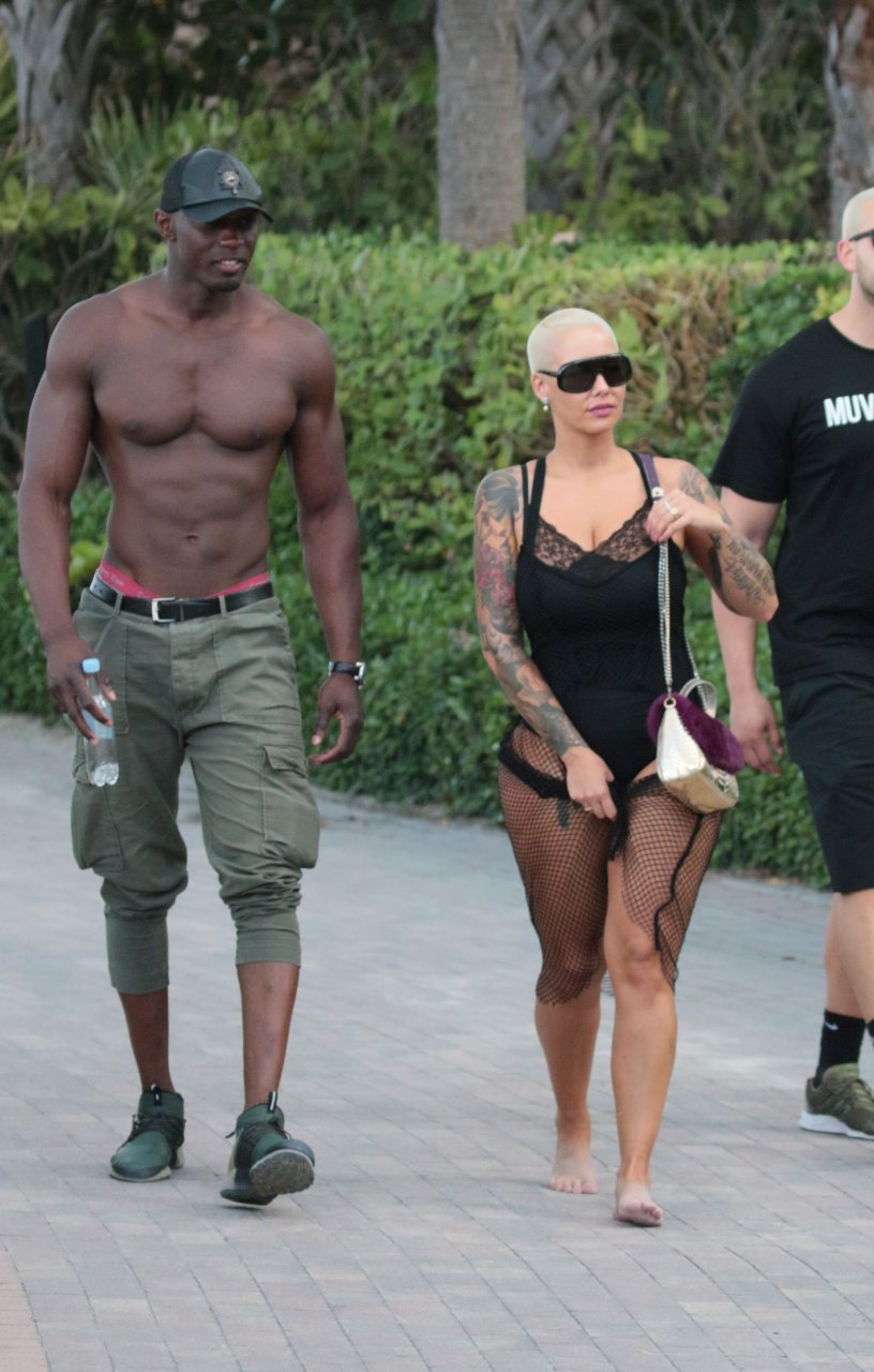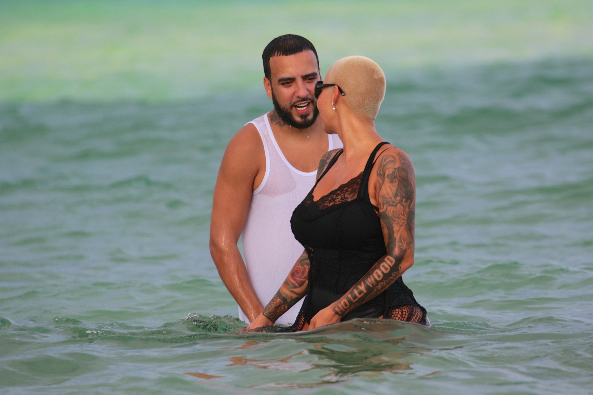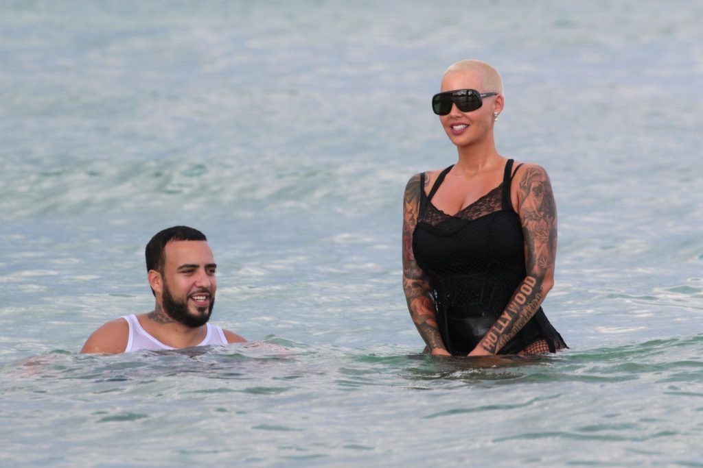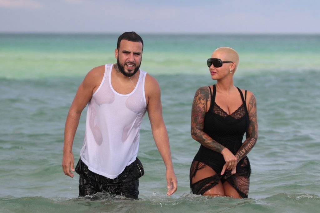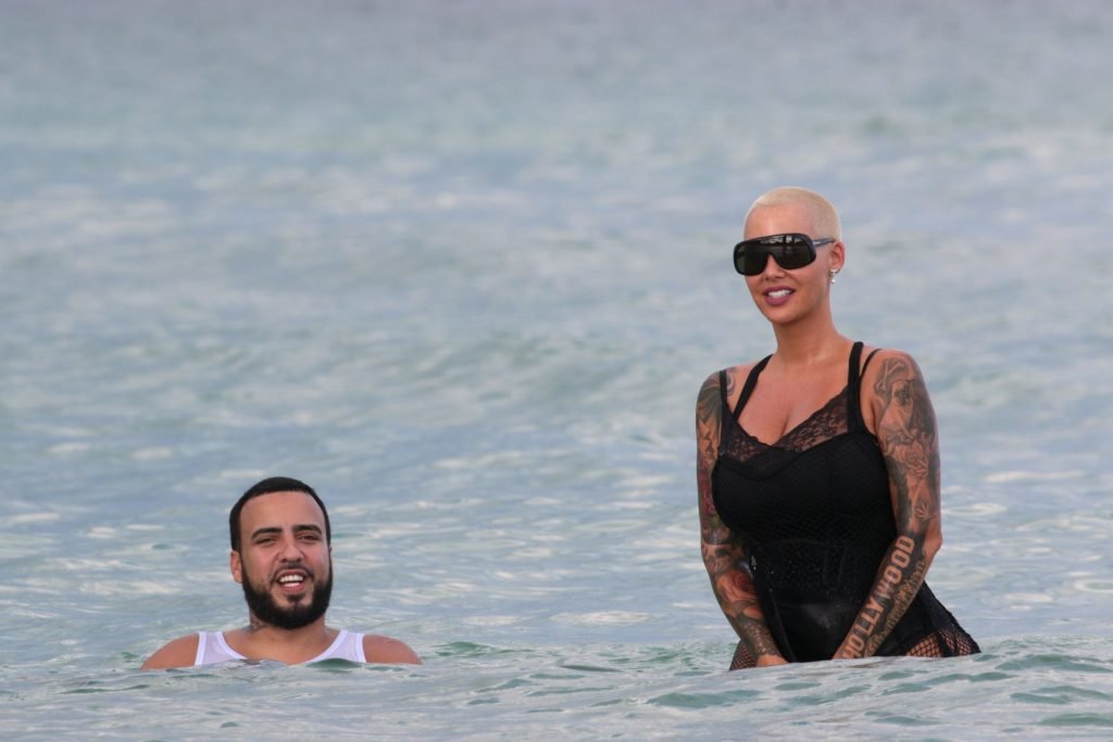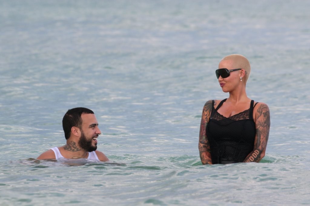 Amber Rose e il suo fidanzato si mostrano affettuosi sulla spiaggia di Miami Beach, 14/05/2017. Amber Levonchuck (Rose) è una modella, rapper e attrice americana (Black-ish (Serie TV), 2015). Età: 33.
