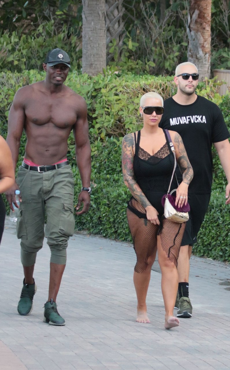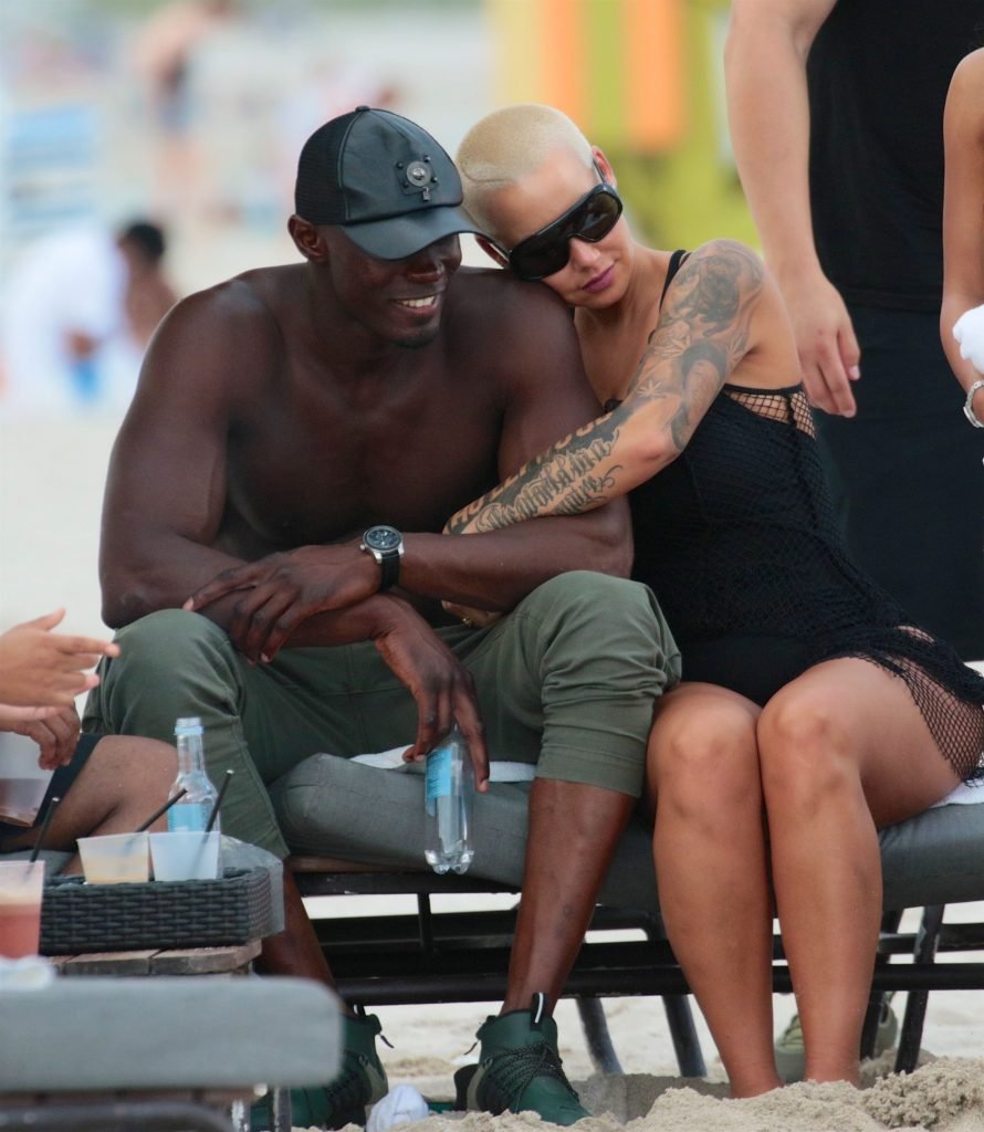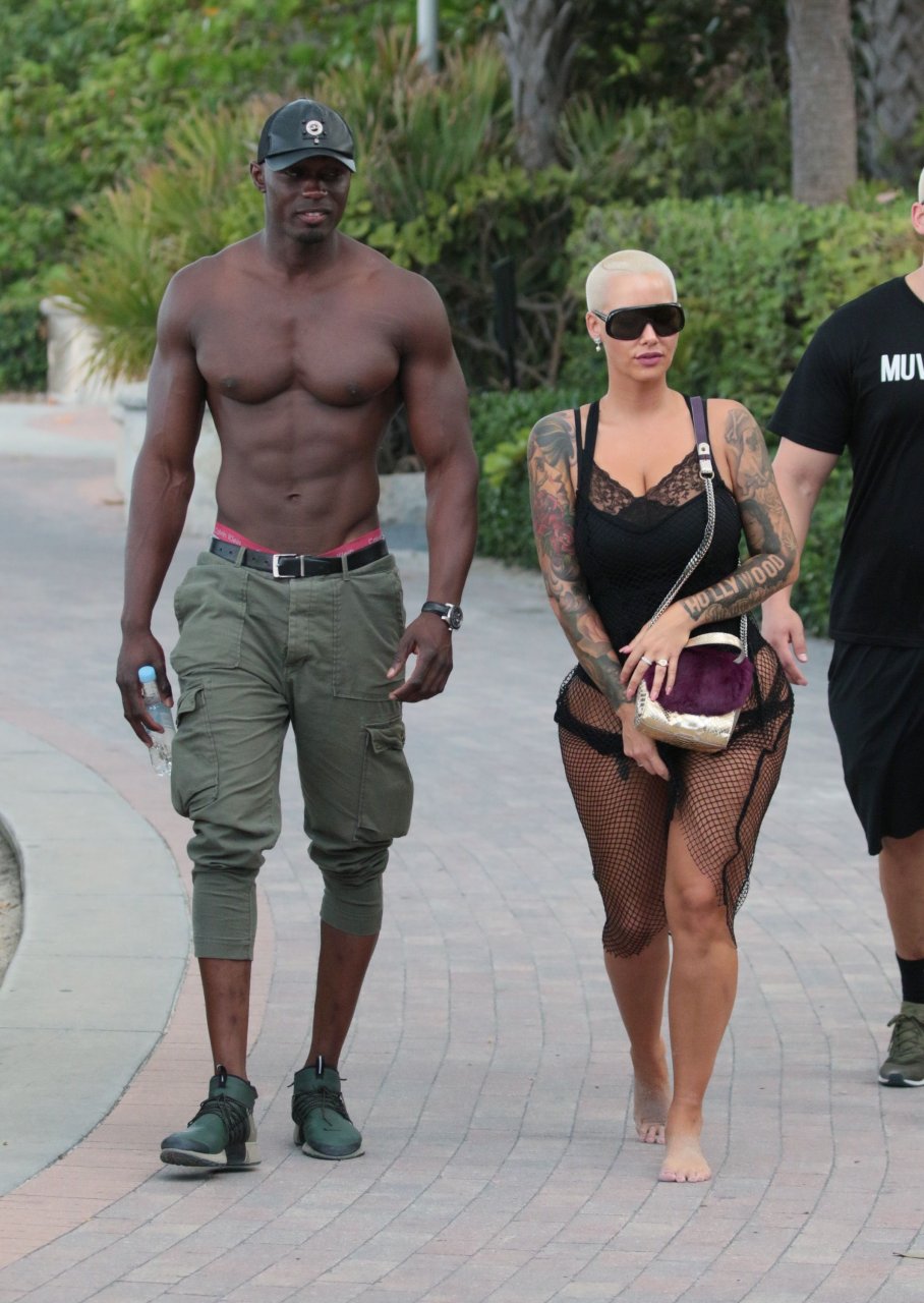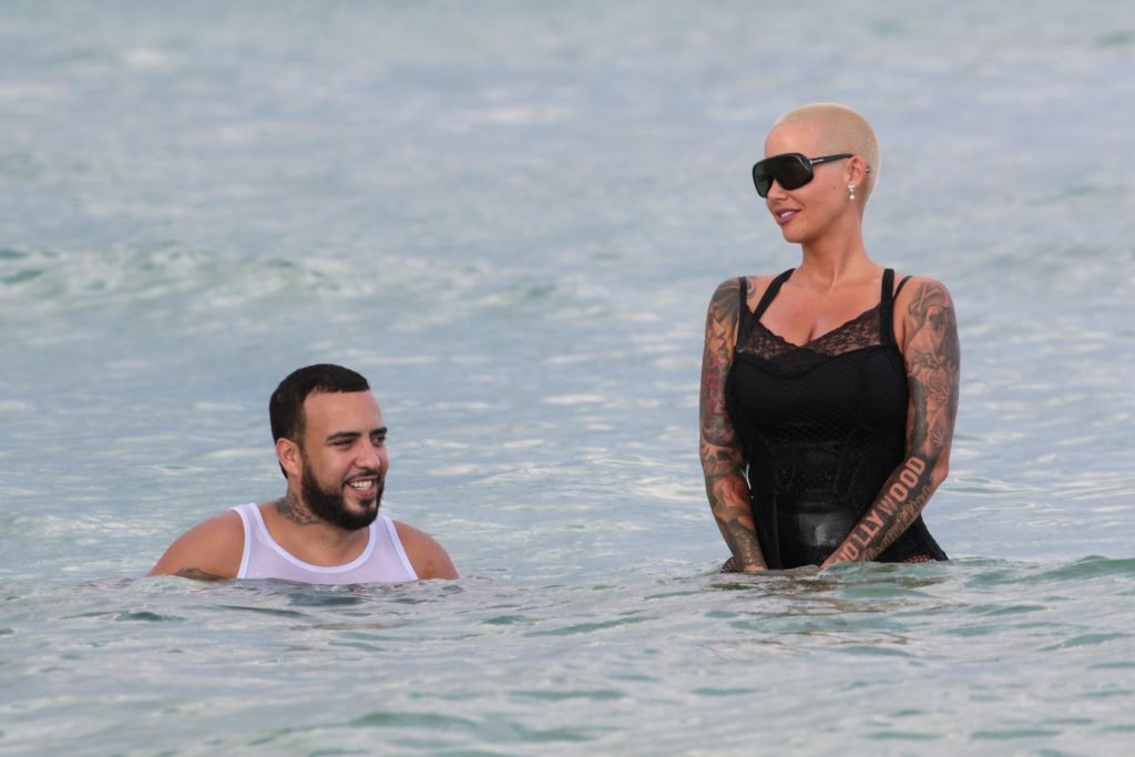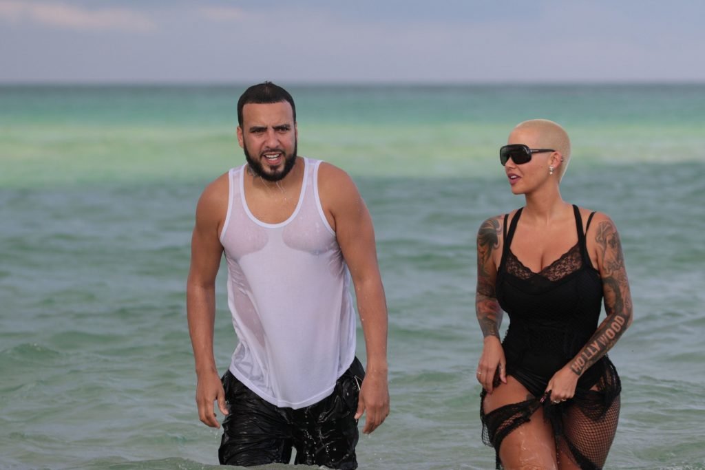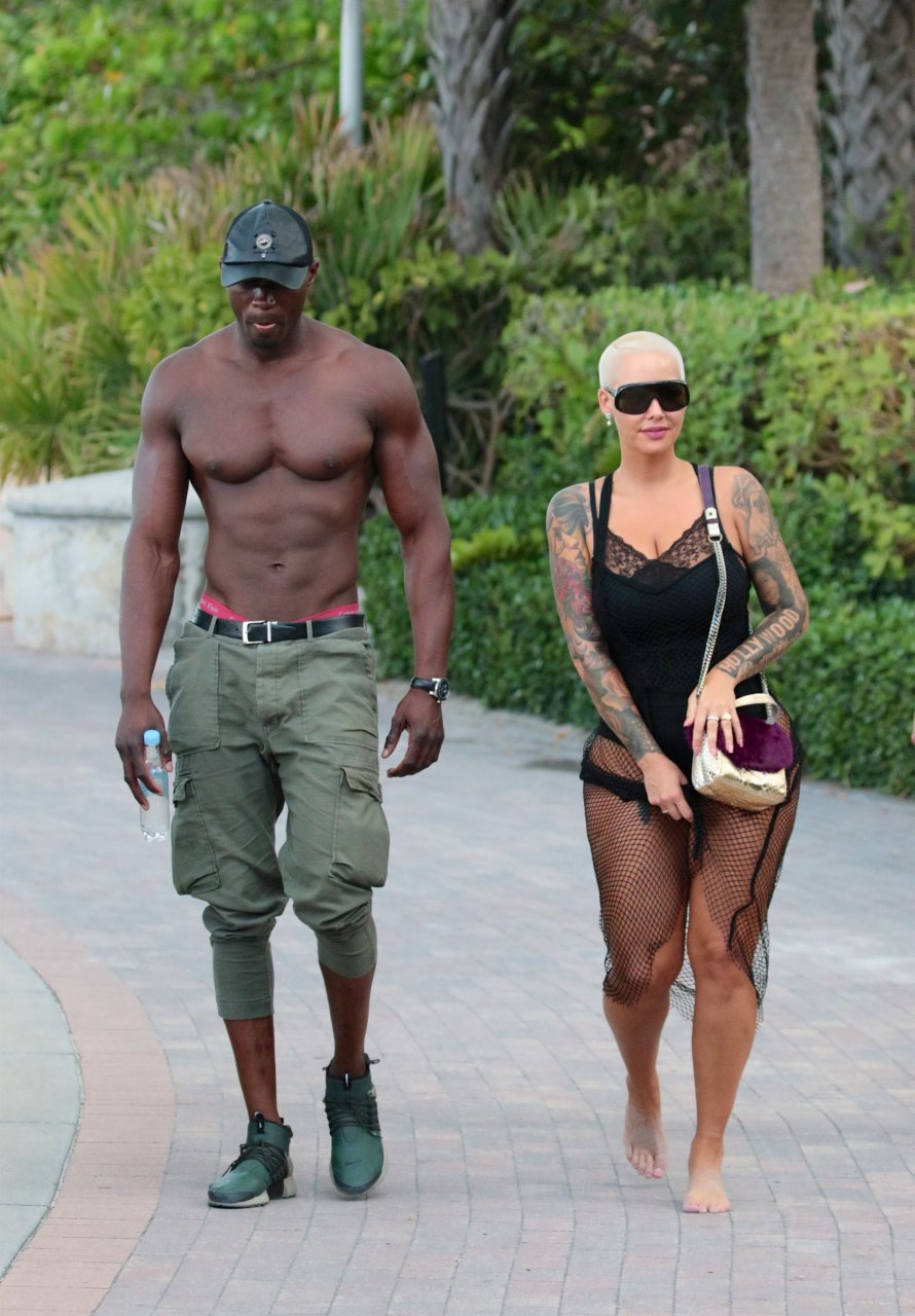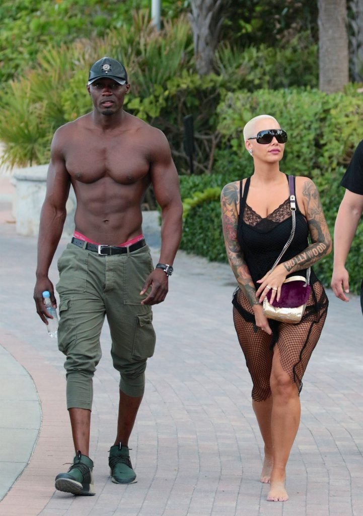 Amber Rose e il suo fidanzato si mostrano affettuosi sulla spiaggia di Miami Beach, 14/05/2017. Amber Levonchuck (Rose) è una modella, rapper e attrice americana (Black-ish (Serie TV), 2015). Età: 33.