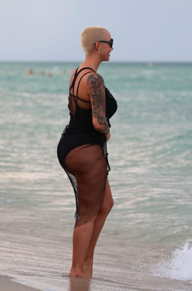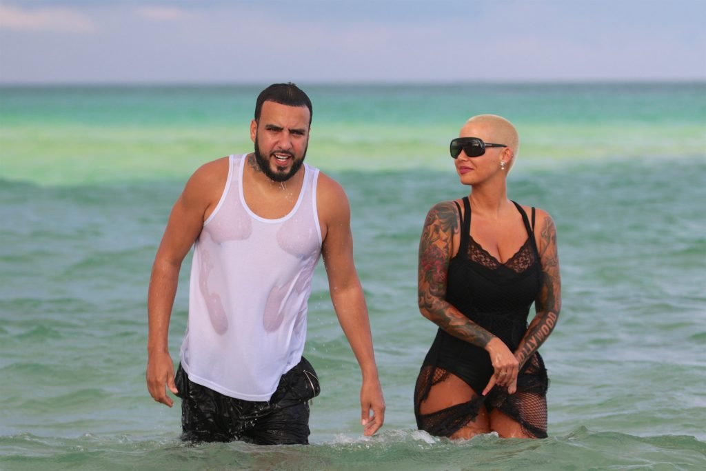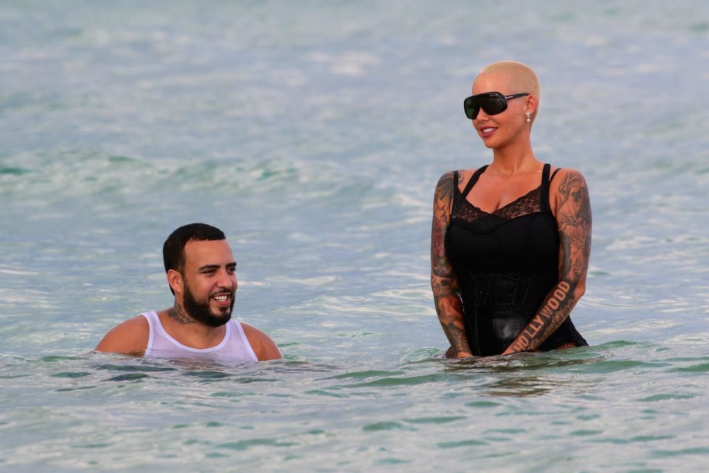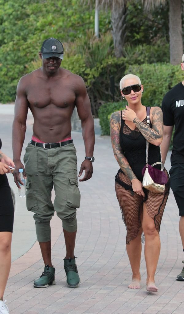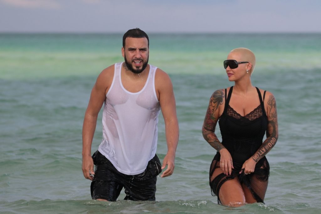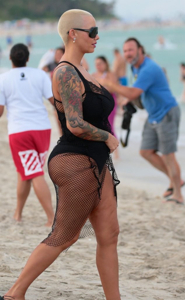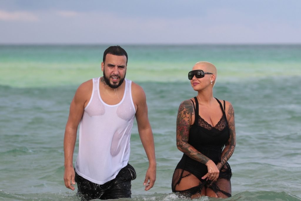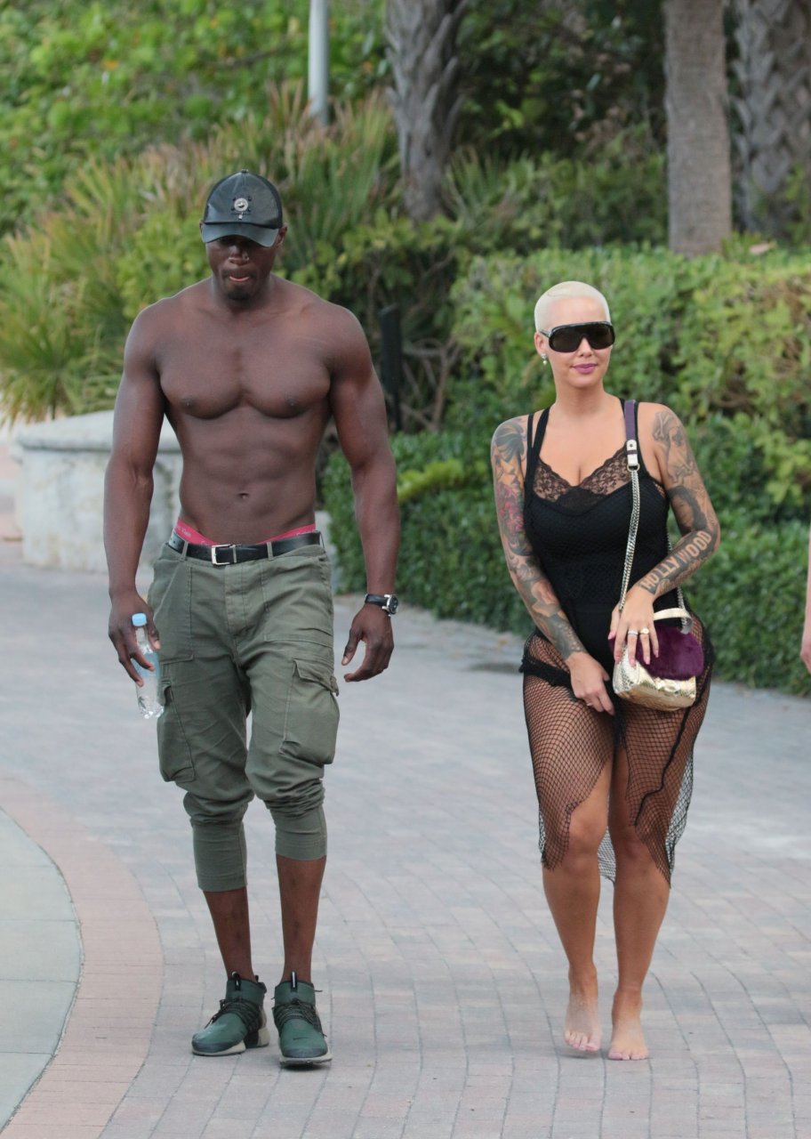 Amber Rose e il suo fidanzato si mostrano affettuosi sulla spiaggia di Miami Beach, 14/05/2017. Amber Levonchuck (Rose) è una modella, rapper e attrice americana (Black-ish (Serie TV), 2015). Età: 33.