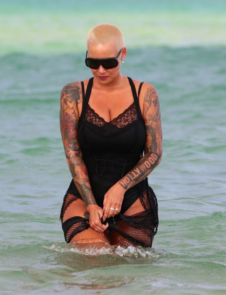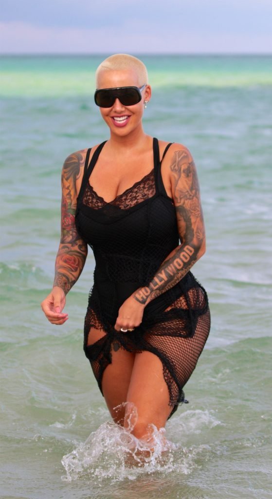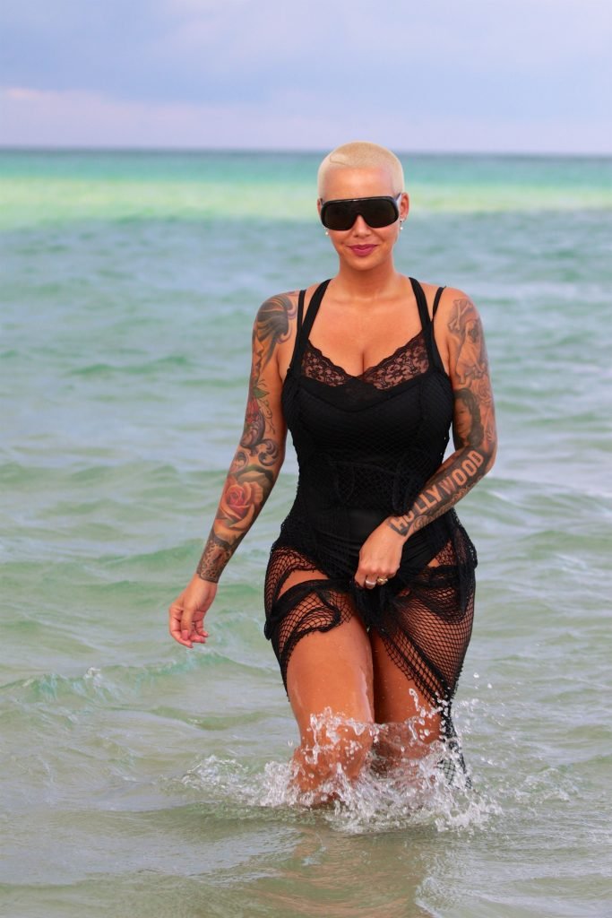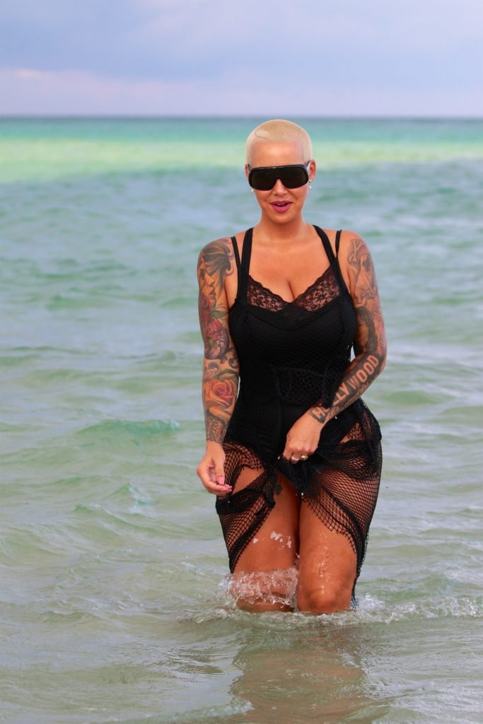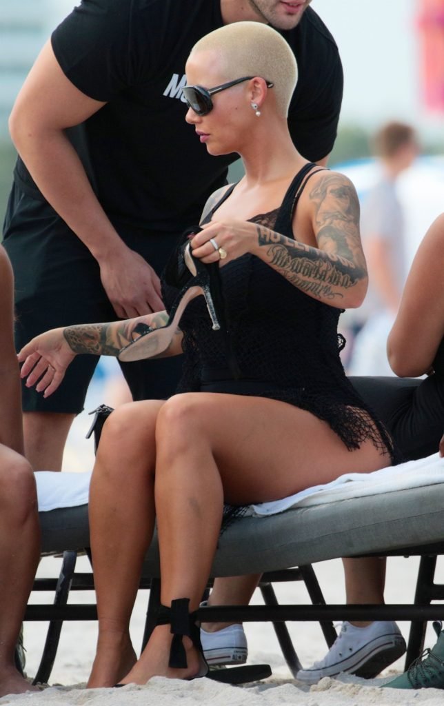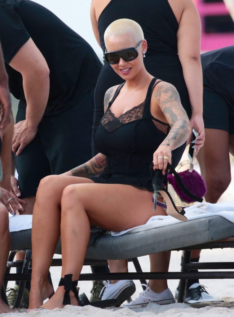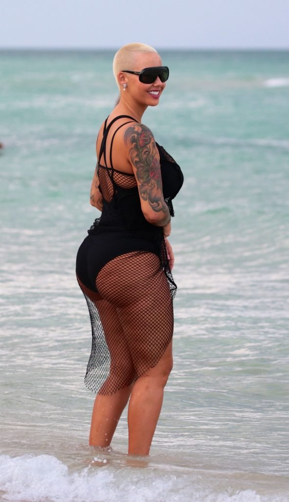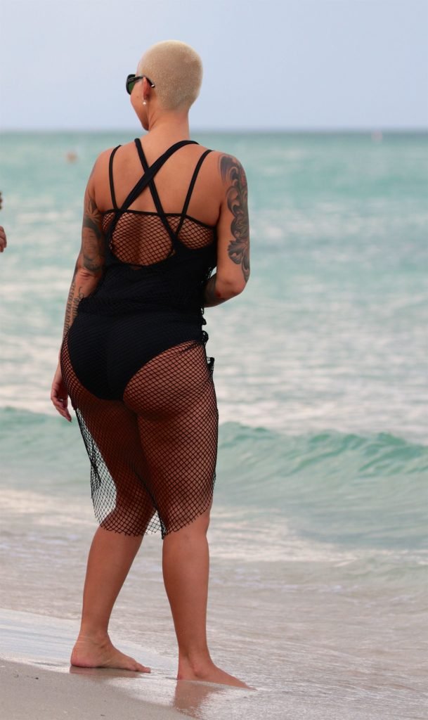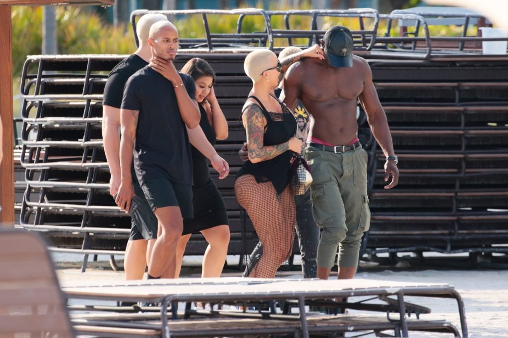 Amber Rose e il suo fidanzato si mostrano affettuosi sulla spiaggia di Miami Beach, 14/05/2017. Amber Levonchuck (Rose) è una modella, rapper e attrice americana (Black-ish (Serie TV), 2015). Età: 33.