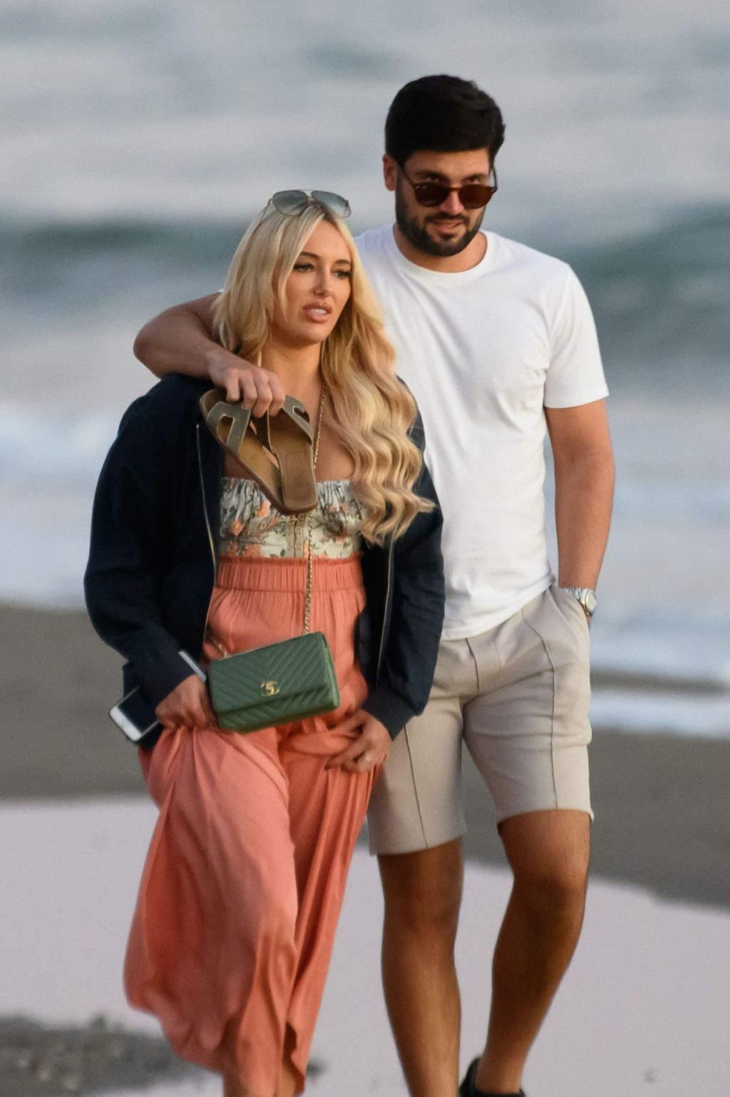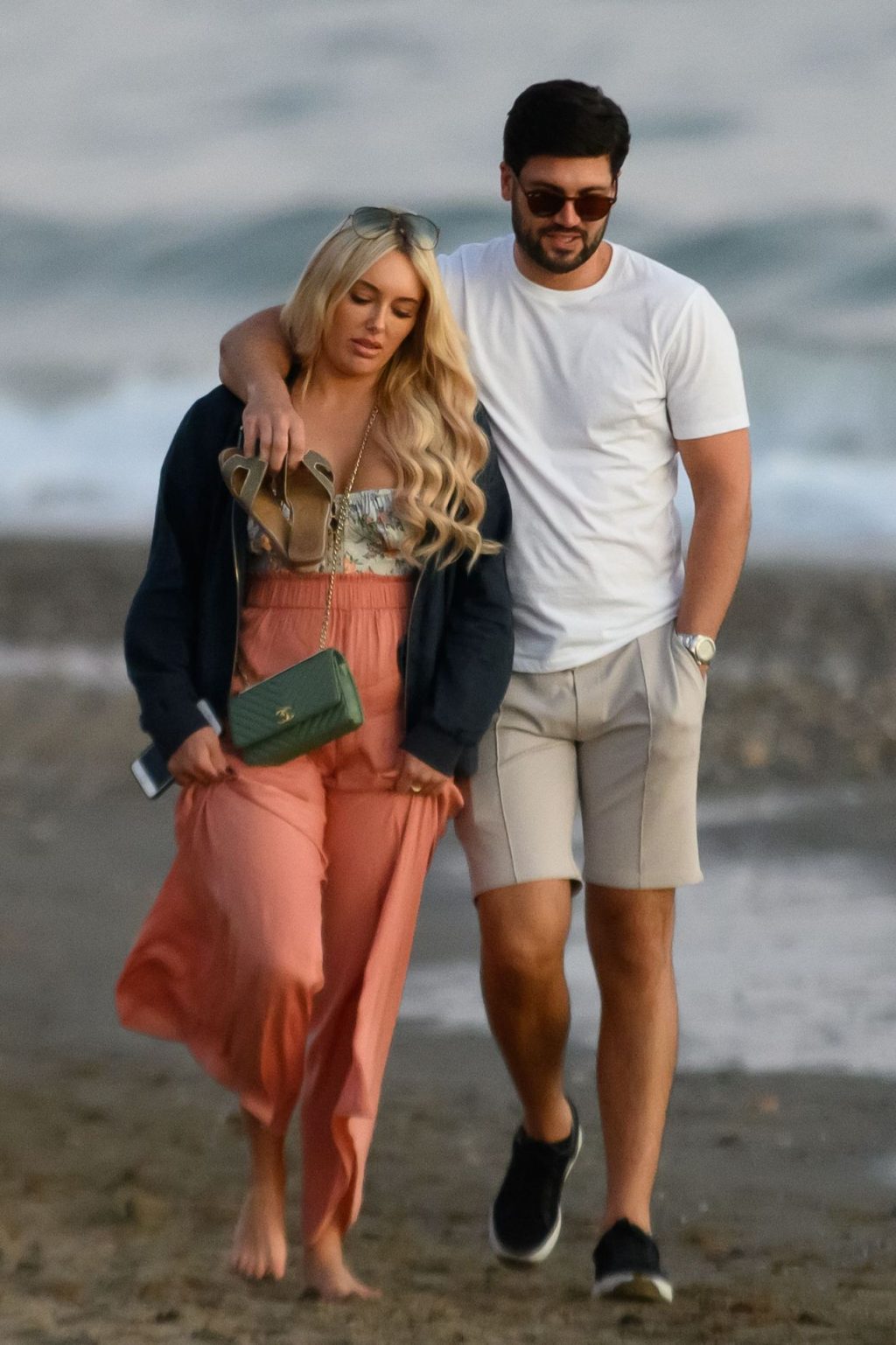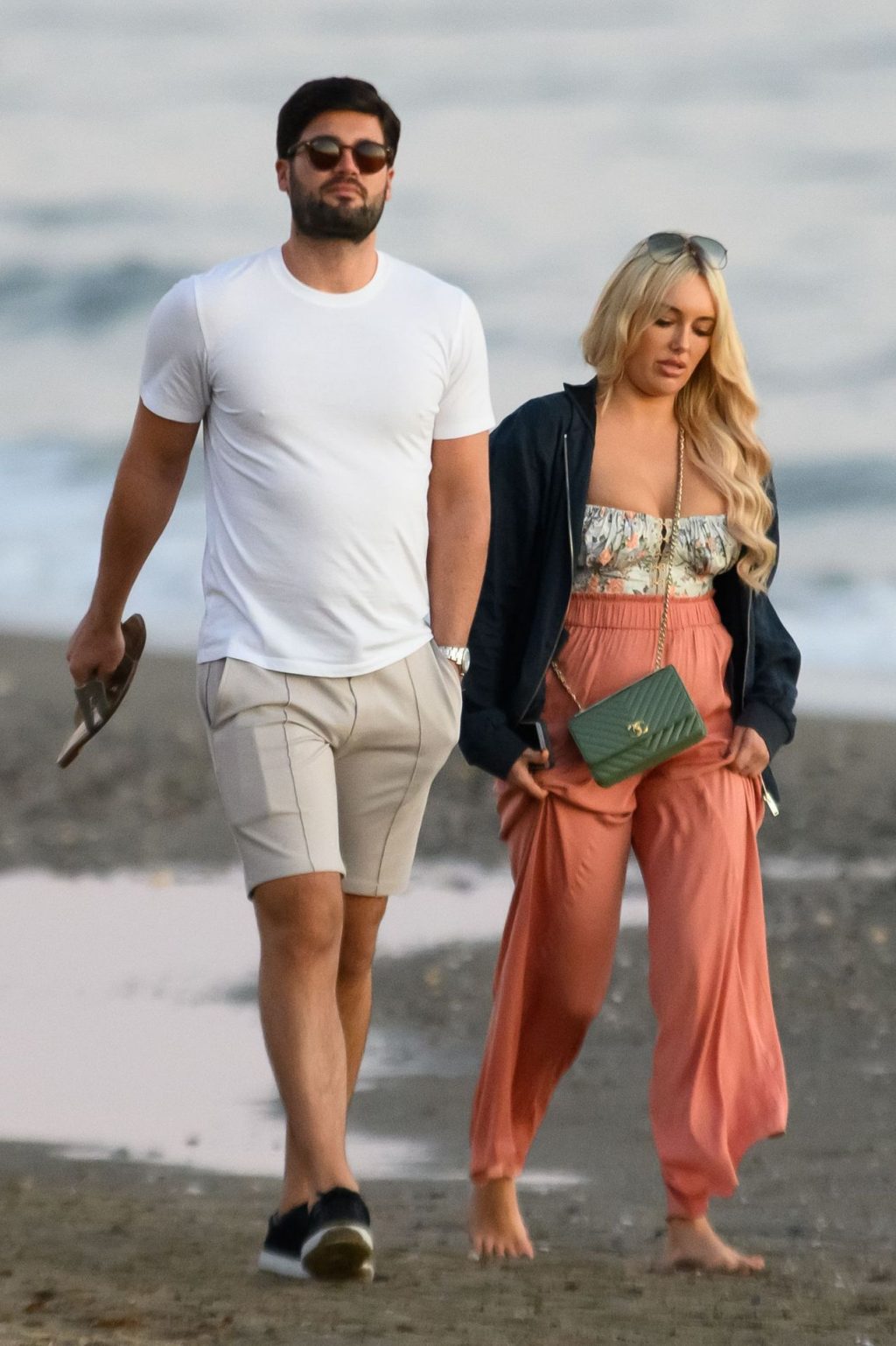 Amber Turner e Dan Edgar si godono gli ultimi giorni dell’anno a Marbella, in Spagna, in compagnia della famiglia di Dan, 29/12/2019. Dopo un piacevole pranzo in un bar sulla spiaggia, dove non si smette di ricevere campioni d’amore e baci, si godono una passeggiata romantica al tramonto.