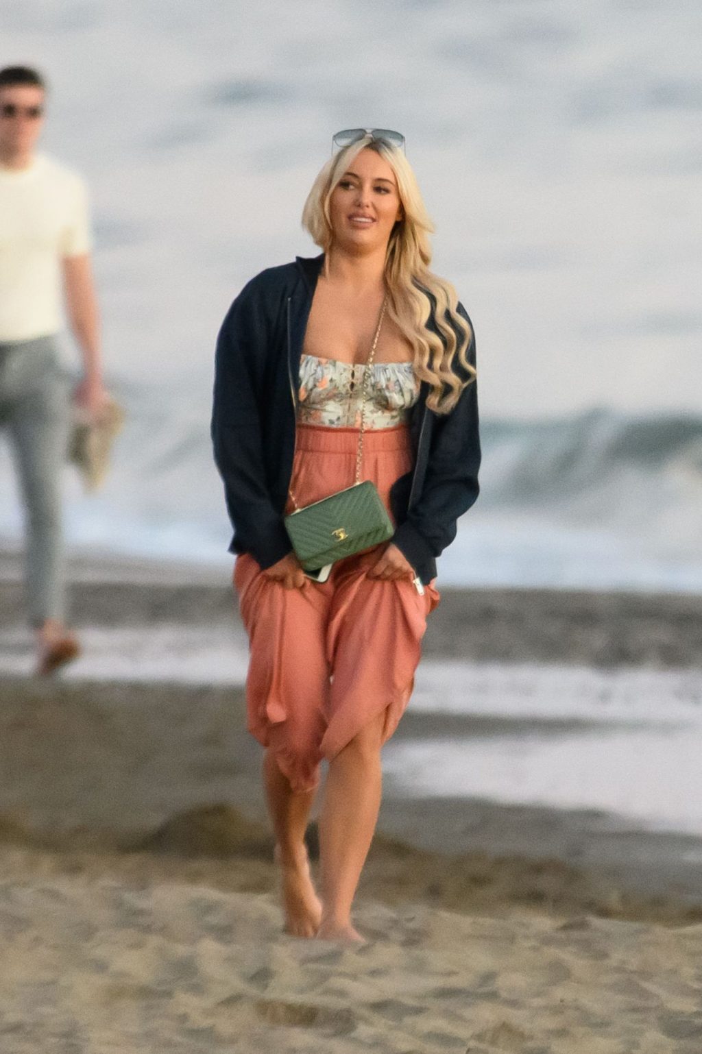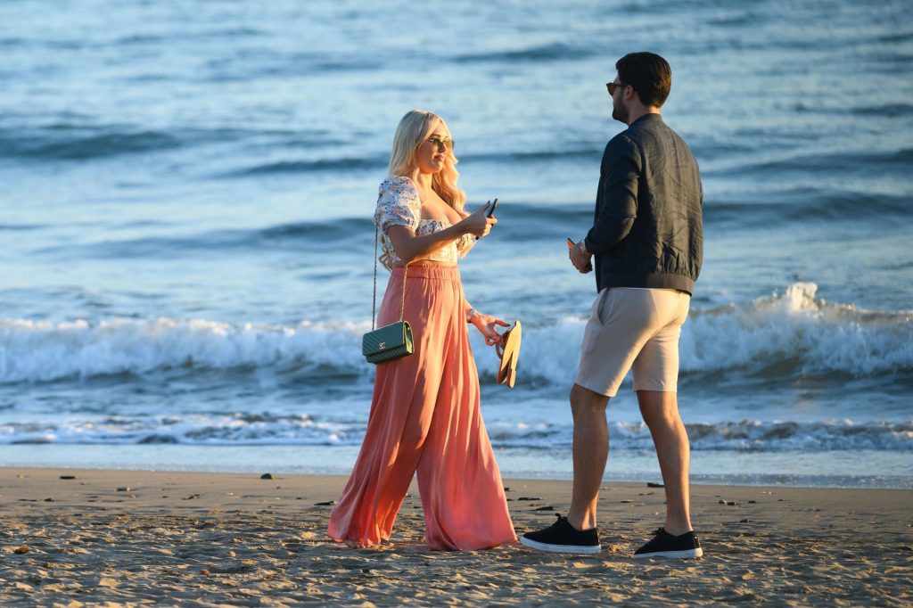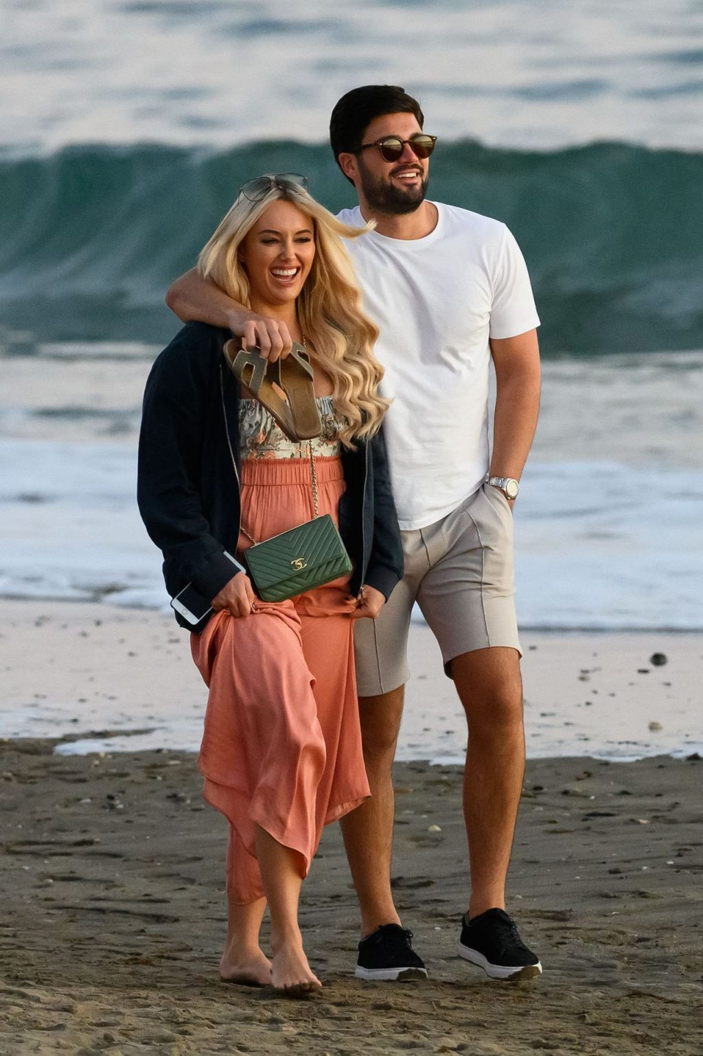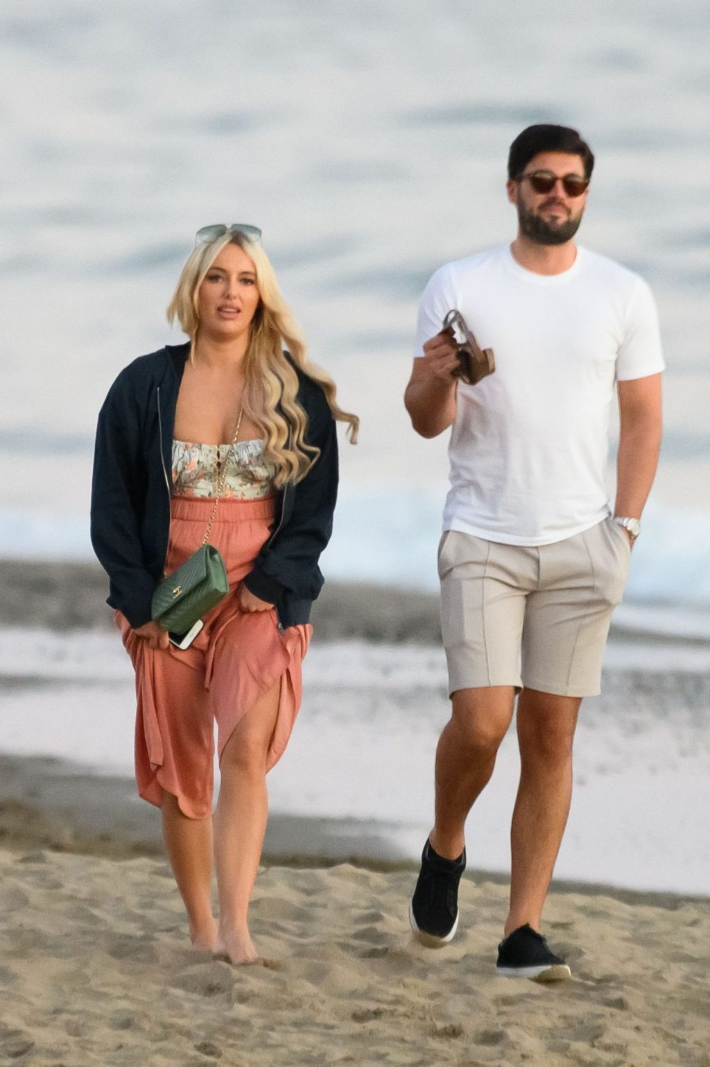 Amber Turner e Dan Edgar si godono gli ultimi giorni dell’anno a Marbella, in Spagna, in compagnia della famiglia di Dan, 29/12/2019. Dopo un piacevole pranzo in un bar sulla spiaggia, dove non si smette di ricevere campioni d’amore e baci, si godono una passeggiata romantica al tramonto.