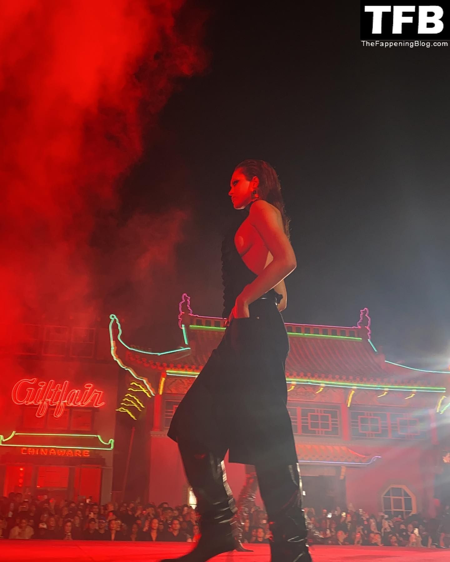La modella Amelia Gray Hamlin sfila durante la sfilata Alexander Wang “Fortune City” a Los Angeles, 19/04/2022.