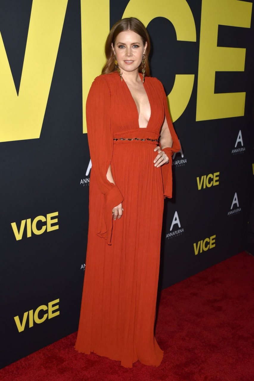 Amy Adams è stata vista alla prima mondiale del film “Vice” a Beverly Hills, 11/12/2018. L’attrice, che ha interpretato la moglie del vicepresidente degli USA, Dick Cheney, è apparsa all’evento con un lussuoso abito rosso con una profonda scollatura, che quasi rivelava il suo magnifico décolleté.
