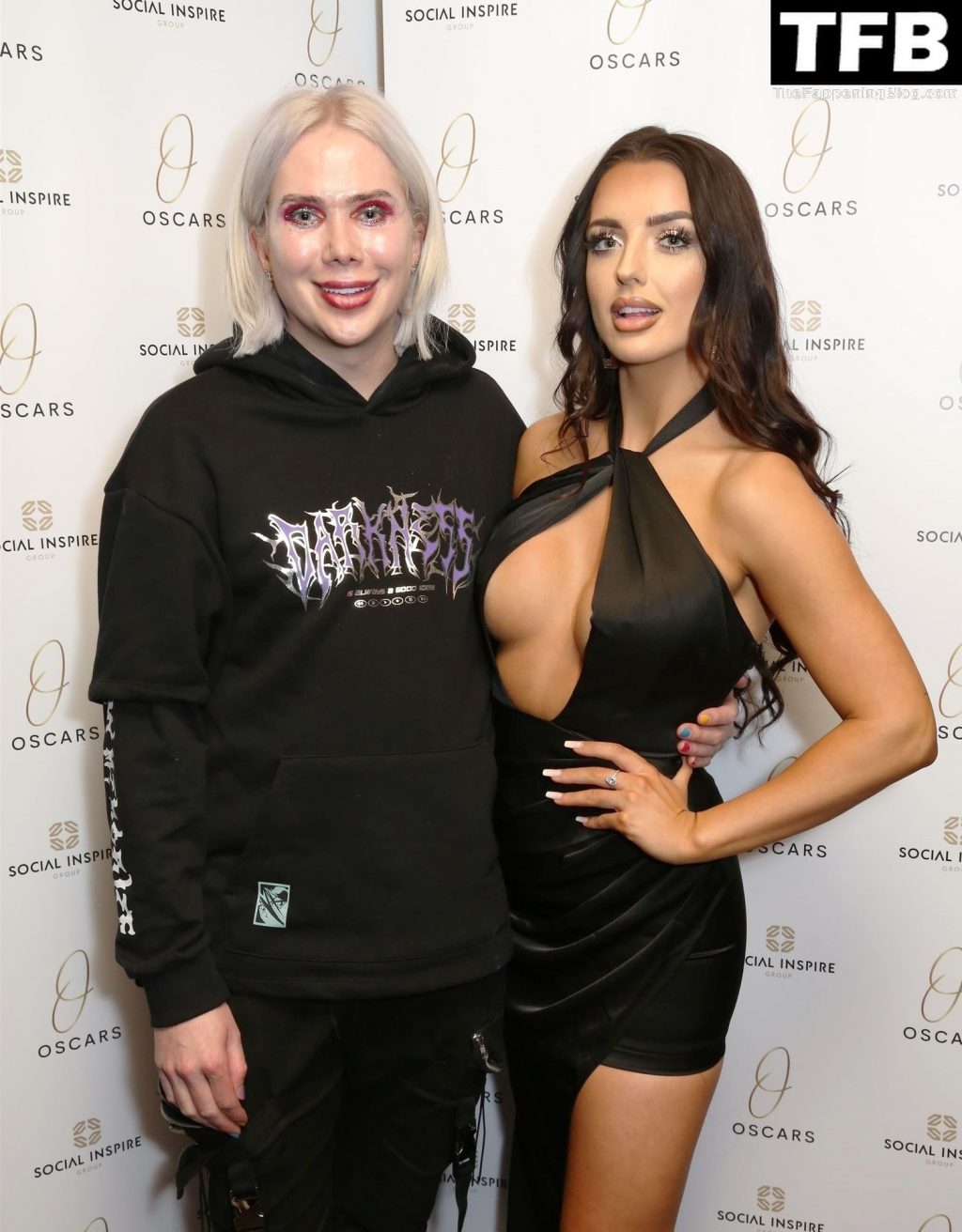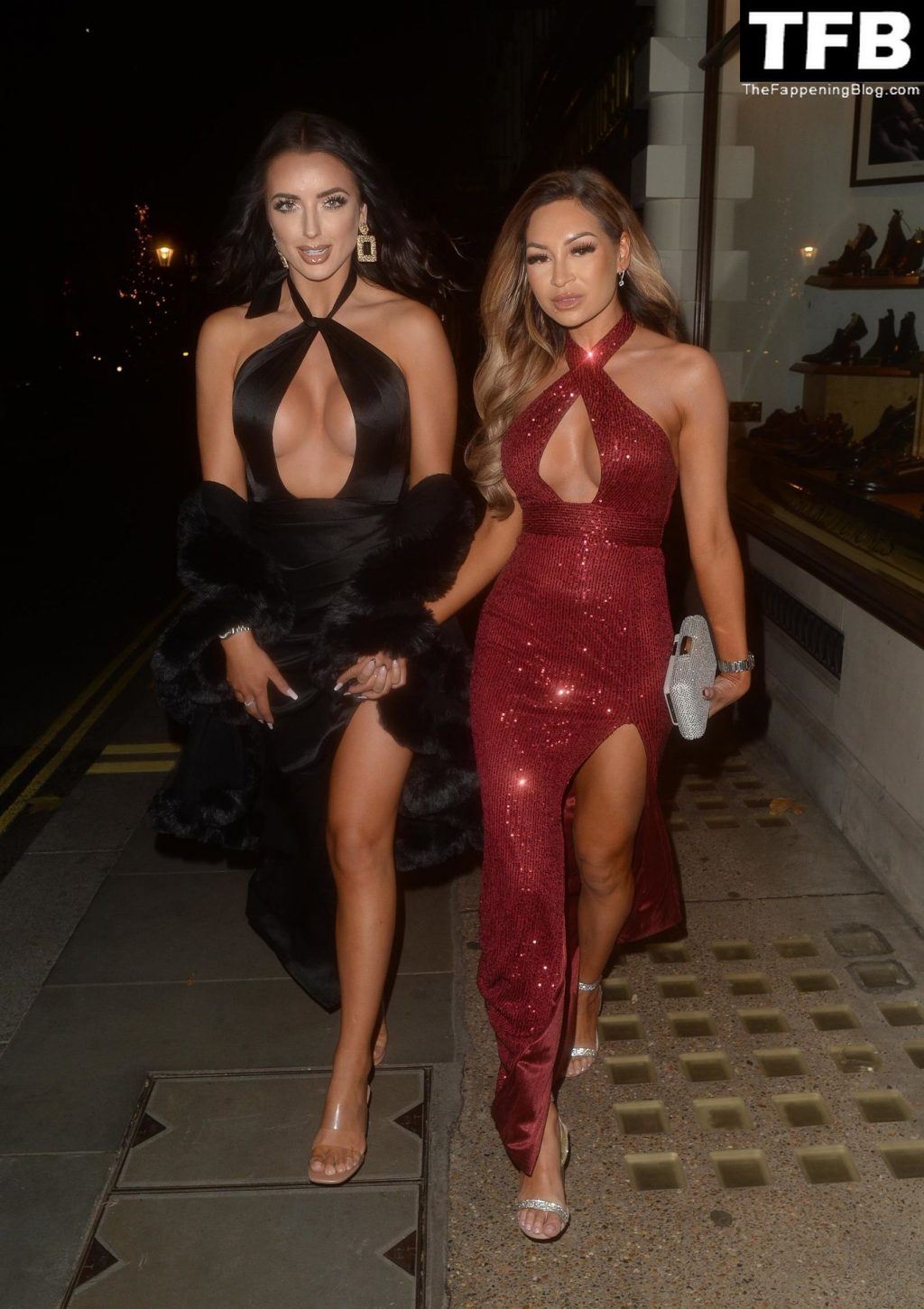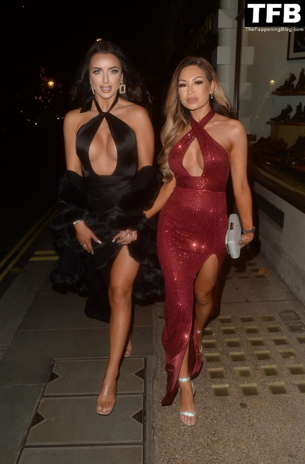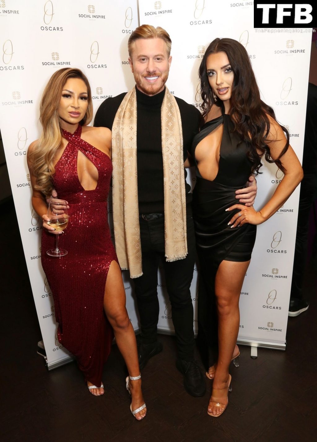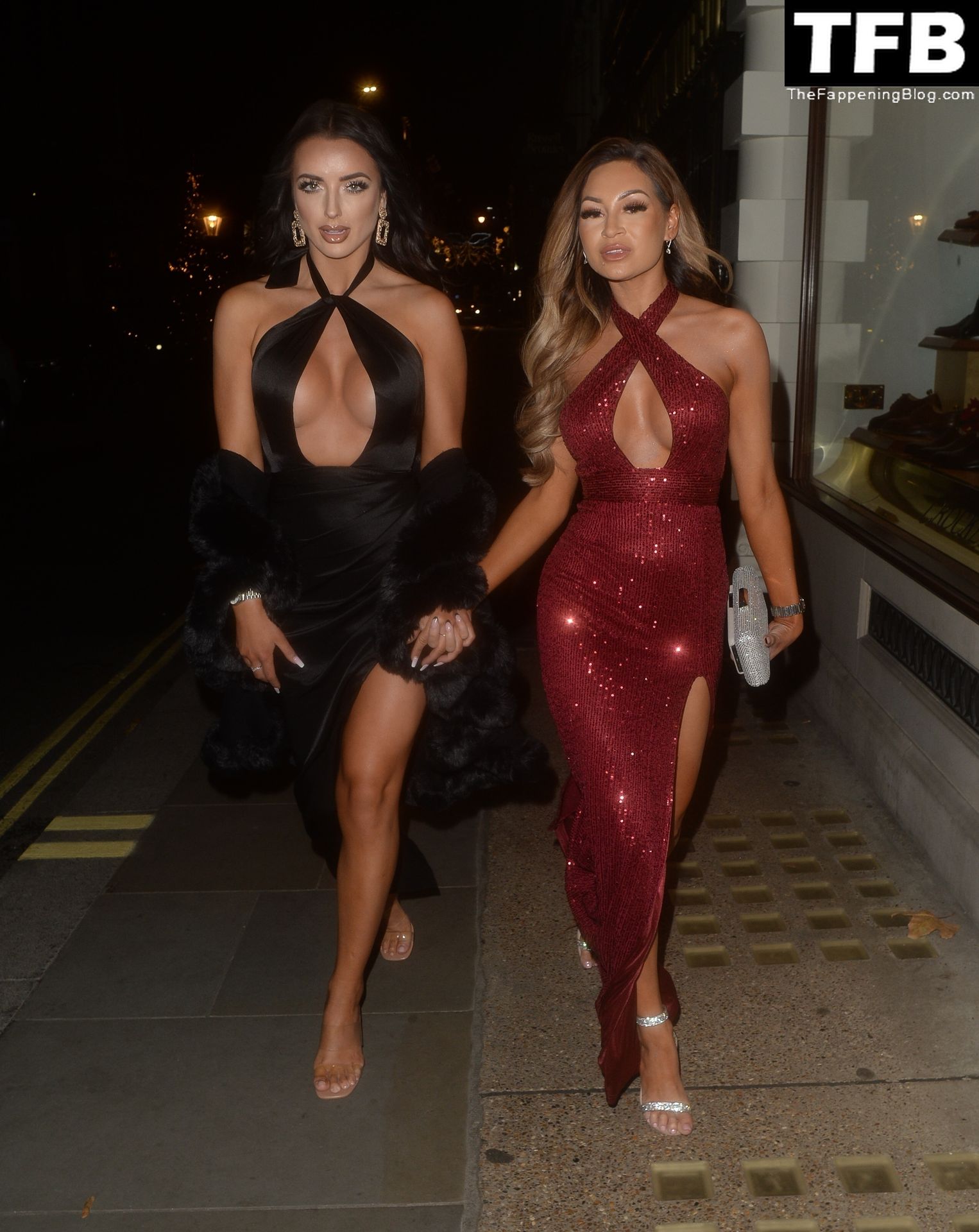 Reality TV stars Aj Bunker e Amy Day partecipano a una festa di compleanno a Londra, 12/04/2021. Amy stupisce con il suo grande seno rifatto, indossando un vestito nero.