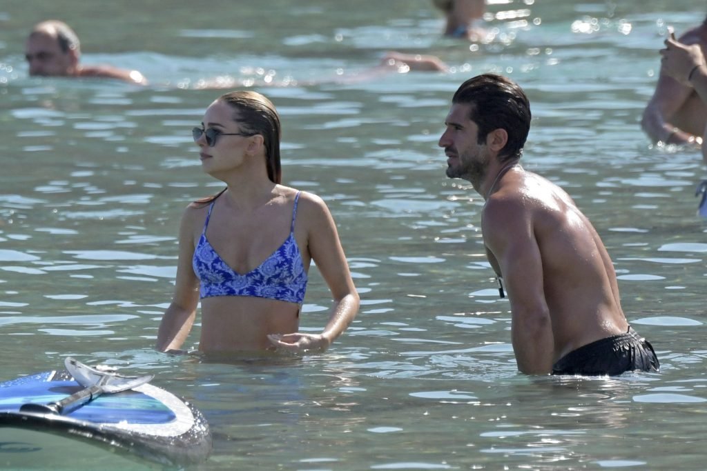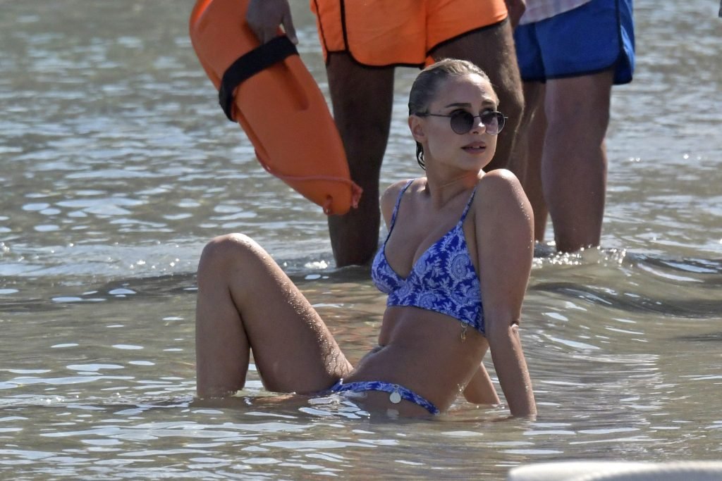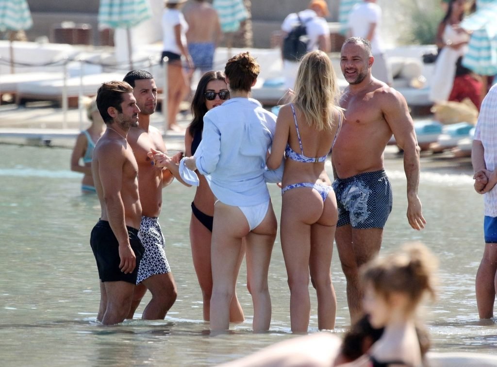 Amy Jackson, Kimberley Garner sono state viste in spiaggia durante una vacanza con Alice Jeffrey e altri amici in Grecia, 13/06/2018.