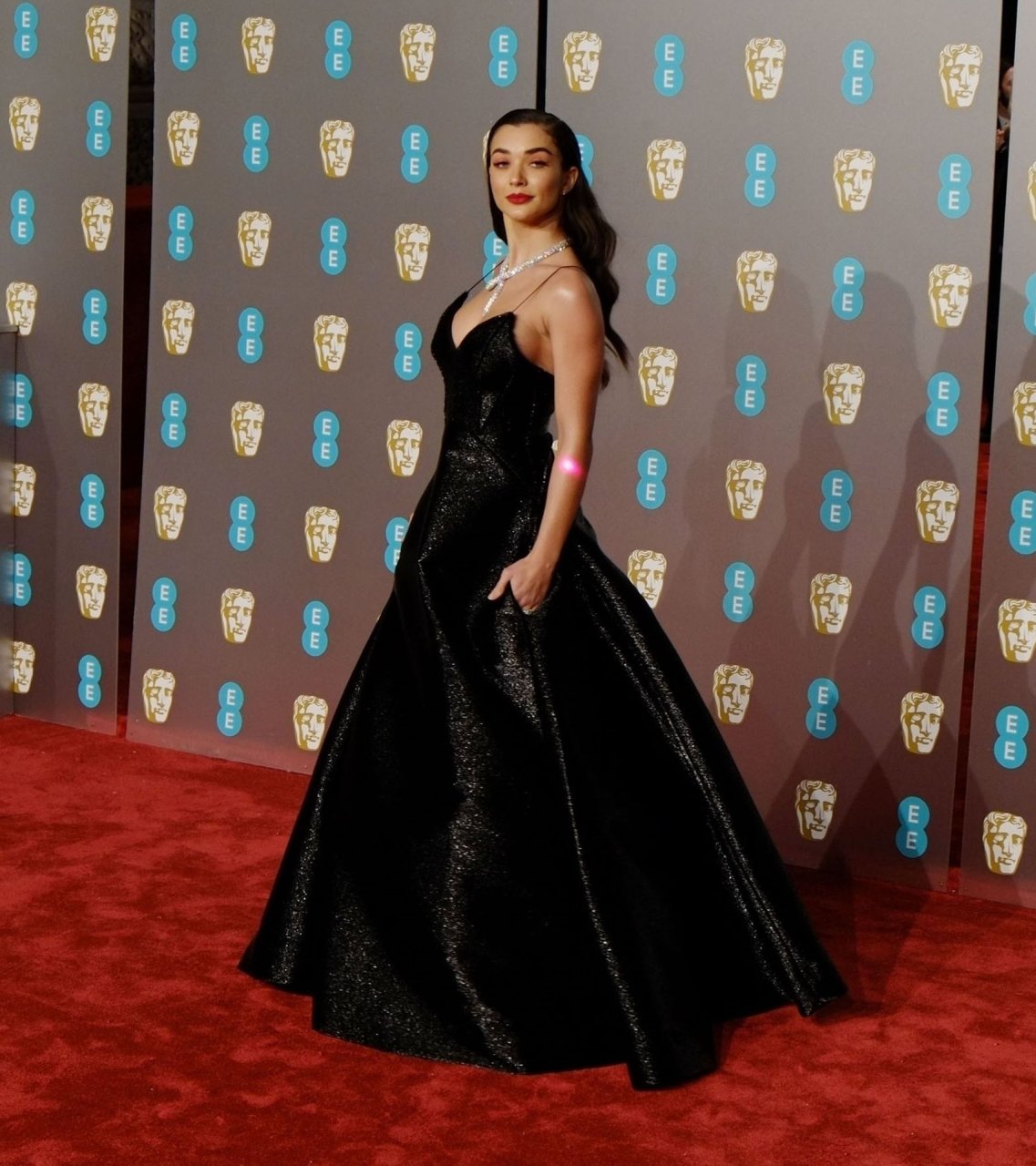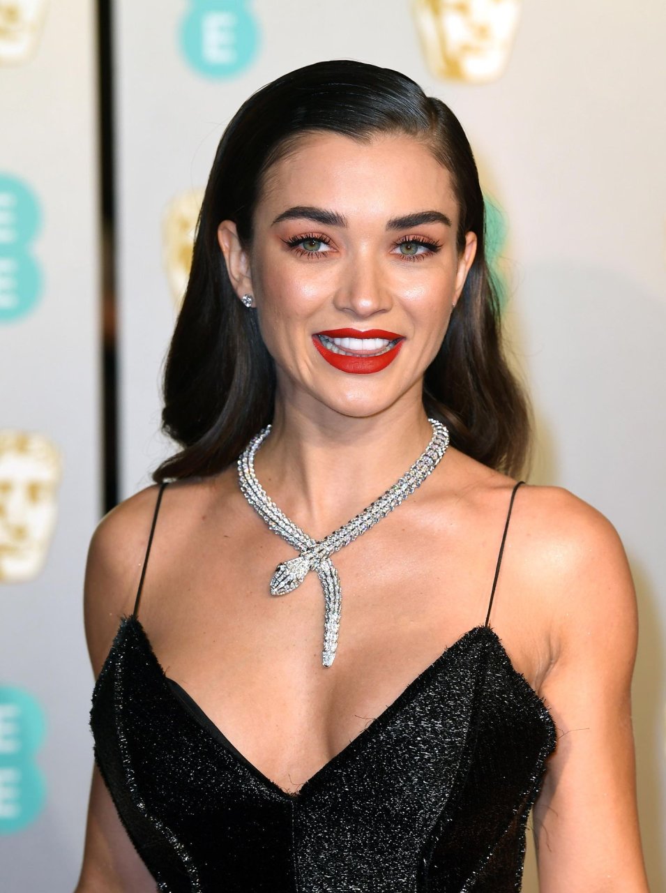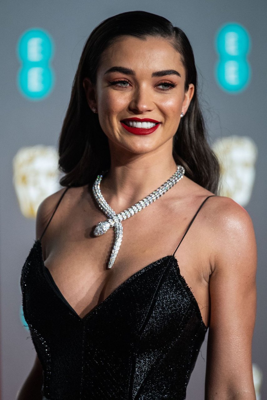 La top model e attrice inglese Amy Jackson ha sorpreso tutti sul tappeto rosso indossando un vestito stupendo agli EE British Academy Film Awards a Londra, 02/10/2019.