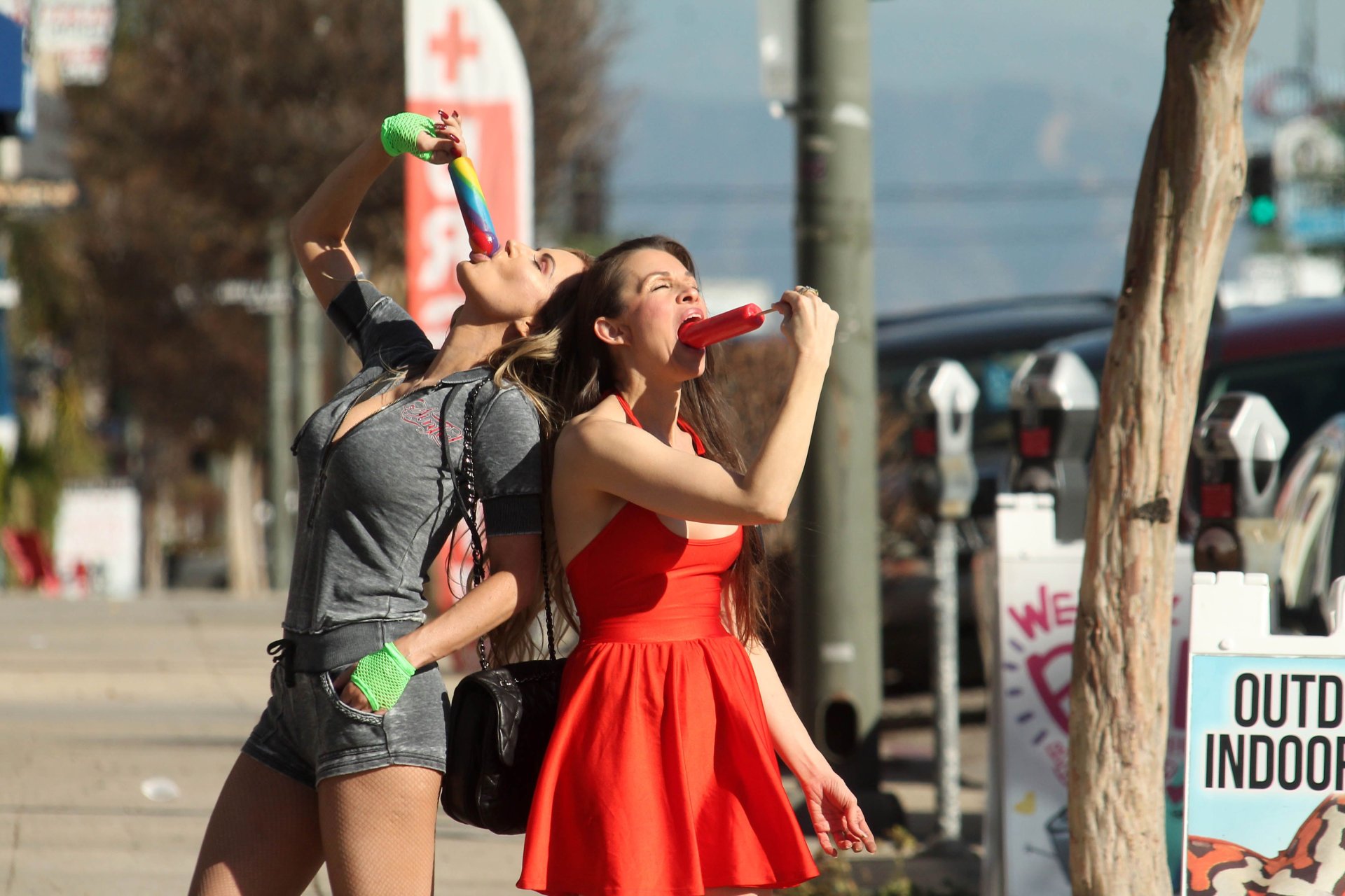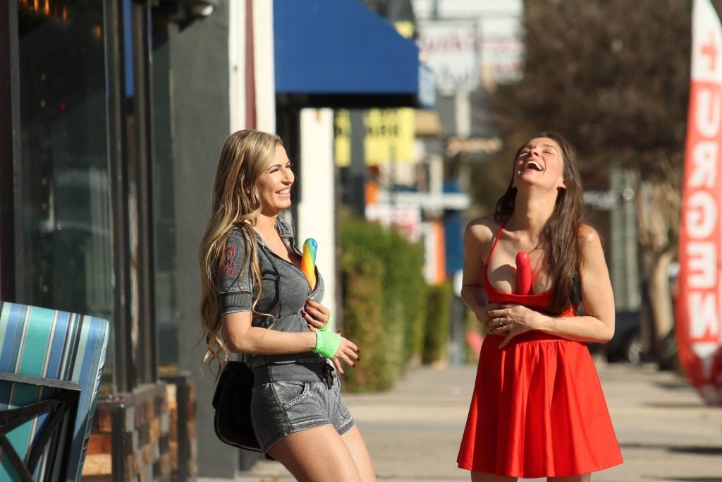 Brazilian Playmate Ana Braga e l’attrice di “Baywatch” Alicia Arden si mostrano ai paparazzi mentre vengono sorprese a uscire da una boutique erotica, gustando le lecca-lecca che hanno acquistato a Studio City, 22/01/2018.