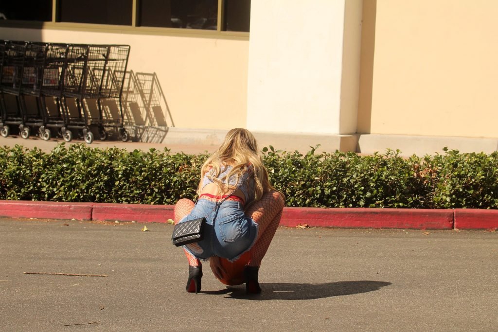 Ho un paio di calze a rete proprio come lei. Sembra far impazzire i miei uomini. Scommetto che le mie vengono strappate dal mio corpo più spesso delle sue. Dico però che dovrei probabilmente radermi le gambe più spesso quando indosso le calze a rete, perché i peli tendono ad aggrovigliarsi. Un consiglio ai miei fratelli che indossano calze a rete: penzolare va bene, ma aggrovigliarsi no.