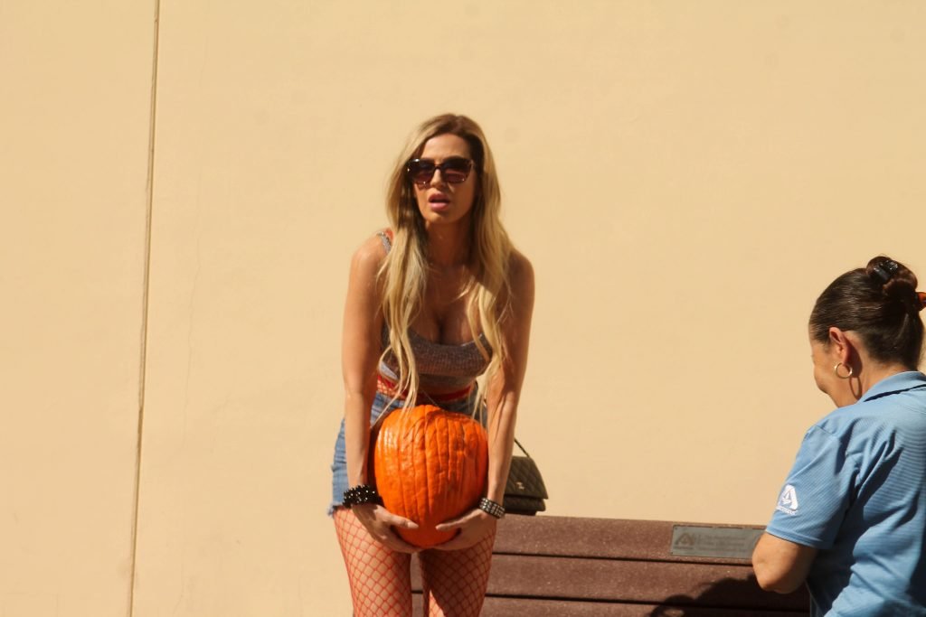 La Playmate brasiliana di 35 anni è stata vista avere difficoltà a portare la sua zucca del Ringraziamento fuori dal supermercato a Calabasas, 20/11/2017.