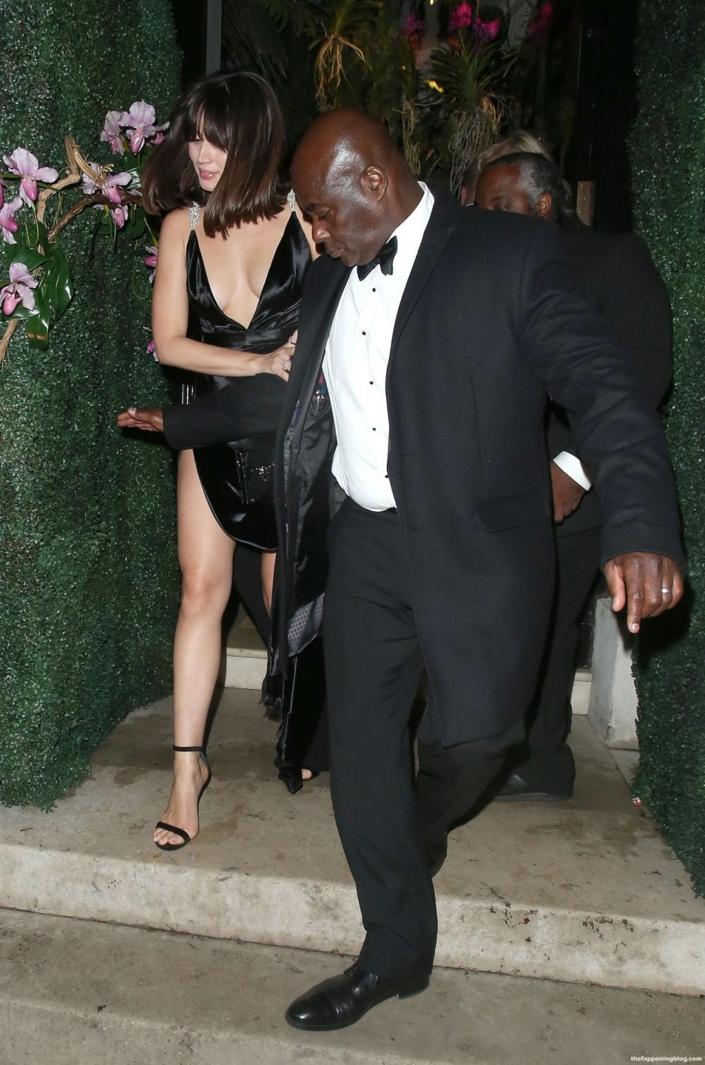 È stata trattenuta dalla sua guardia del corpo mentre stava per cadere giù da una scala uscendo dal club privato Annabel’s indossando il suo rivelatore abito nero LBD.