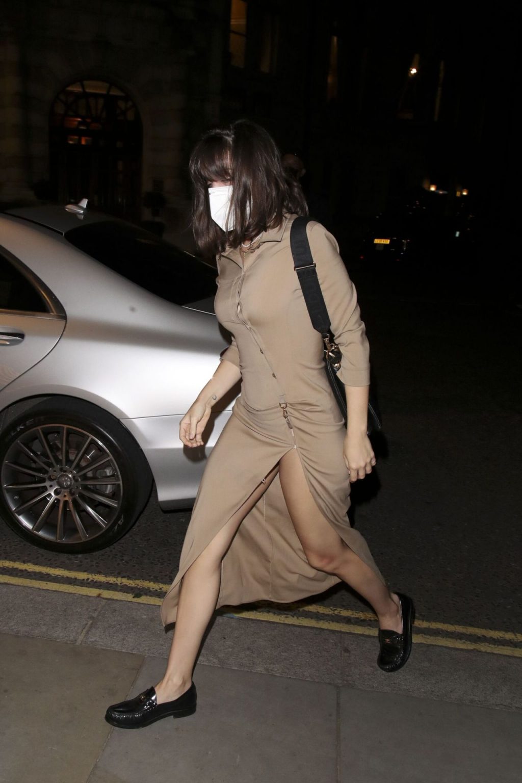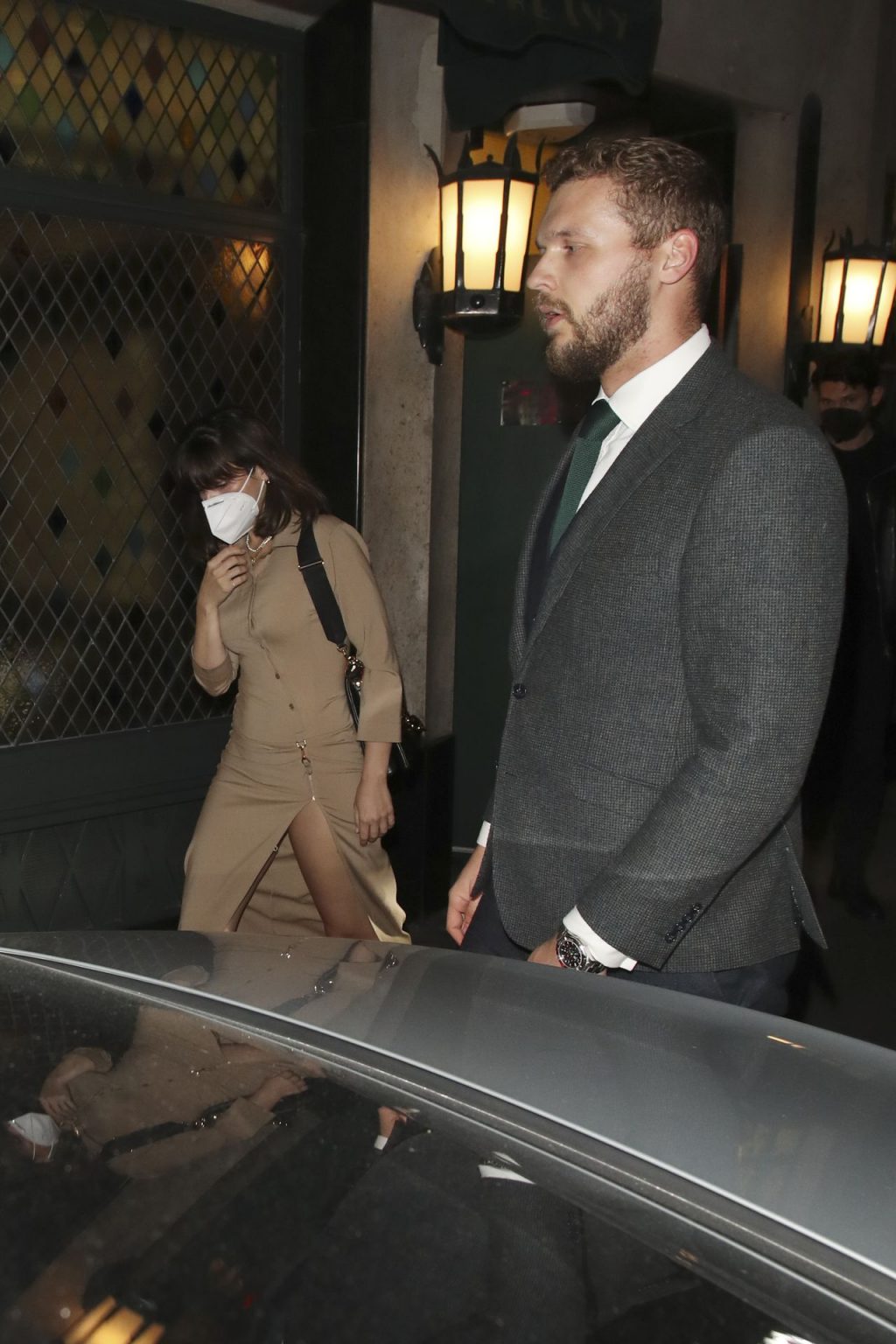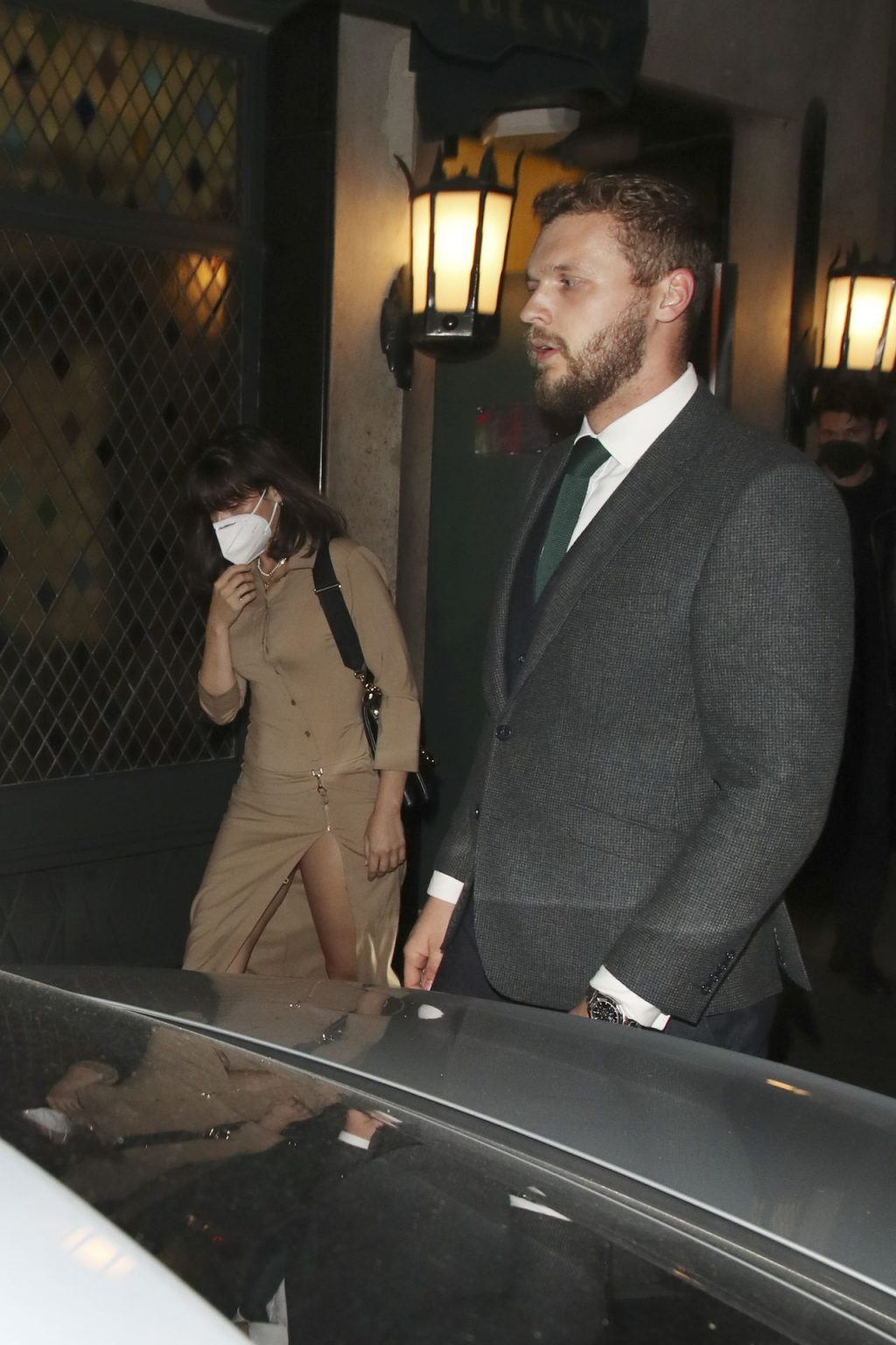 L’attrice Ana de Armas e Paul Boukadakis sono stati visti al The Ivy a Londra, 28/09/2021. Sembra incredibile in un vestito midi beige che lascia intravedere la coscia.