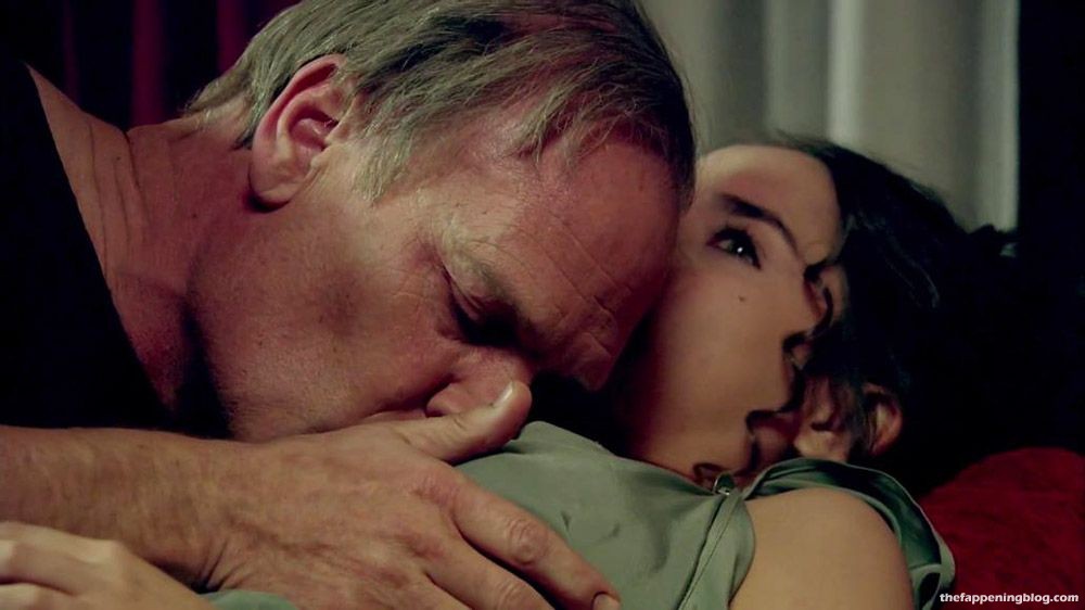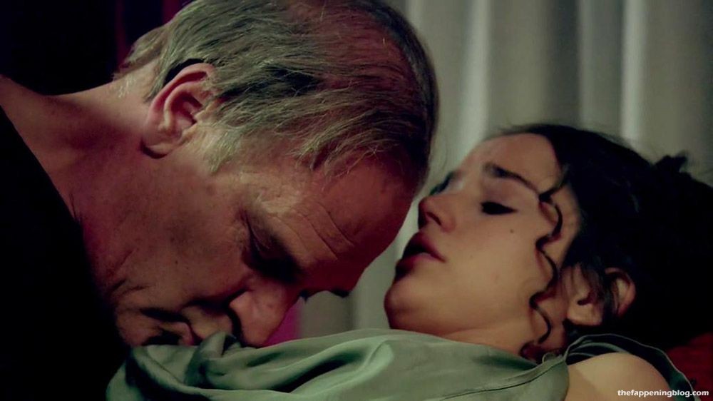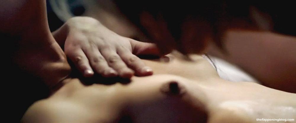 Then we have one of the most popular Ana de Armas’s nude scenes. She is kneeling in a bathtub naked with soapy breasts. Lorenza Izzo stands nearby, and the two girls talk to a guy. The girls then approach him and reach between his legs as they seduce him. They then kneel in front of him to suck his cock. Finally, we see them in a threesome in the shower, the girls having their boobs and asses pressed against the glass door. The sex continues in bed.
