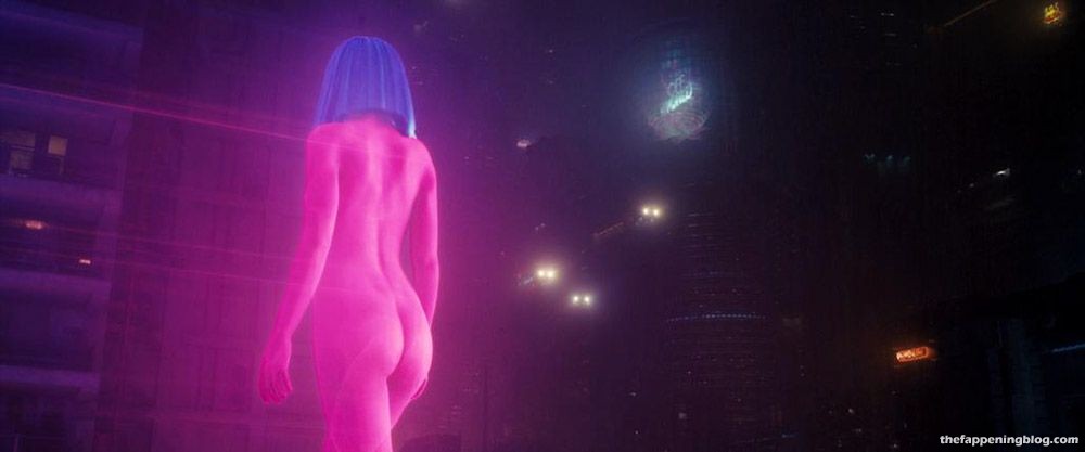 Ana de Armas then appeared in sci-fi as the naked giant hologram. She shows her bare butt and boobs as she is projected from a building, and a guy walks by stops to talk to her.