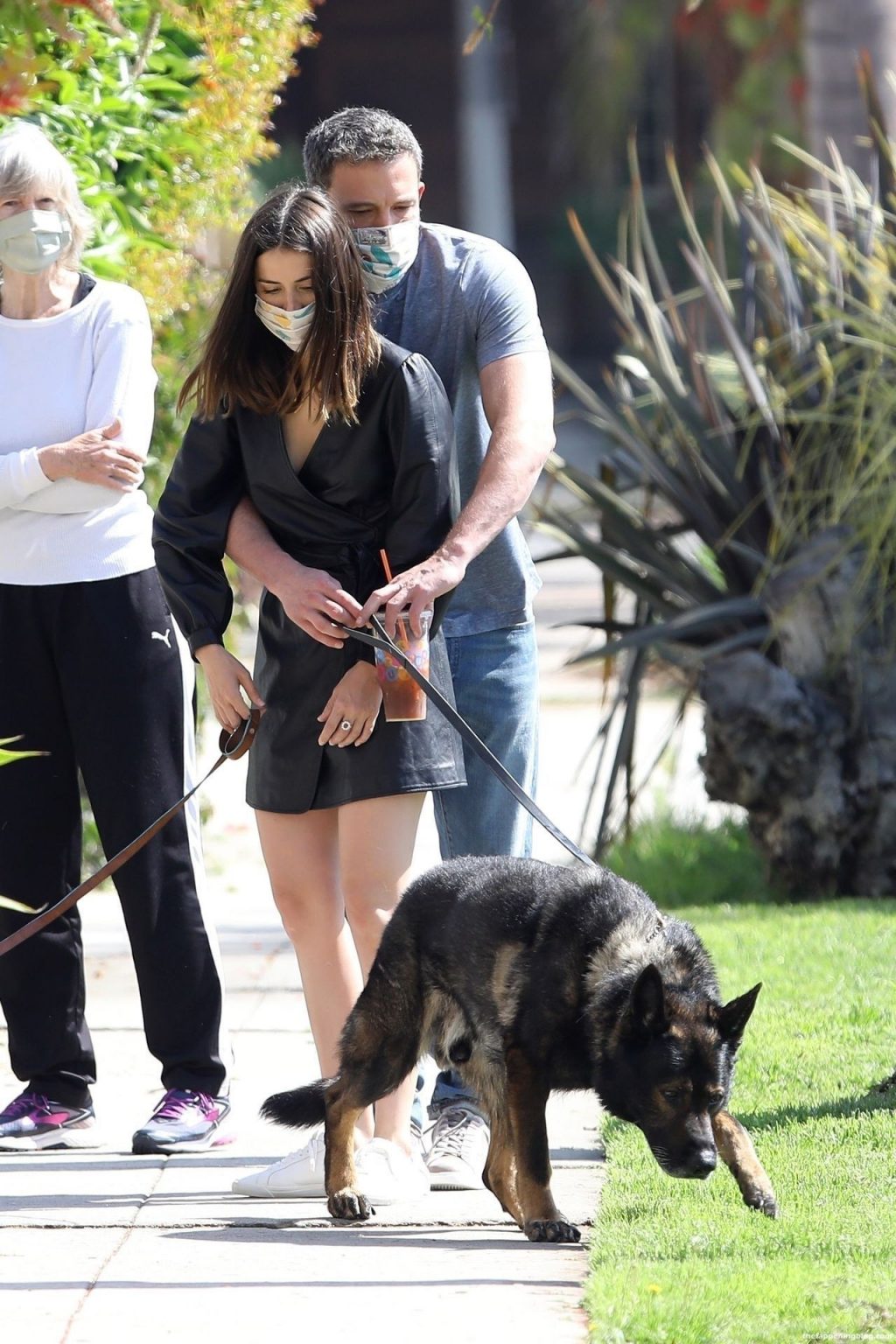 Check this out, guys! Here are a few photos of this hot brunette that some sneaky paparazzi caught while Ana de Armas took her dog for a walk! Ana de Armas arrives with her dog at Ben Affleck’s house in Brentwood, Los Angeles. Ana looks cute and relaxed in baggy jeans and a thin white shirt for her visit to her now ex-boyfriend. Ana de Armas pokies were visible through that top! Because, as usual, she wasn’t wearing a bra!