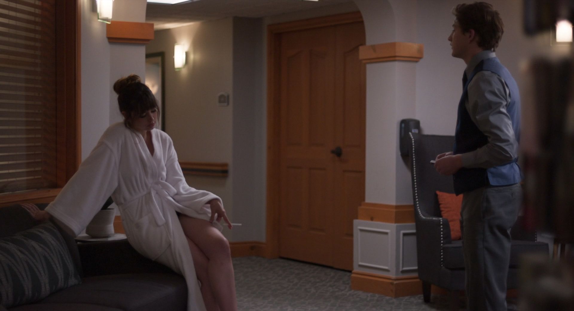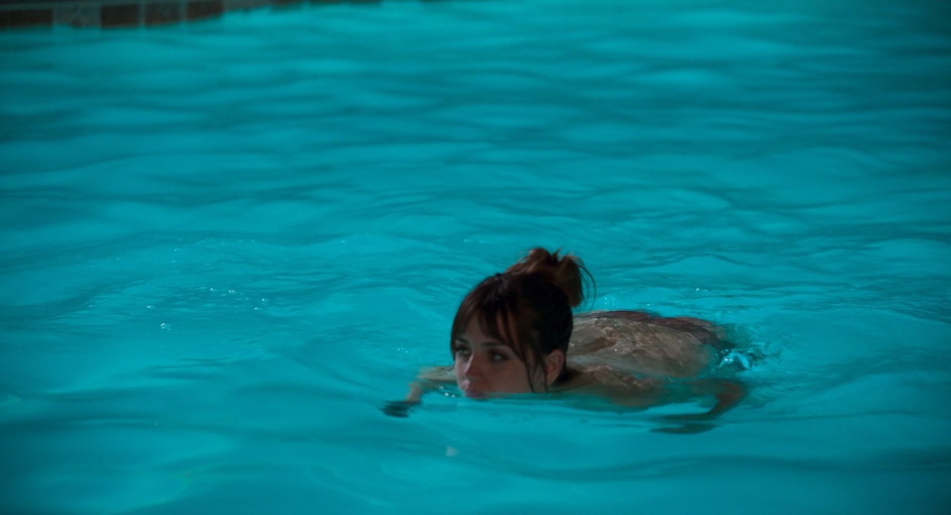 Nella scena più interessante, Ana de Armas nuota a seno nudo nella piscina, mostrando il petto mentre inizia a uscire dalla piscina prima di notare un ragazzo in piedi sul bordo con un asciugamano in mano. Poi chiude le braccia sui seni per un po’, quindi le abbassa e si alza per avvolgersi in un asciugamano.