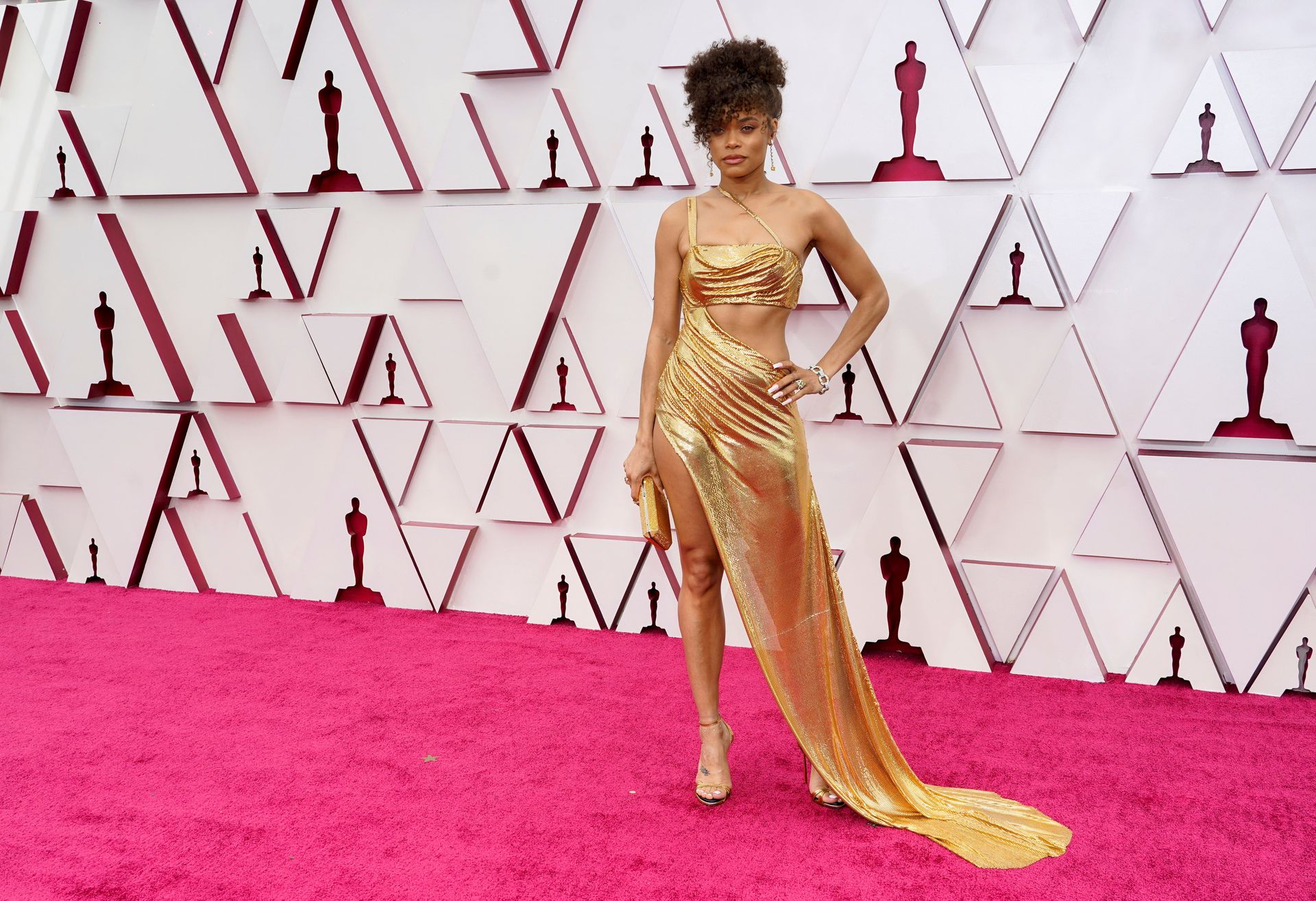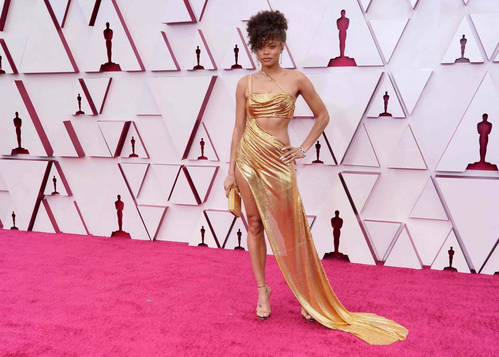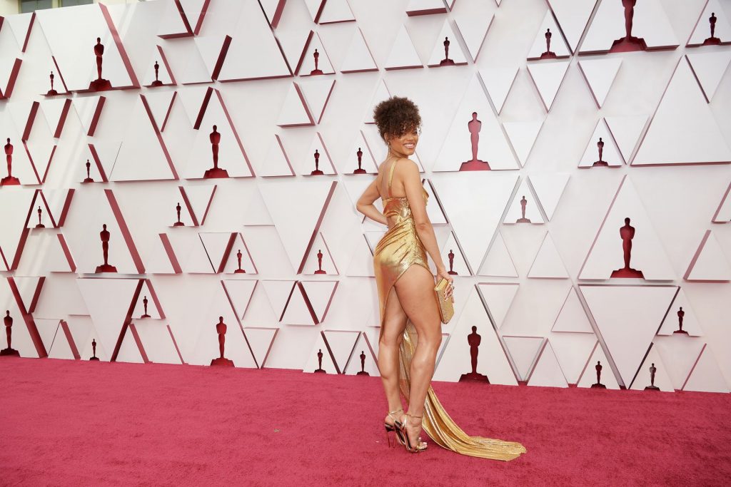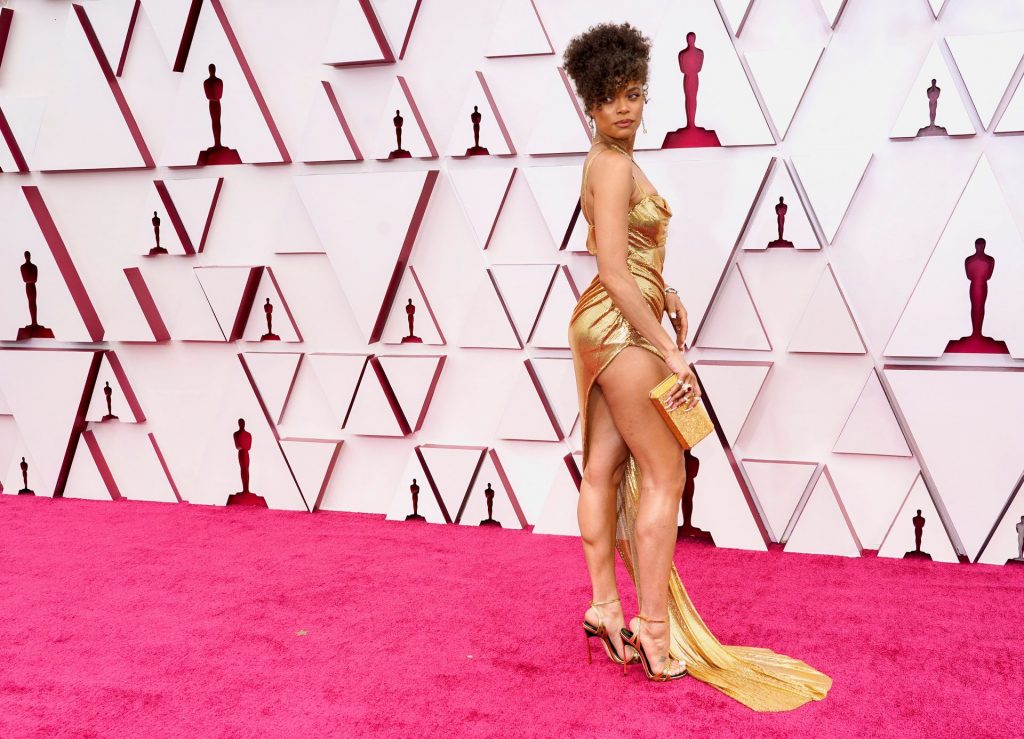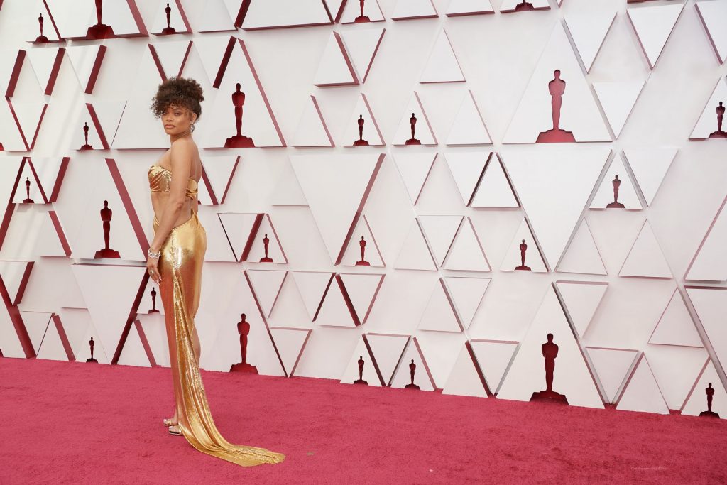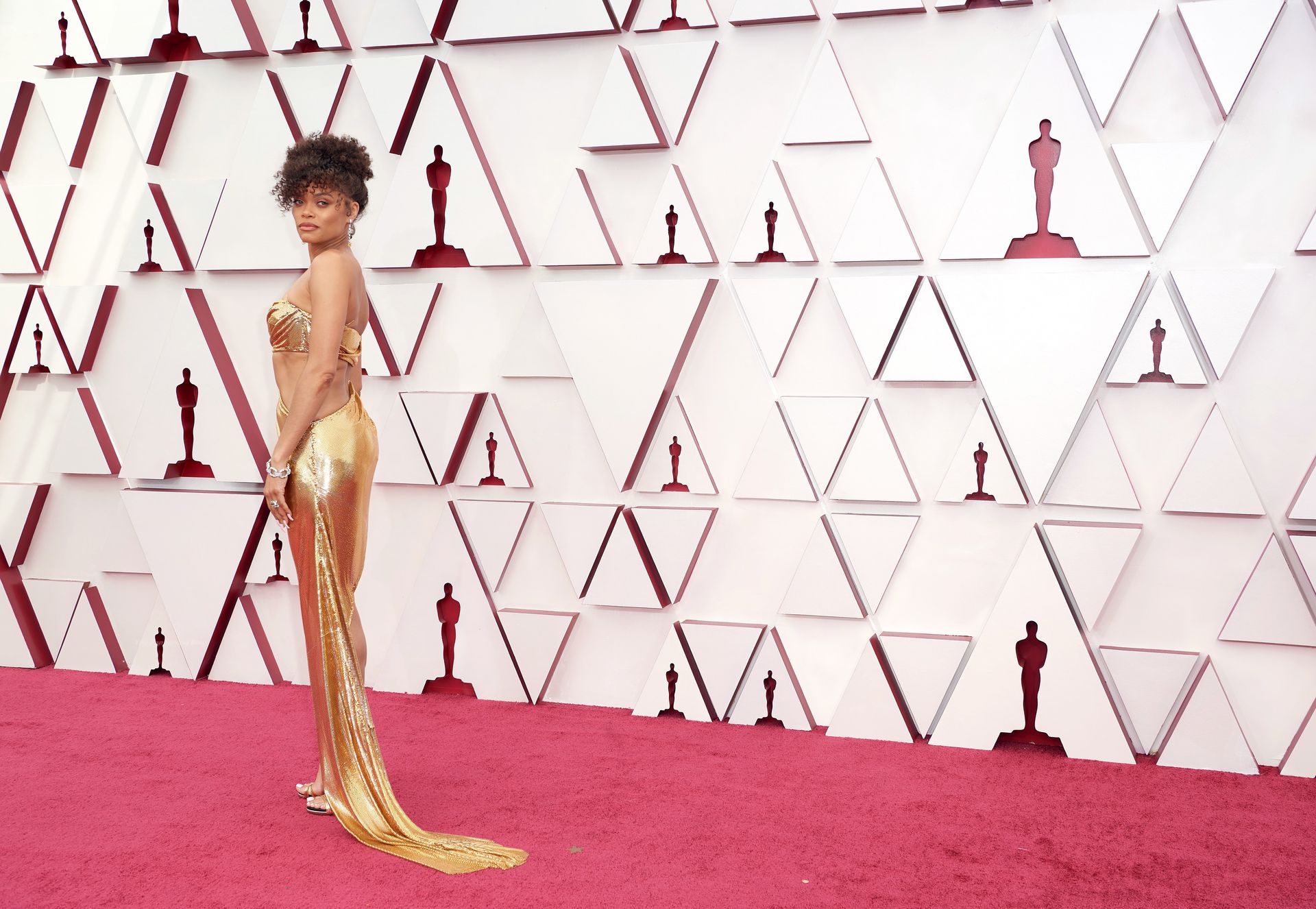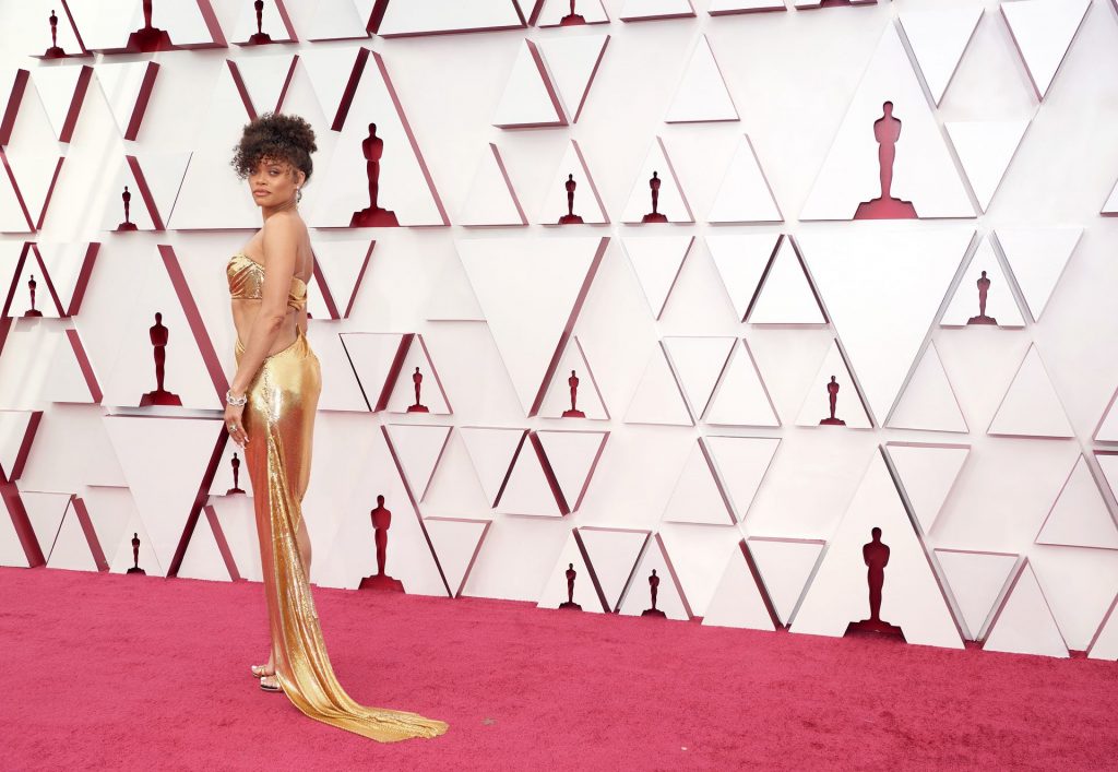 L’attrice e cantante americana Andra Day arriva sul red carpet della 93ª Cerimonia degli Oscar alla Union Station di Los Angeles, 25/04/2021.