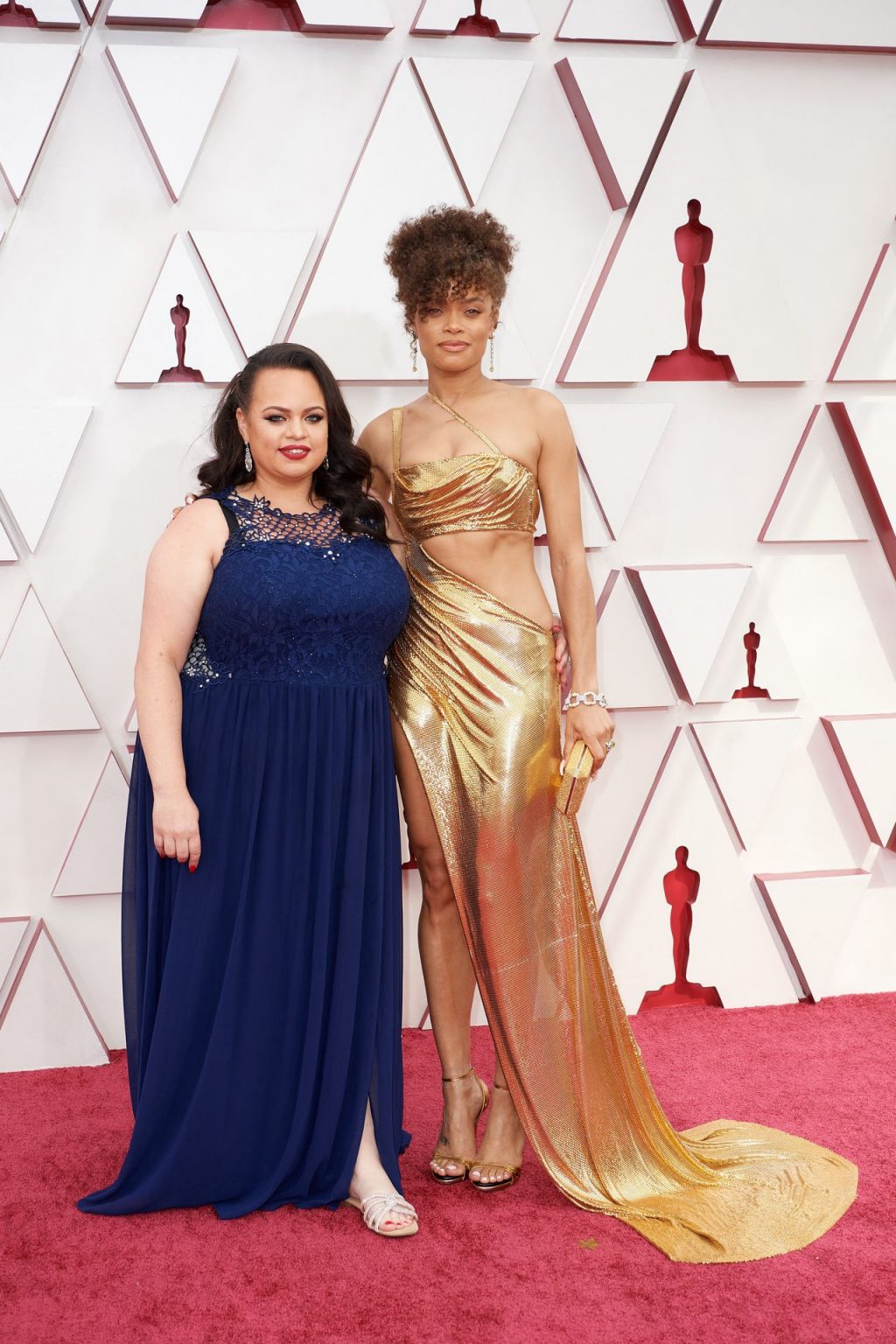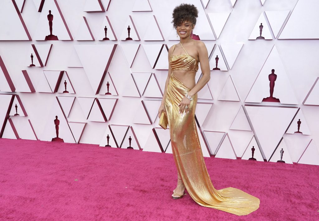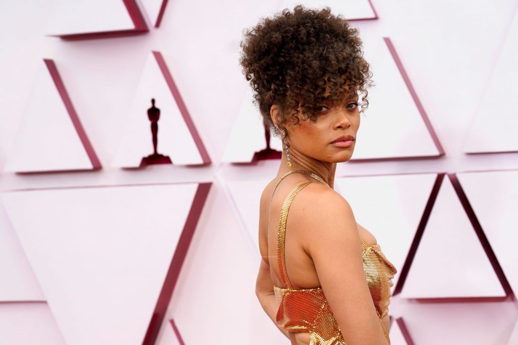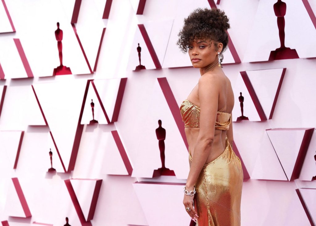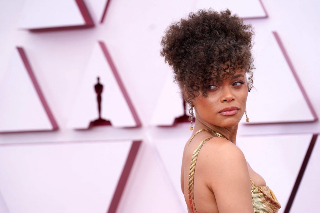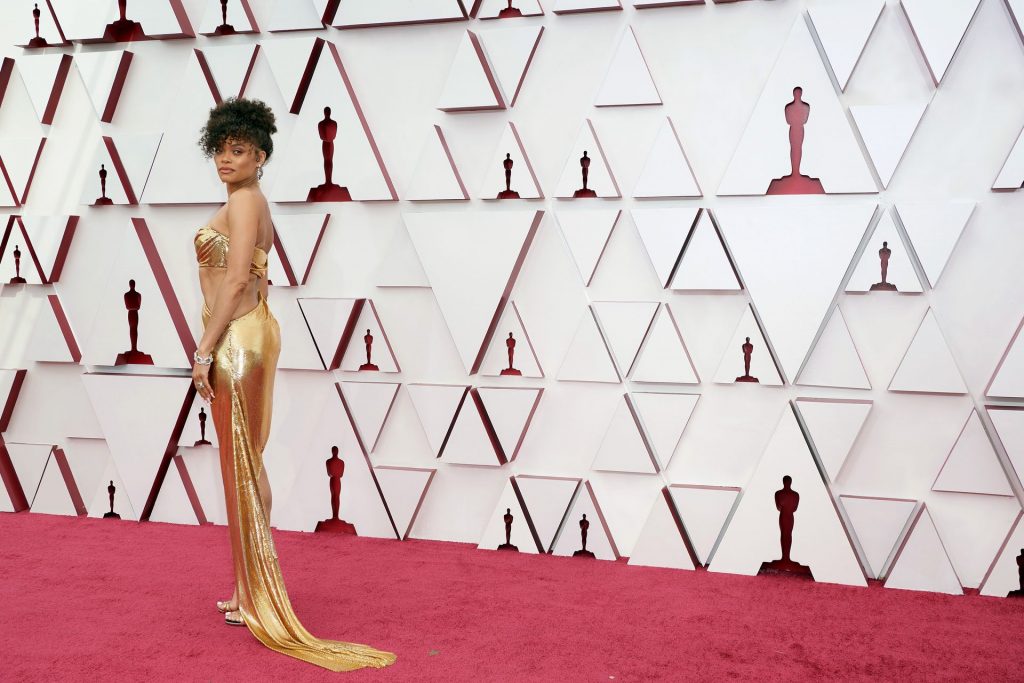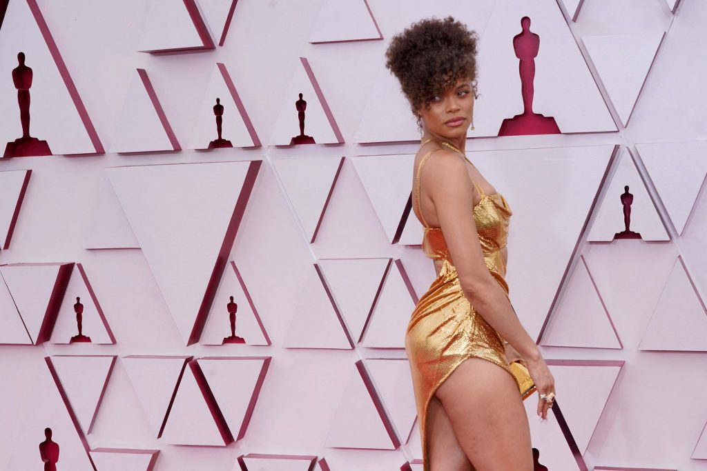 L’attrice e cantante americana Andra Day arriva sul red carpet della 93ª Cerimonia degli Oscar alla Union Station di Los Angeles, 25/04/2021.