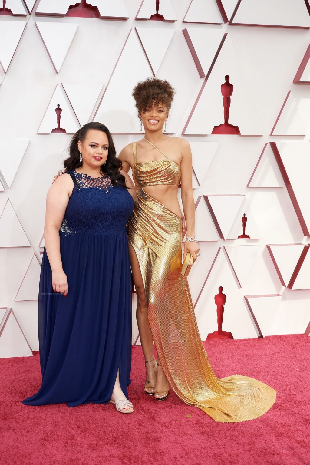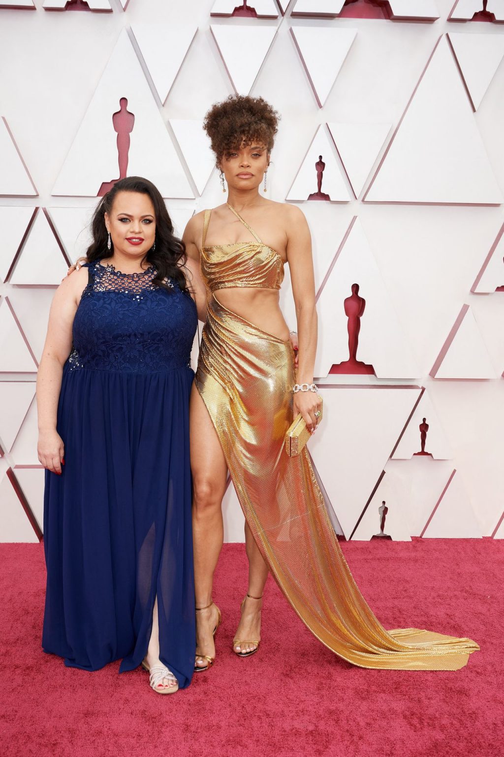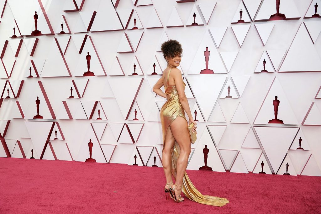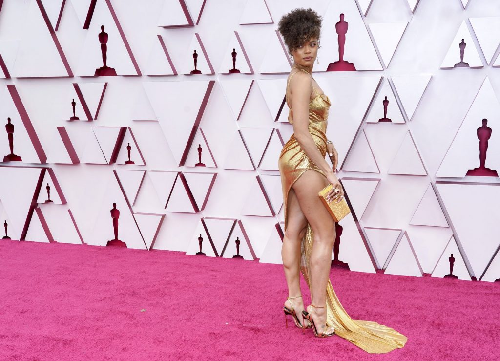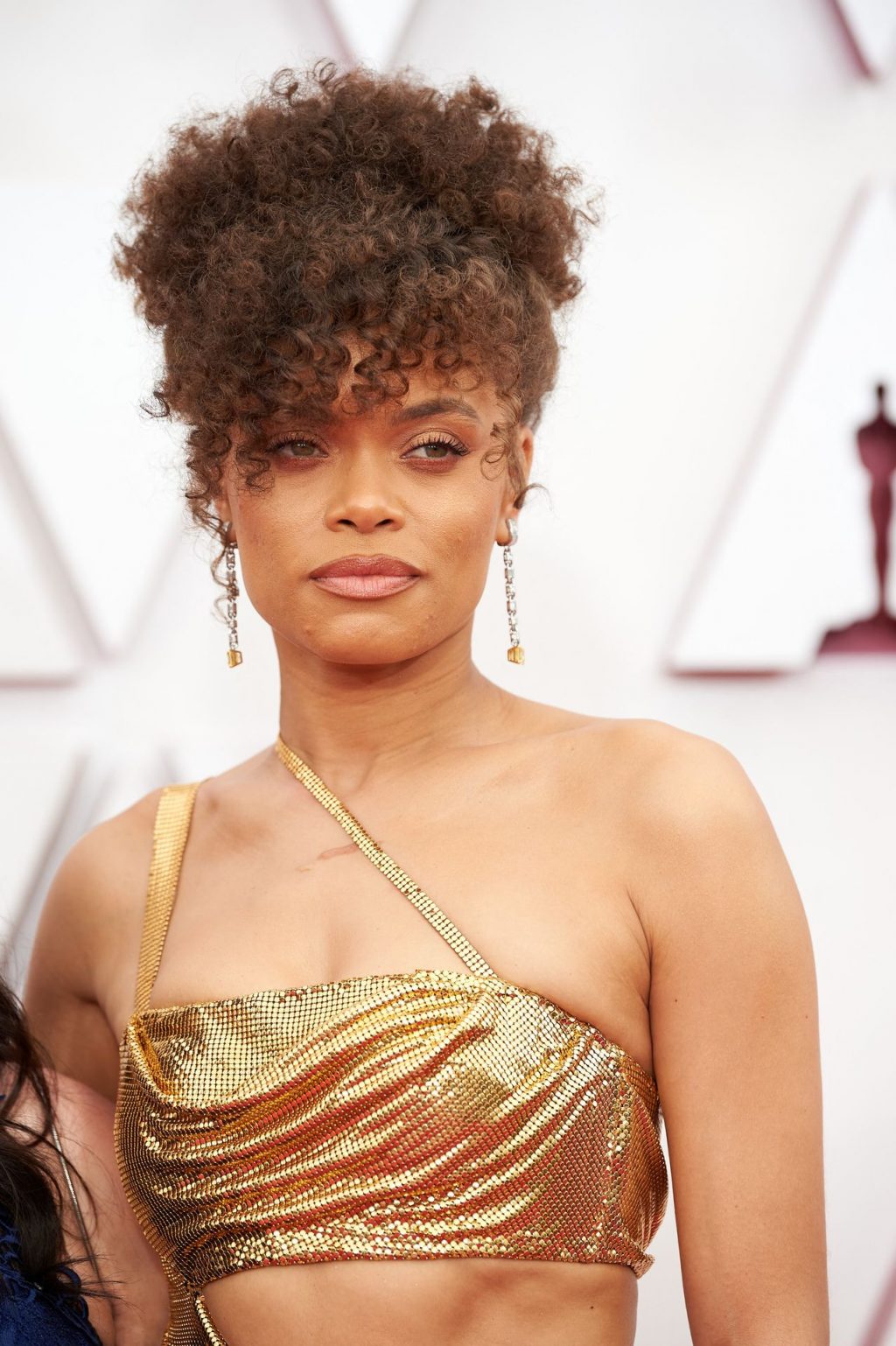 L’attrice e cantante americana Andra Day arriva sul red carpet della 93ª Cerimonia degli Oscar alla Union Station di Los Angeles, 25/04/2021.