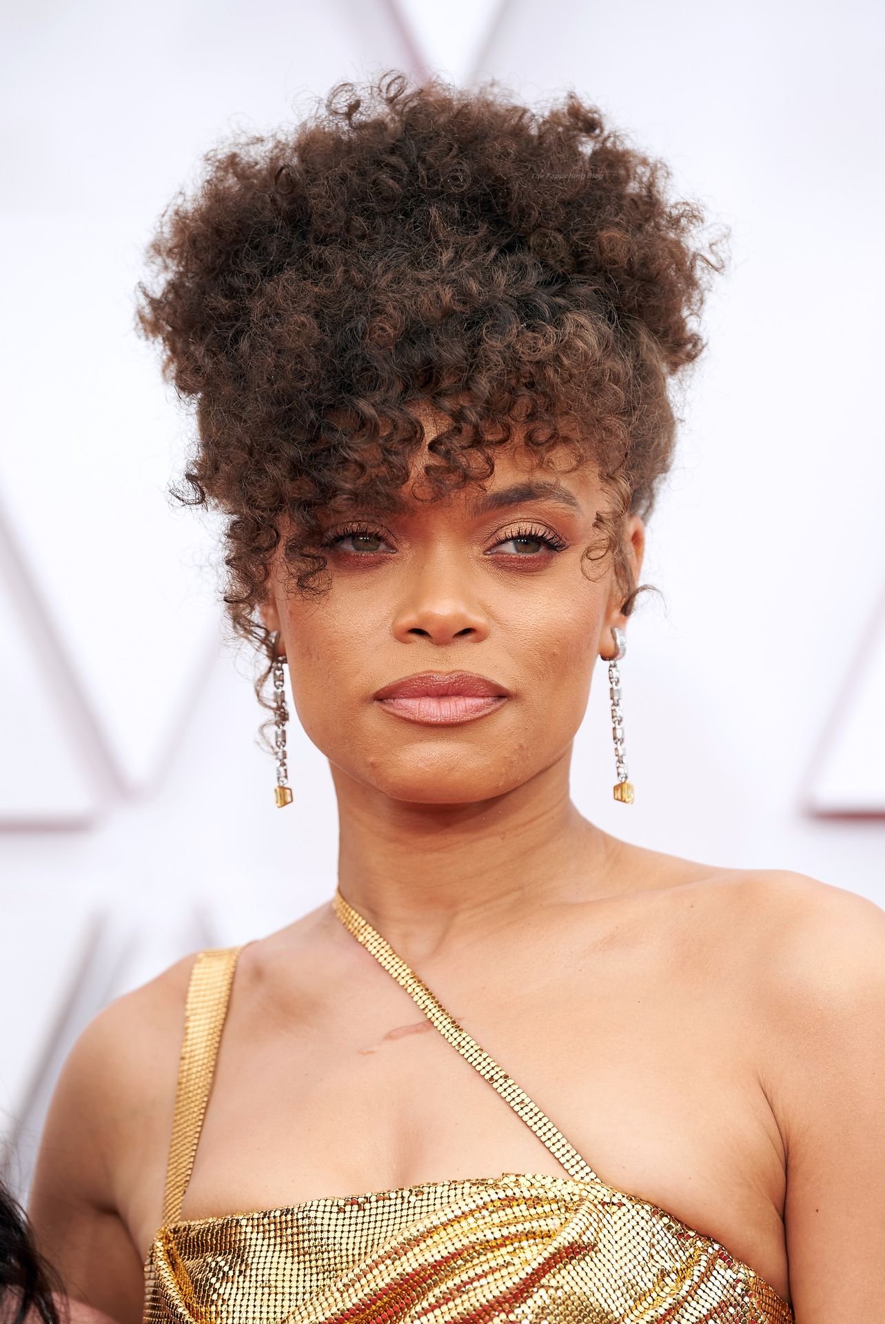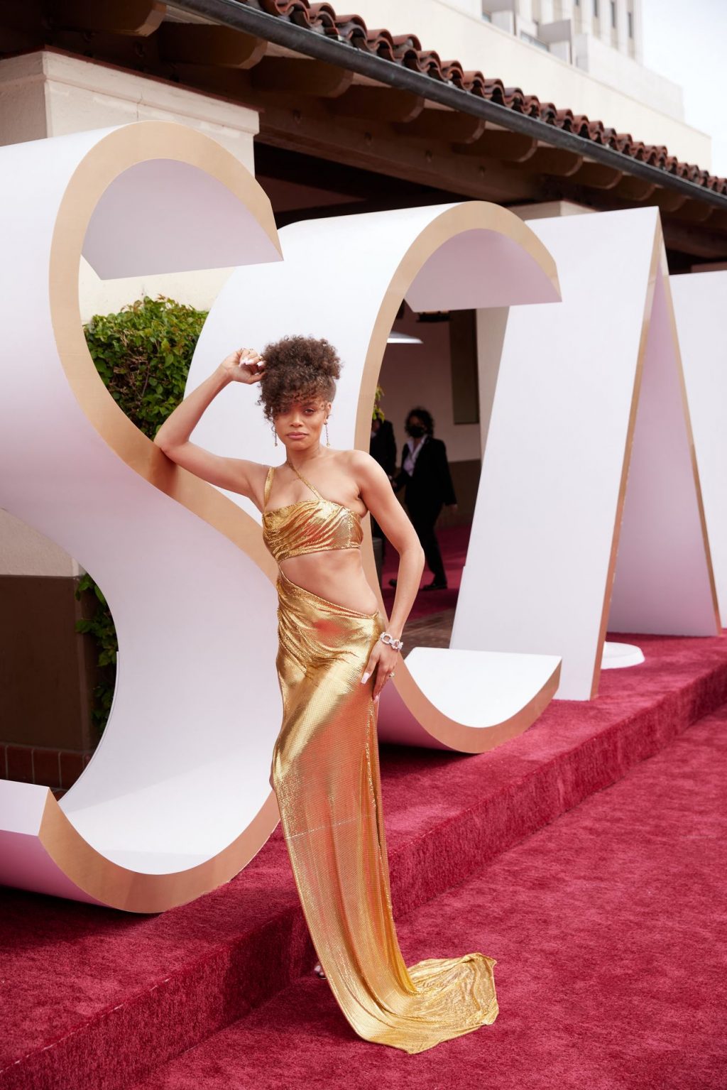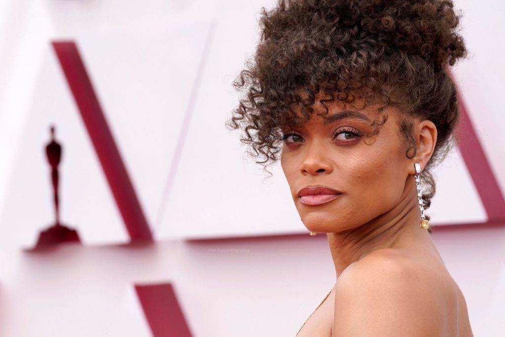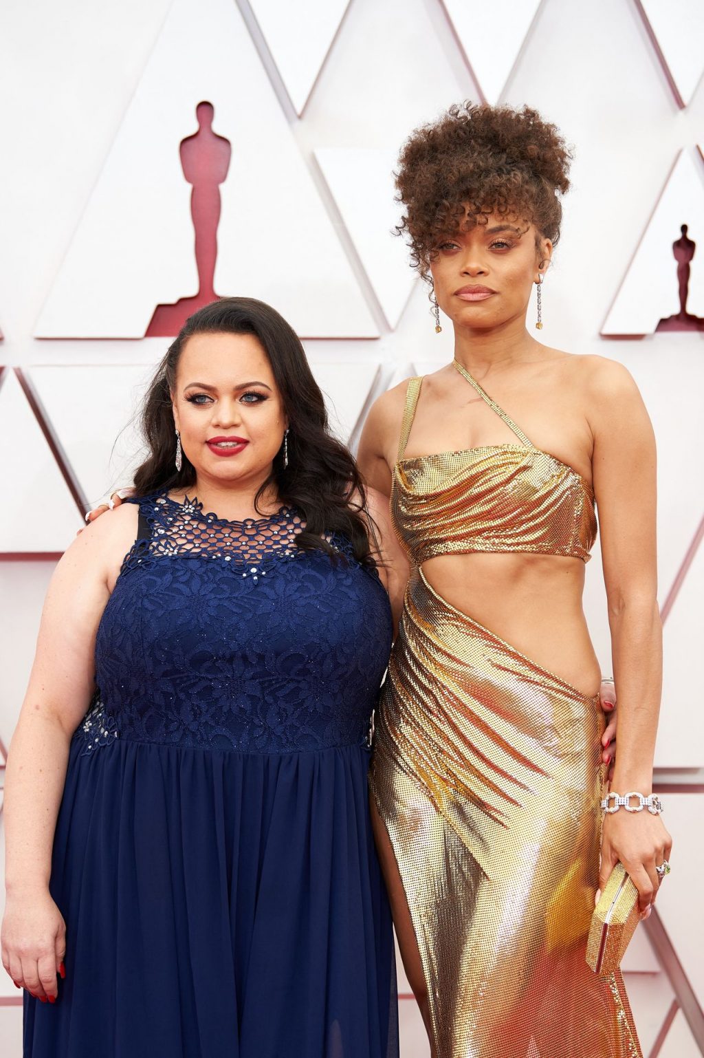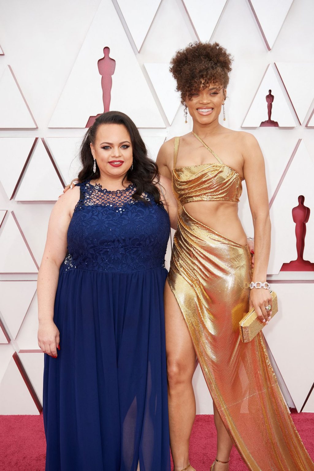 L’attrice e cantante americana Andra Day arriva sul red carpet della 93ª Cerimonia degli Oscar alla Union Station di Los Angeles, 25/04/2021.