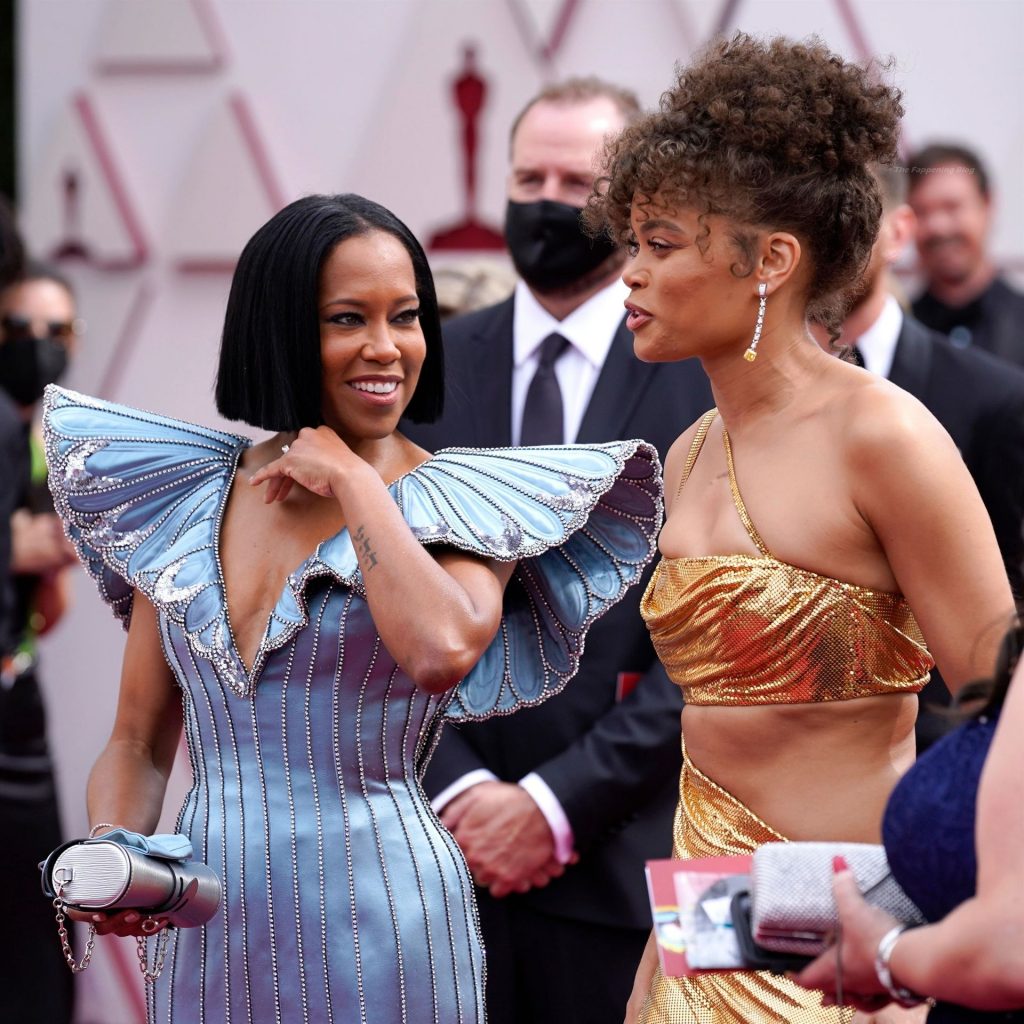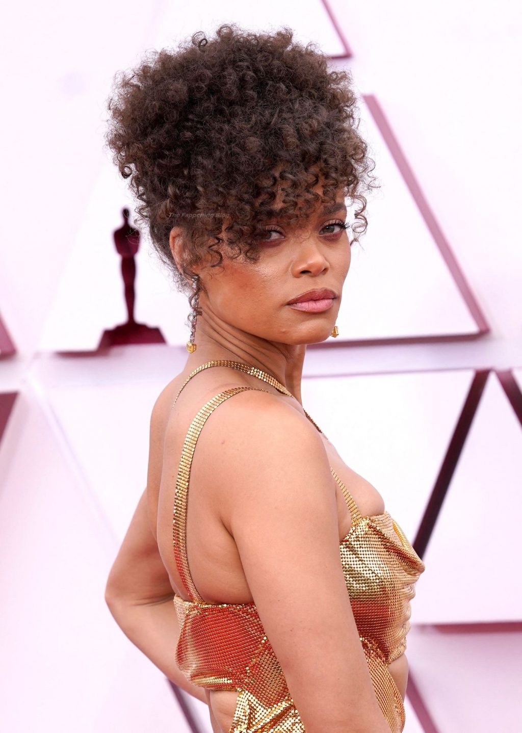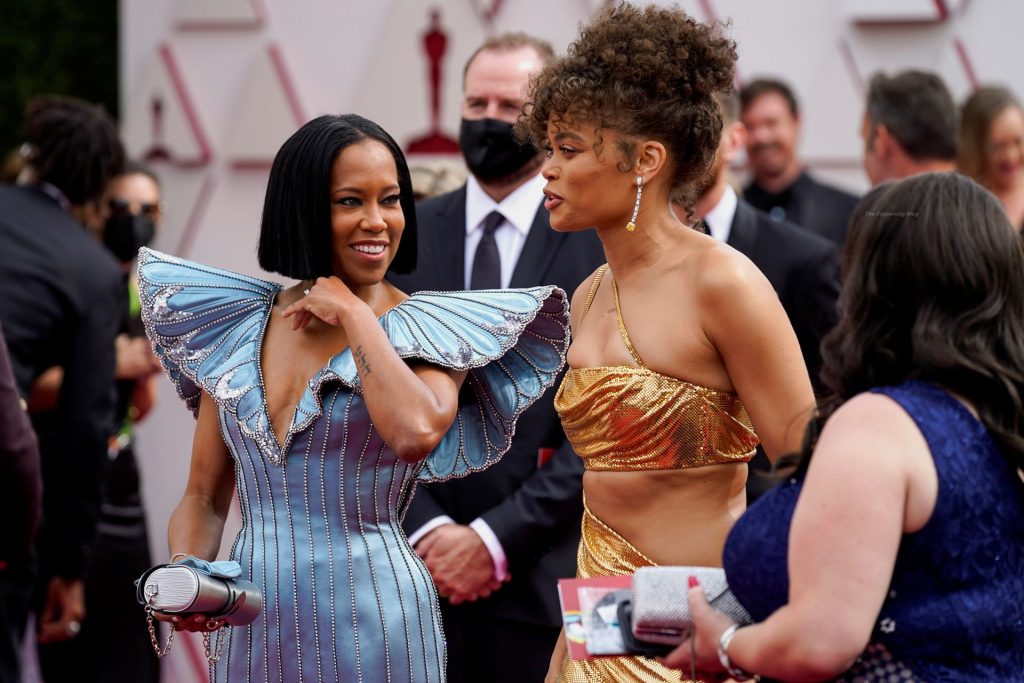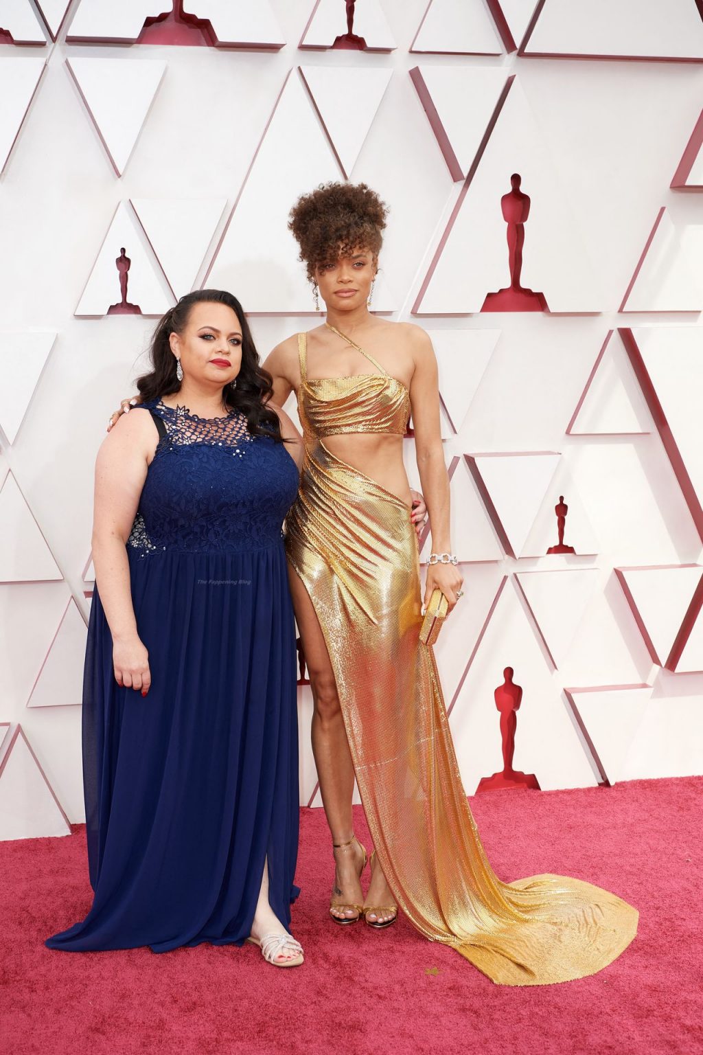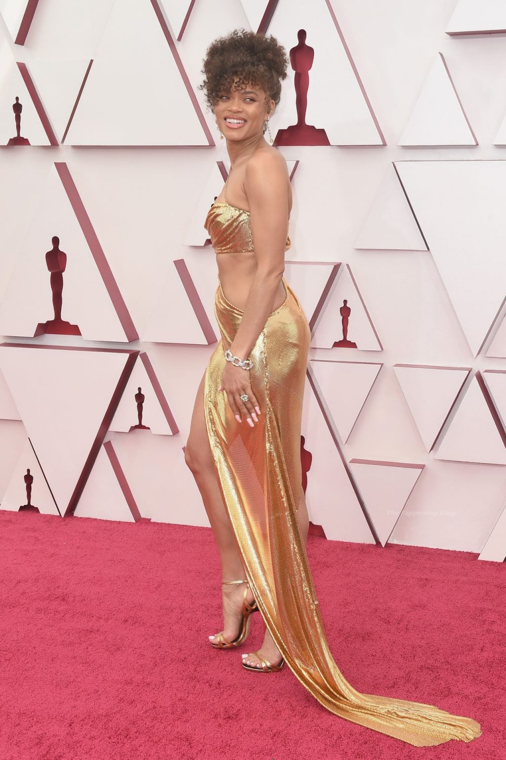 L’attrice e cantante americana Andra Day arriva sul red carpet della 93ª Cerimonia degli Oscar alla Union Station di Los Angeles, 25/04/2021.