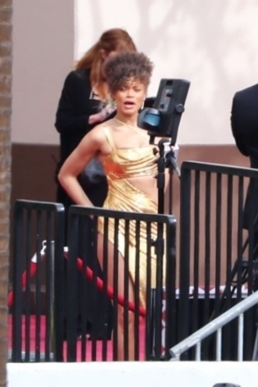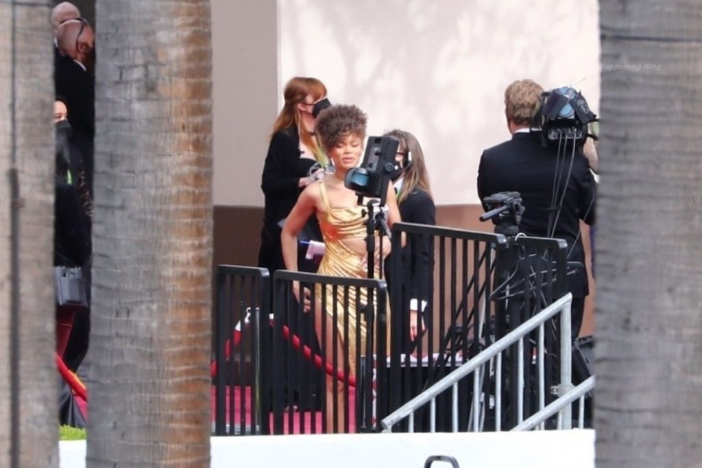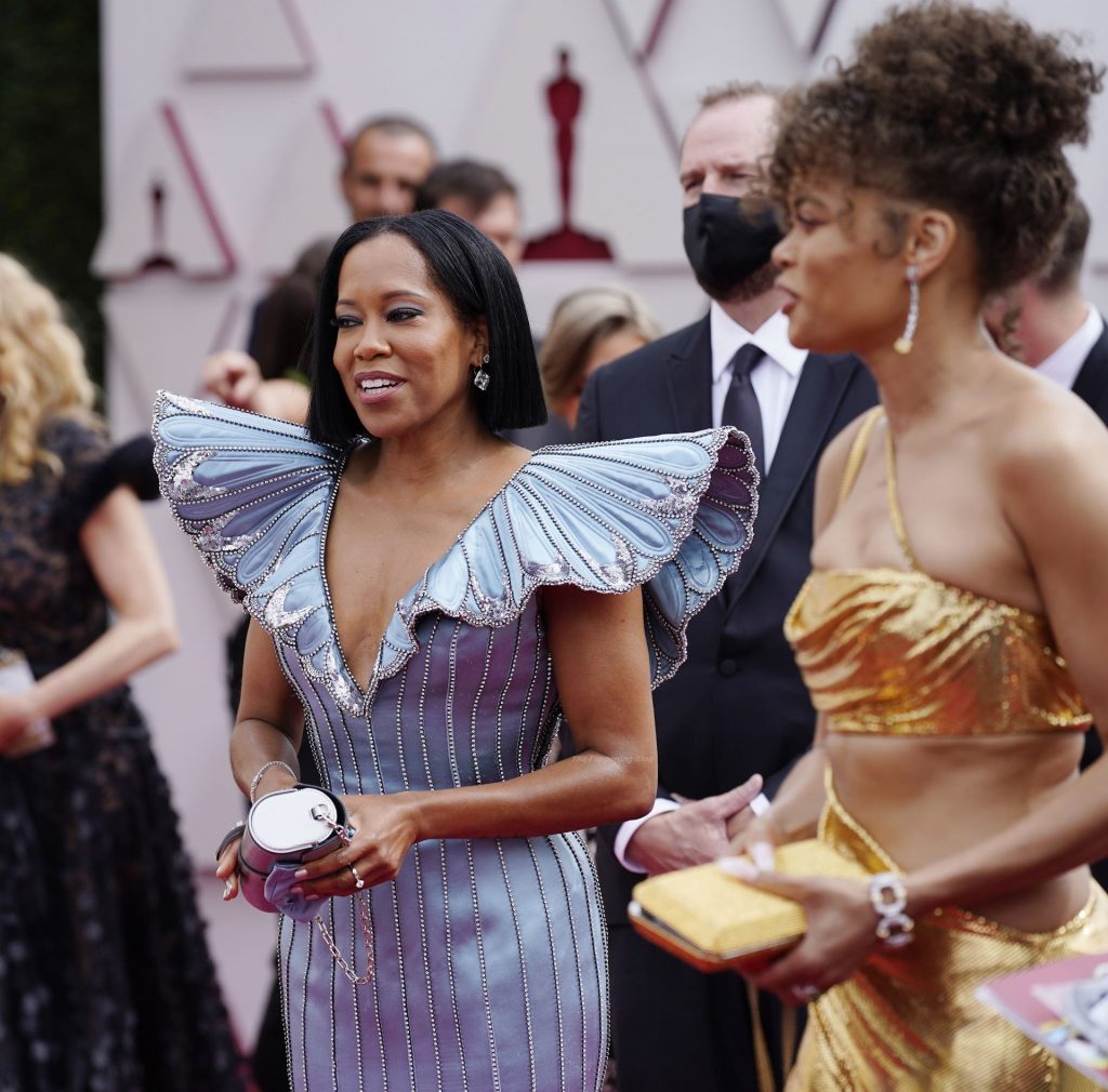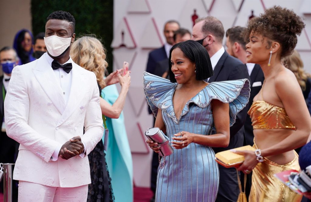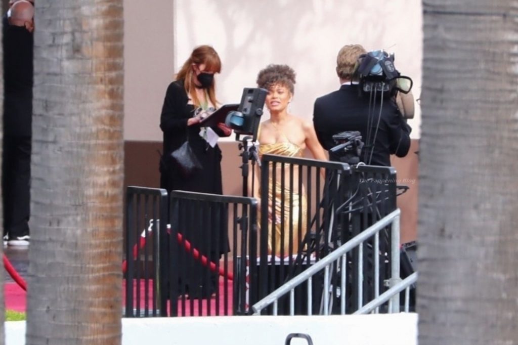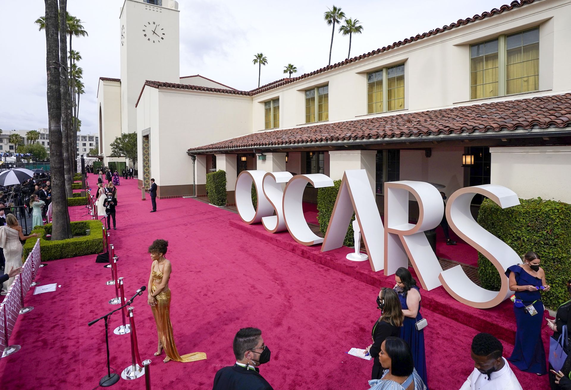 L’attrice e cantante americana Andra Day arriva sul red carpet della 93ª Cerimonia degli Oscar alla Union Station di Los Angeles, 25/04/2021.