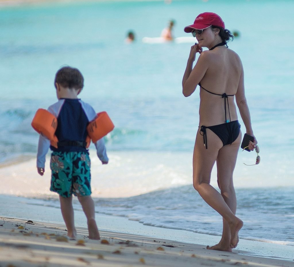 L’attrice e cantante irlandese Andrea Corr, 43 anni, indossa un bikini nero e si gode una giornata rilassante in spiaggia con la sua famiglia a Barbados, 24/03/2018. Andrea ha camminato lungo la riva e ha fatto un po’ di nuoto.