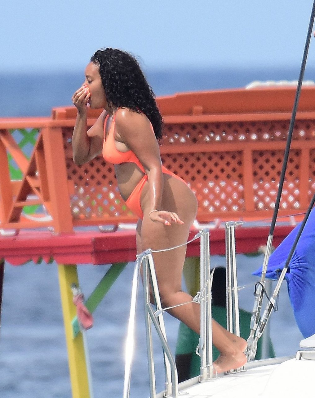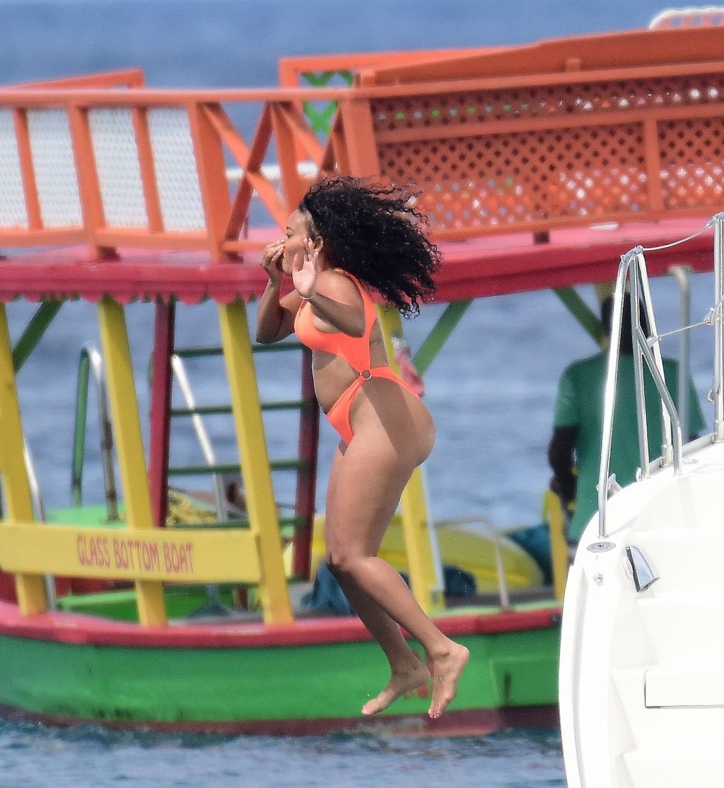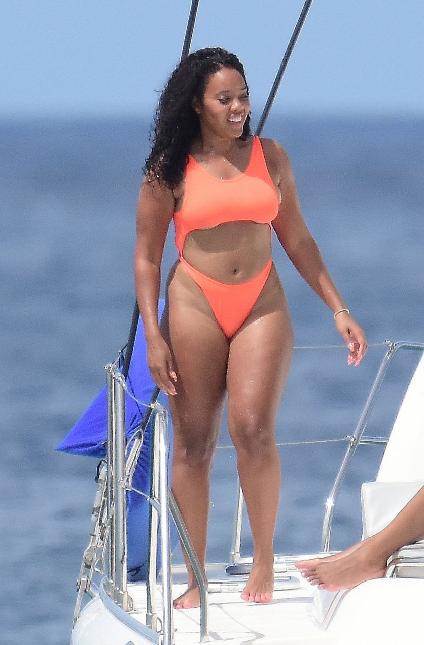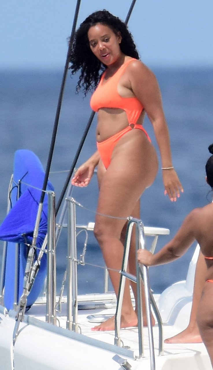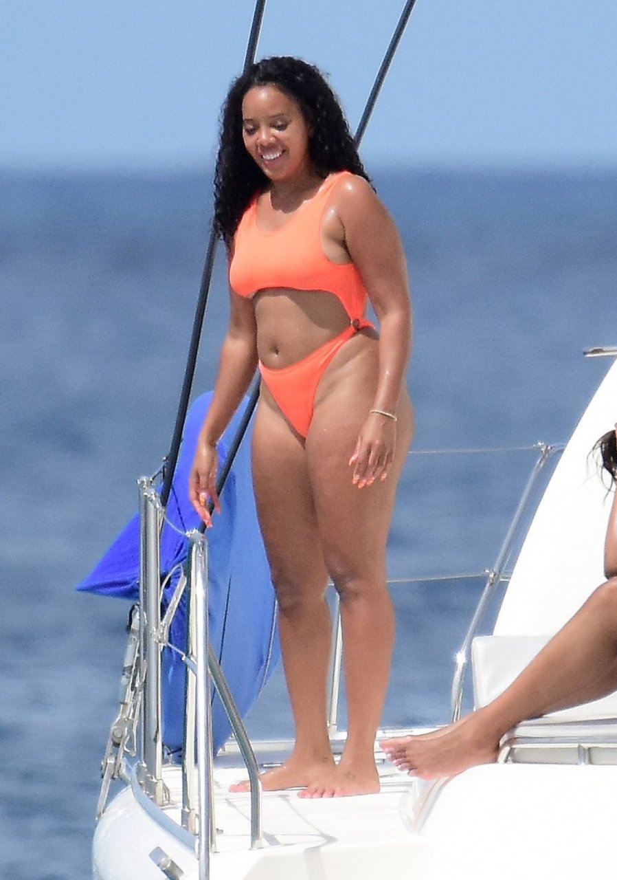 Angela Simmons sfoggia il corpo in un bikini arancione a bordo di un catamarano con amici a Barbados, 02/07/2019. Angela Simmons è una star americana della TV reality di 31 anni (Run’s House, Daddy’s Girls) e designer di scarpe/abbigliamento.