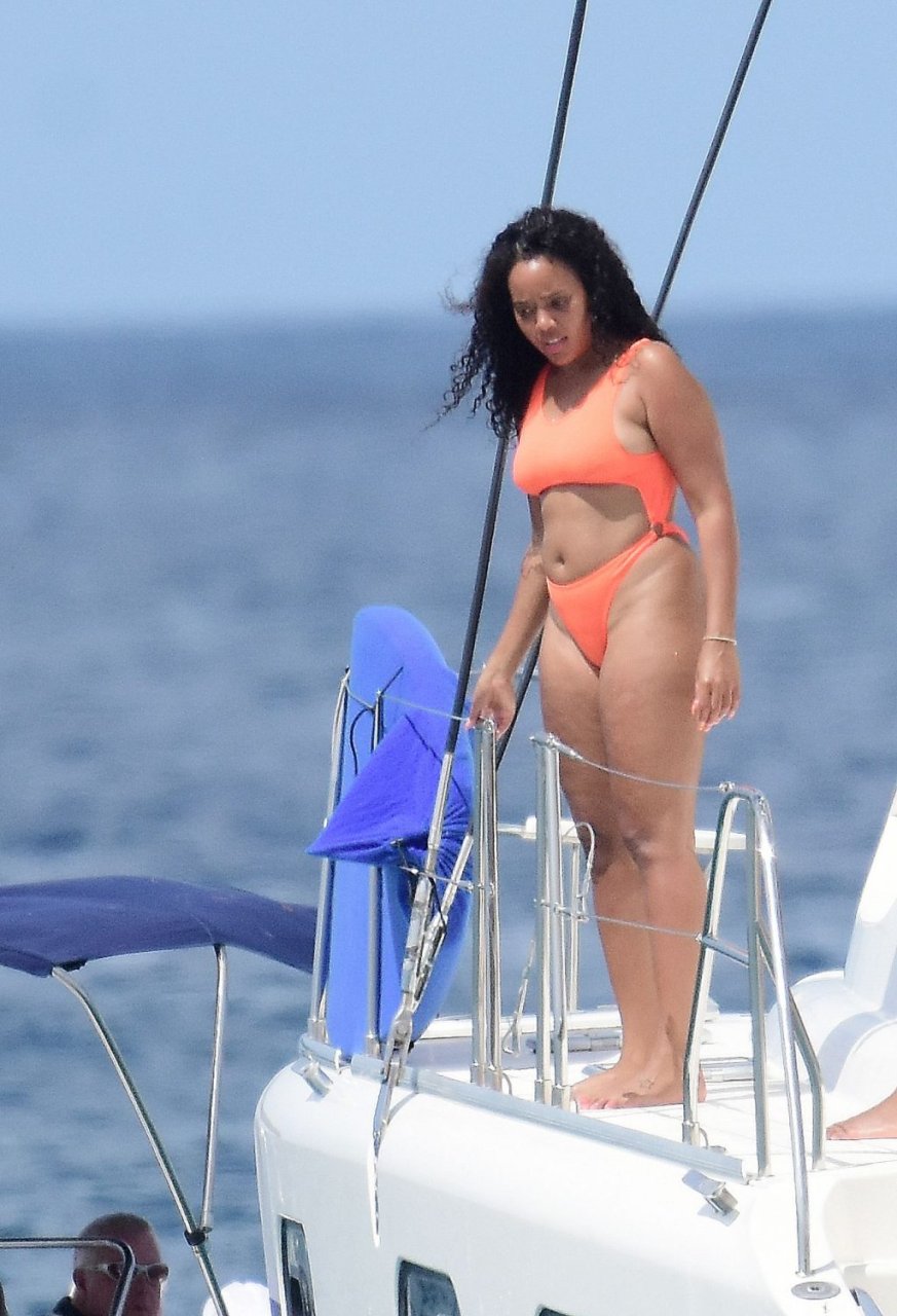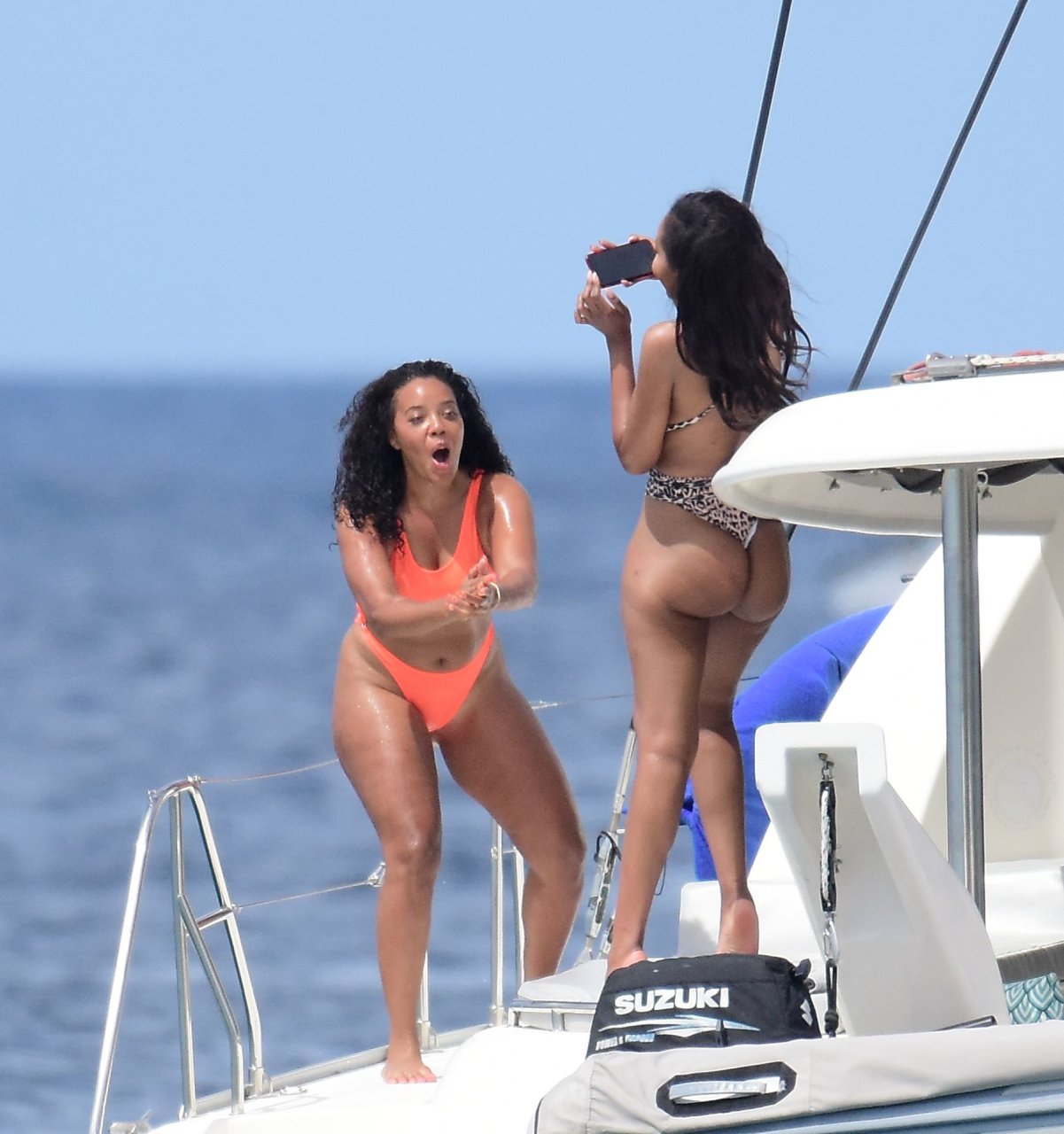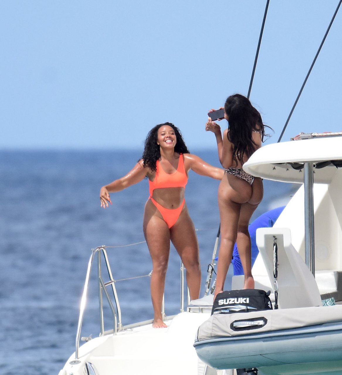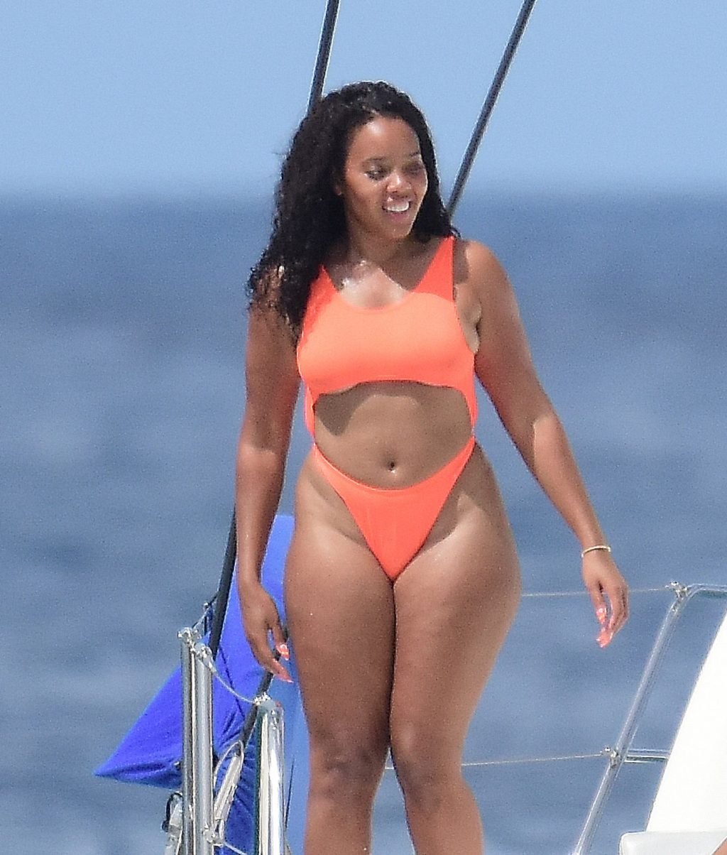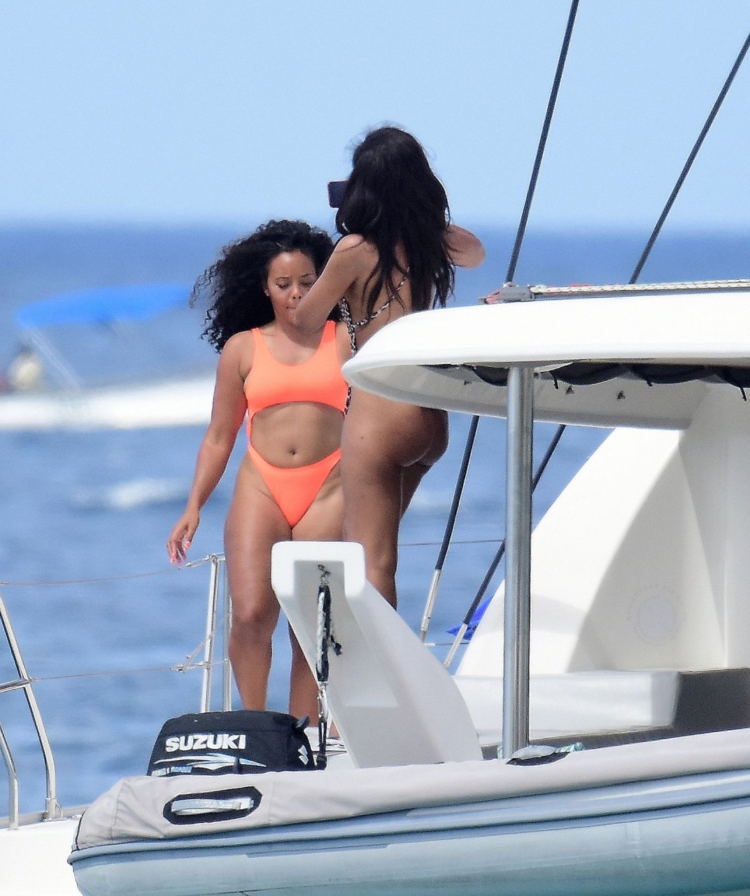 Angela Simmons sfoggia il corpo in un bikini arancione a bordo di un catamarano con amici a Barbados, 02/07/2019. Angela Simmons è una star americana della TV reality di 31 anni (Run’s House, Daddy’s Girls) e designer di scarpe/abbigliamento.