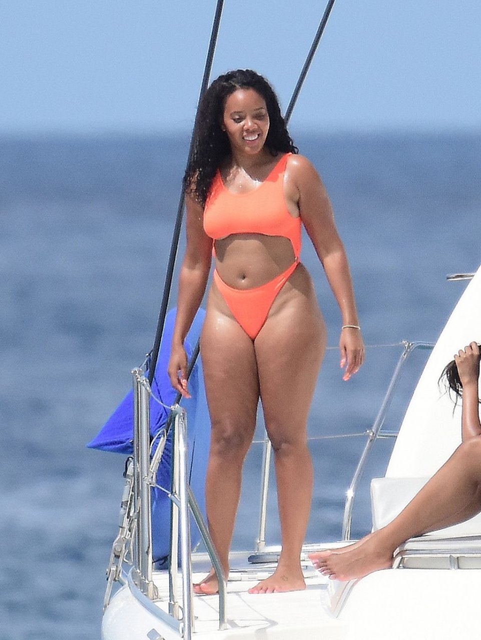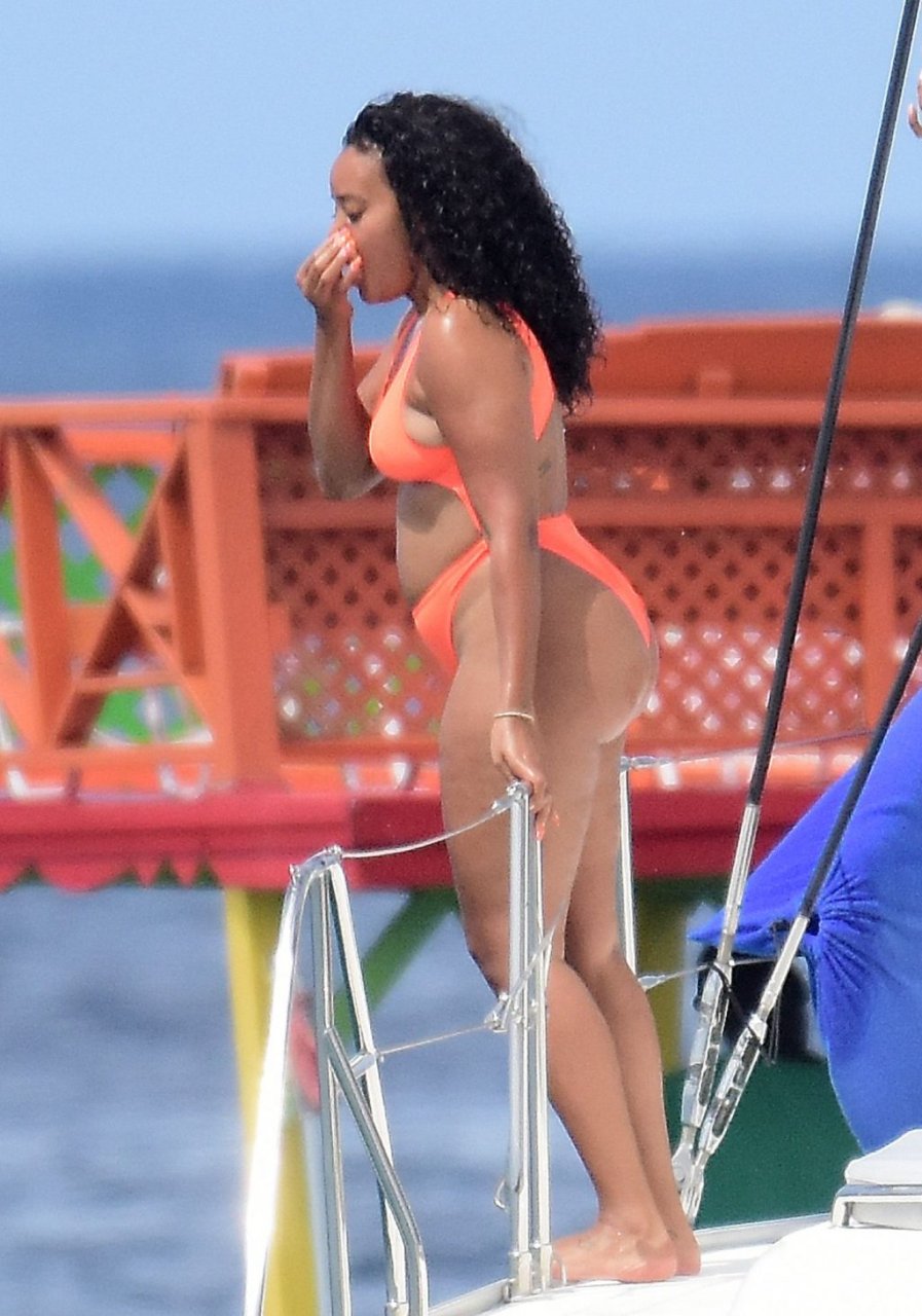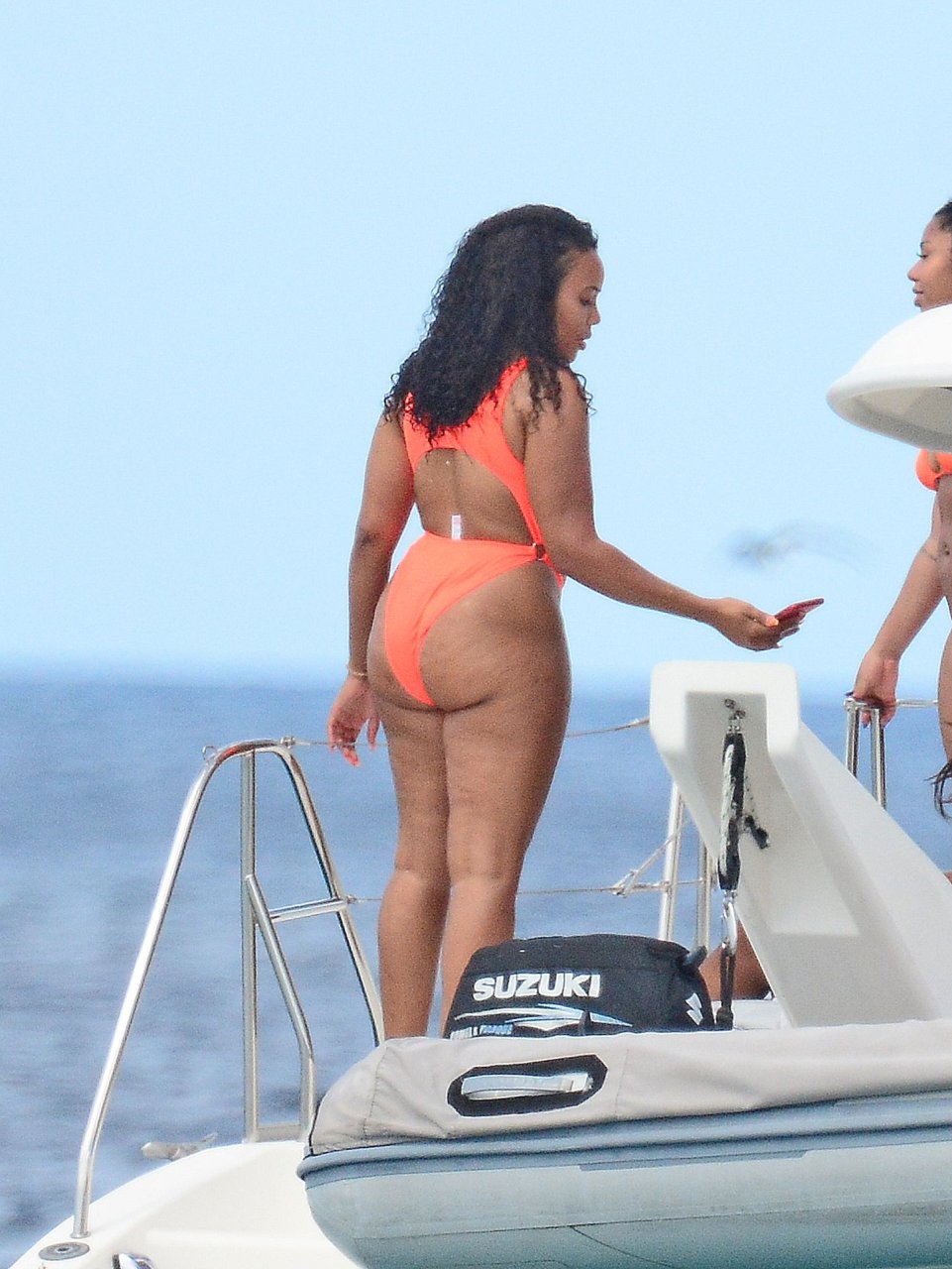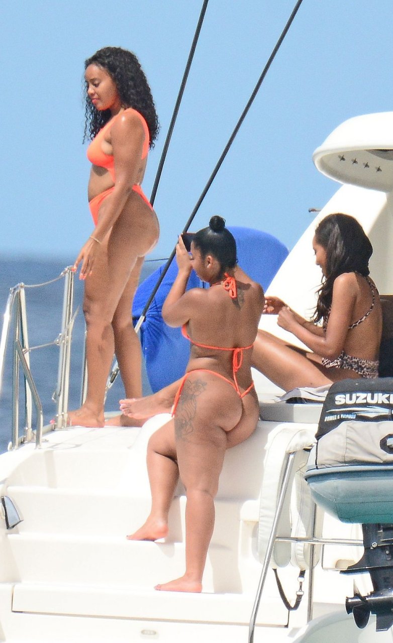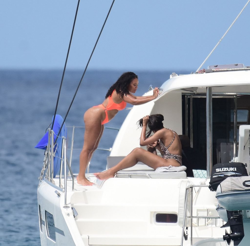 Angela Simmons sfoggia il corpo in un bikini arancione a bordo di un catamarano con amici a Barbados, 02/07/2019. Angela Simmons è una star americana della TV reality di 31 anni (Run’s House, Daddy’s Girls) e designer di scarpe/abbigliamento.