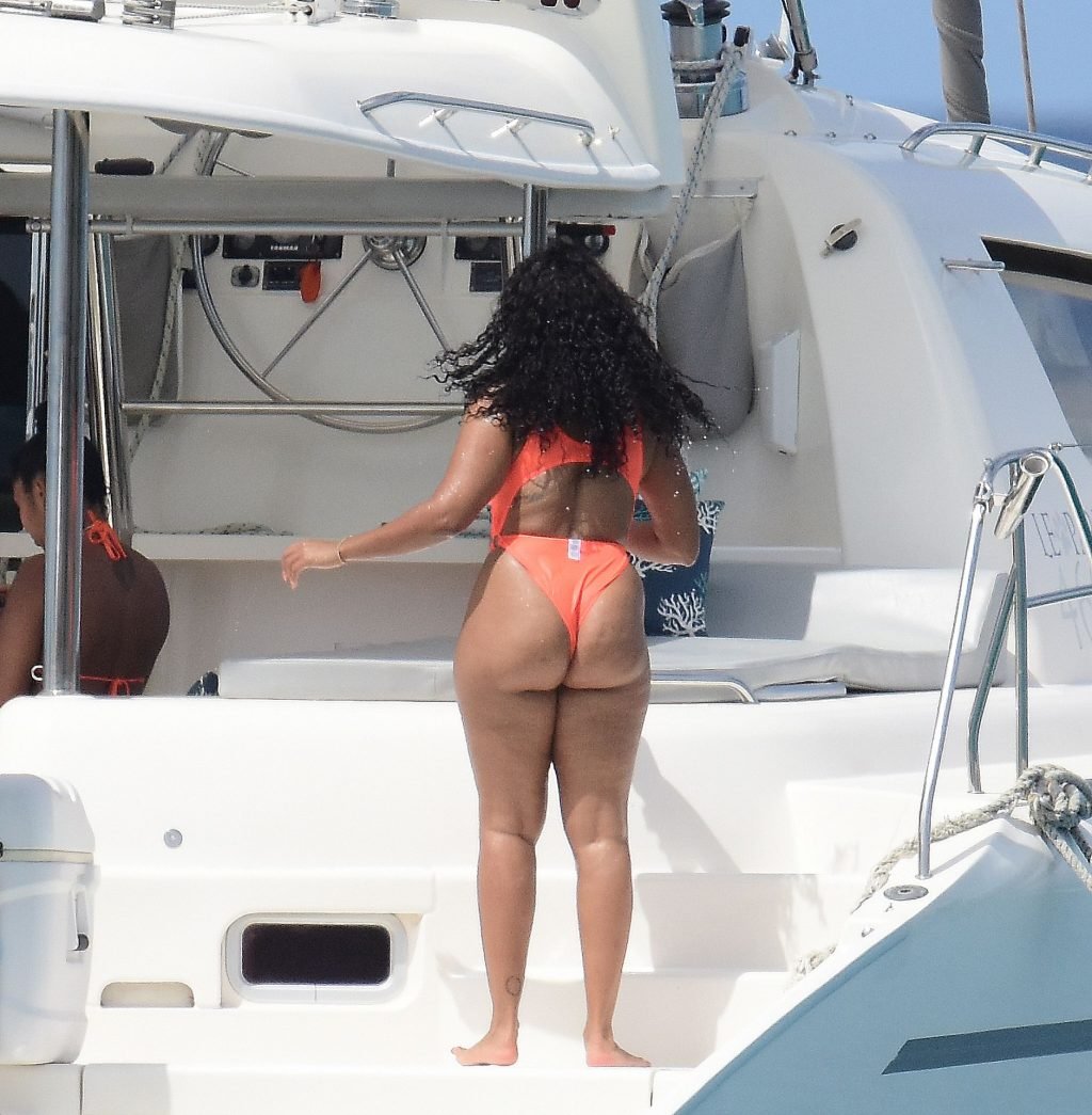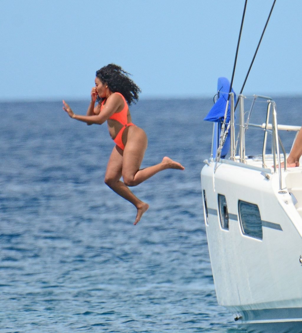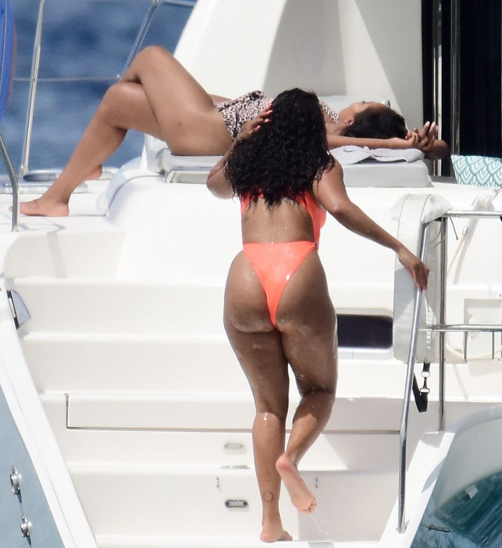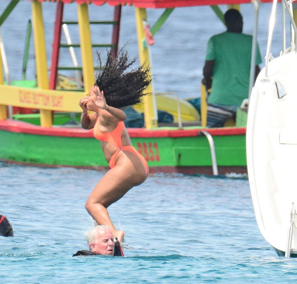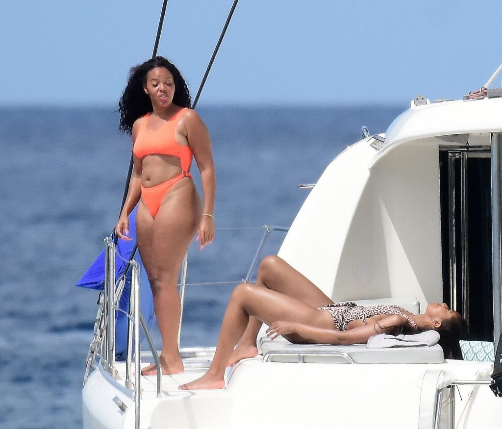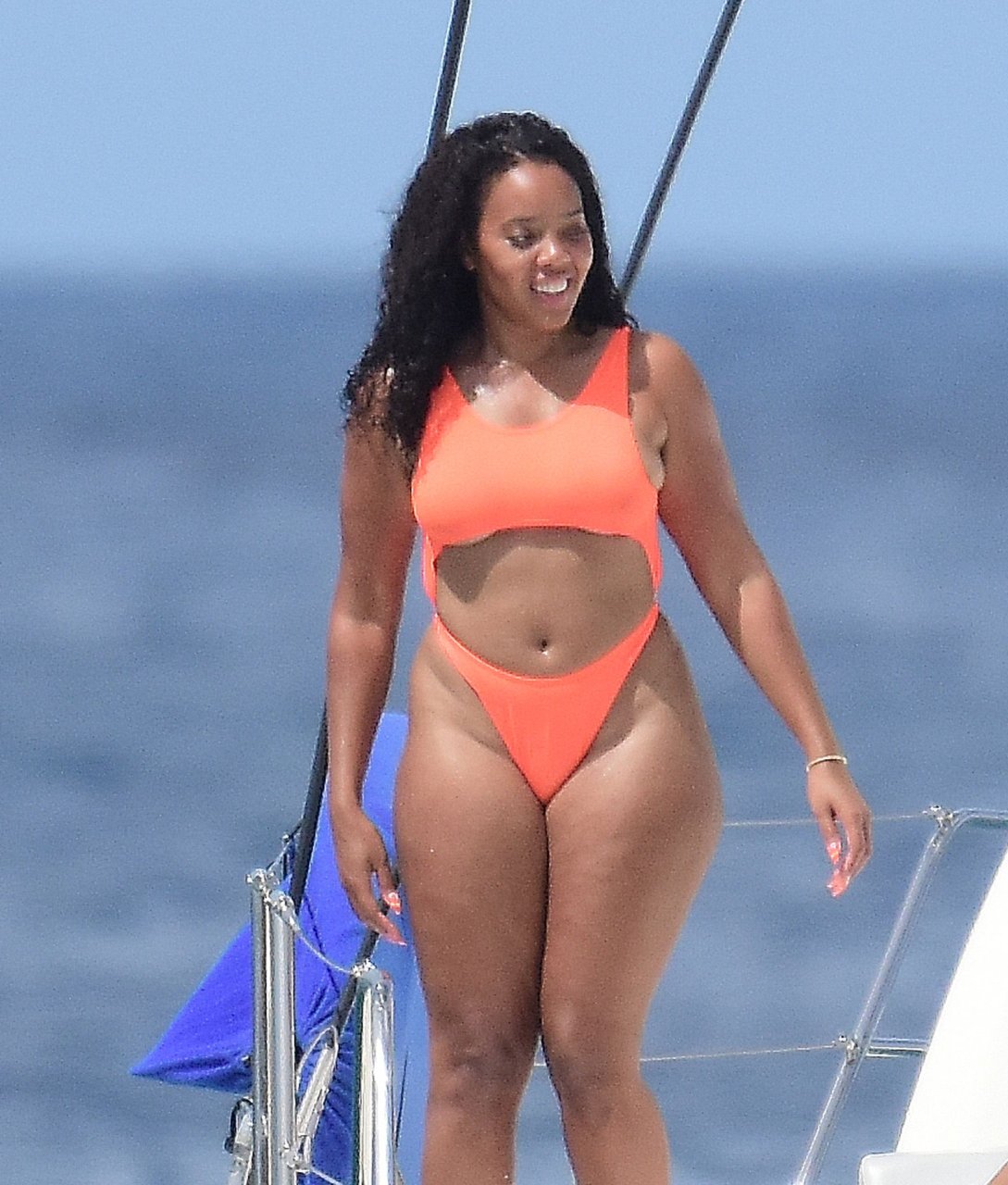 Angela Simmons sfoggia il corpo in un bikini arancione a bordo di un catamarano con amici a Barbados, 02/07/2019. Angela Simmons è una star americana della TV reality di 31 anni (Run’s House, Daddy’s Girls) e designer di scarpe/abbigliamento.