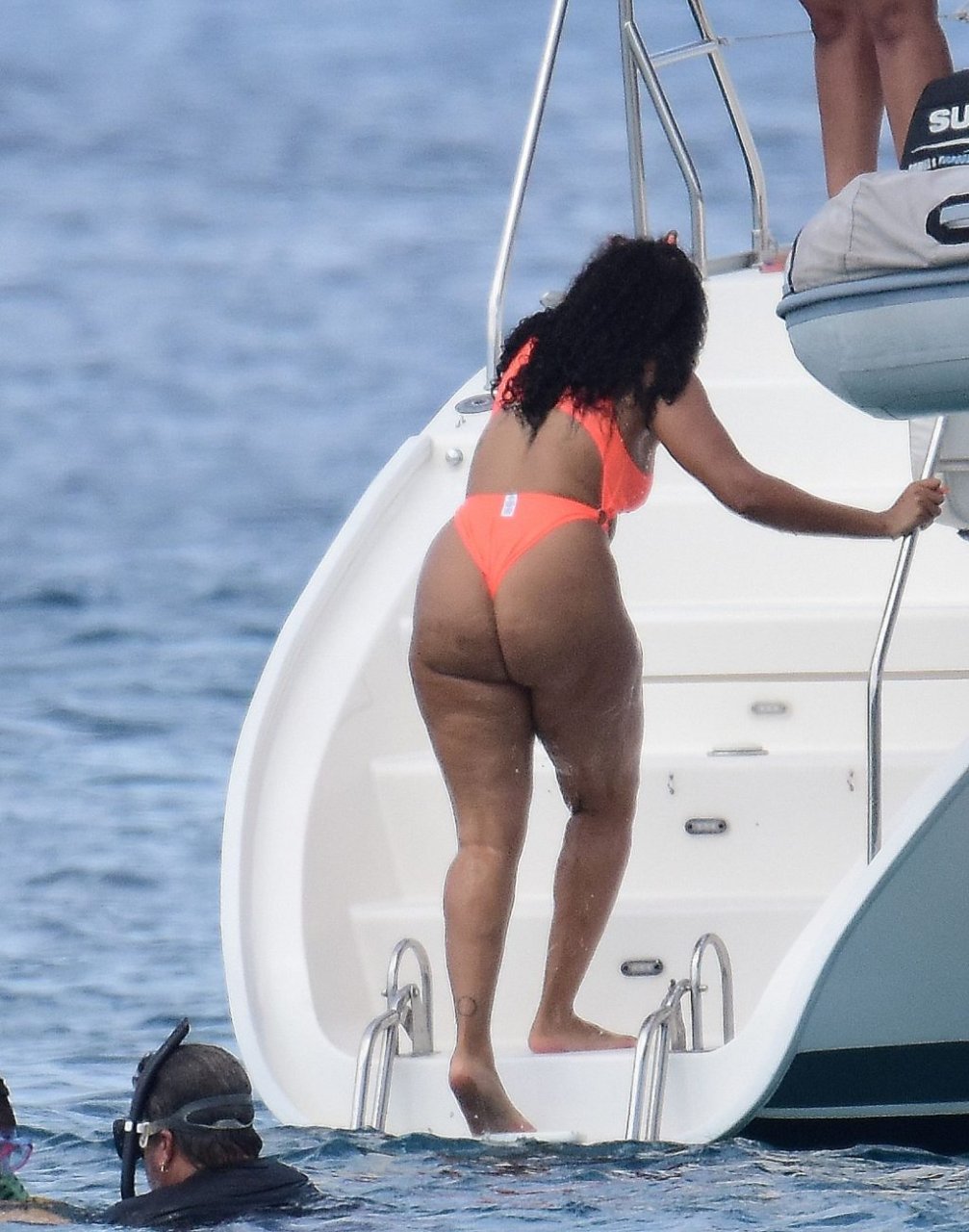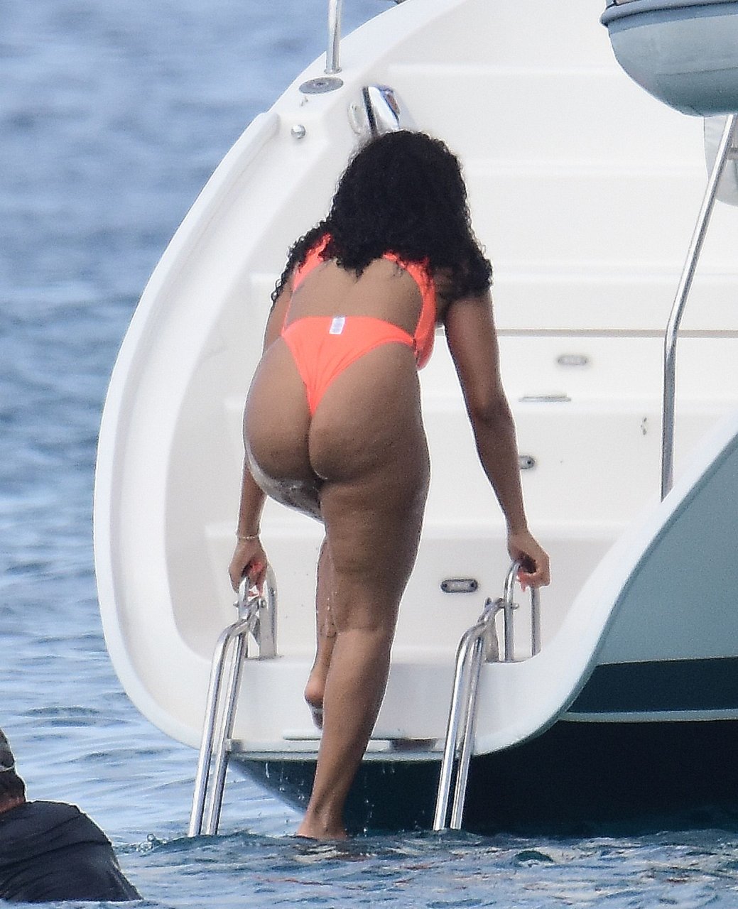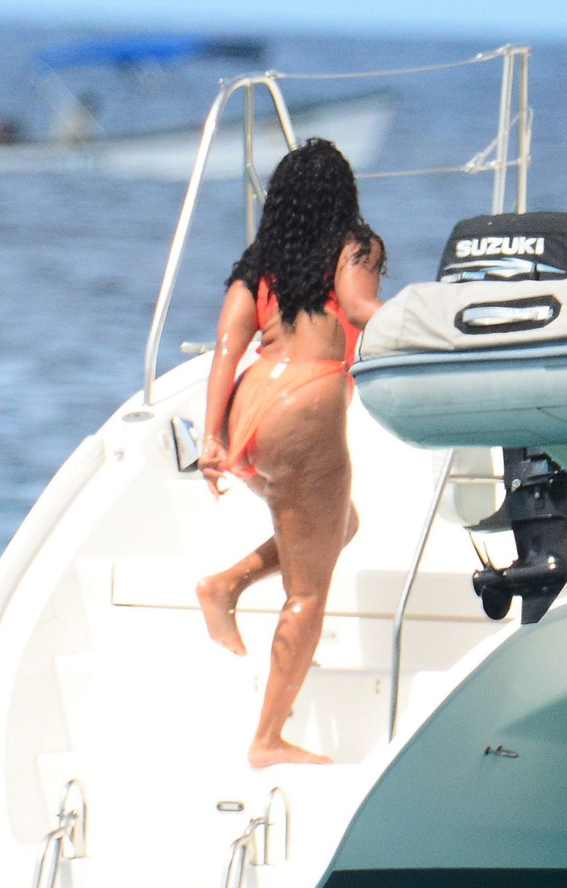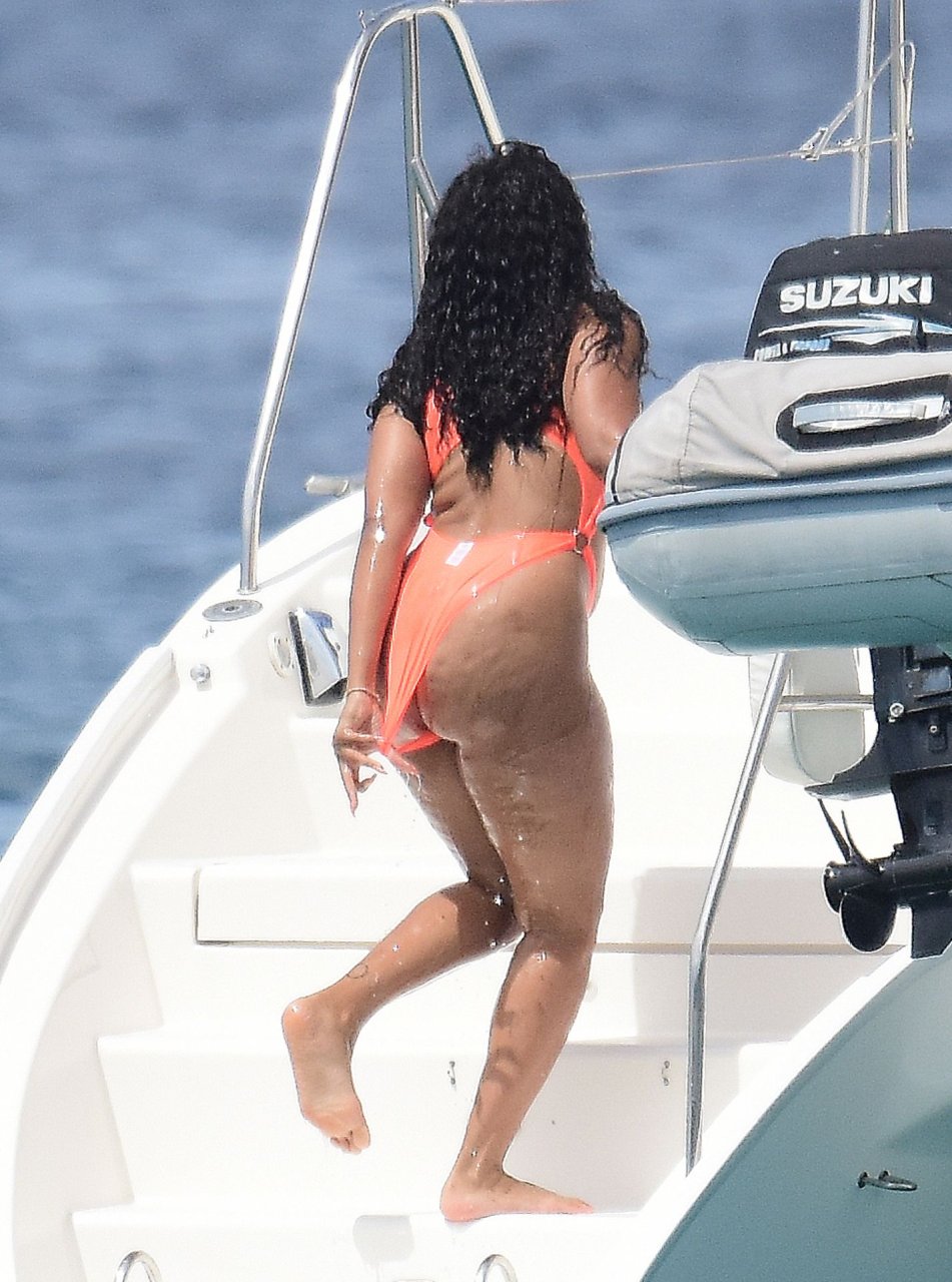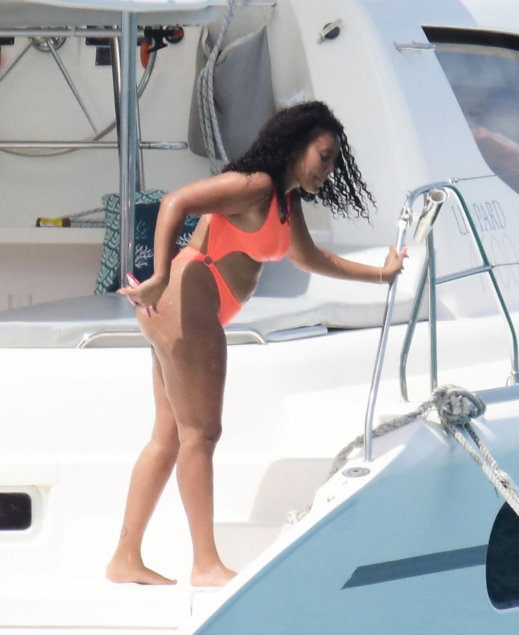 Angela Simmons sfoggia il corpo in un bikini arancione a bordo di un catamarano con amici a Barbados, 02/07/2019. Angela Simmons è una star americana della TV reality di 31 anni (Run’s House, Daddy’s Girls) e designer di scarpe/abbigliamento.